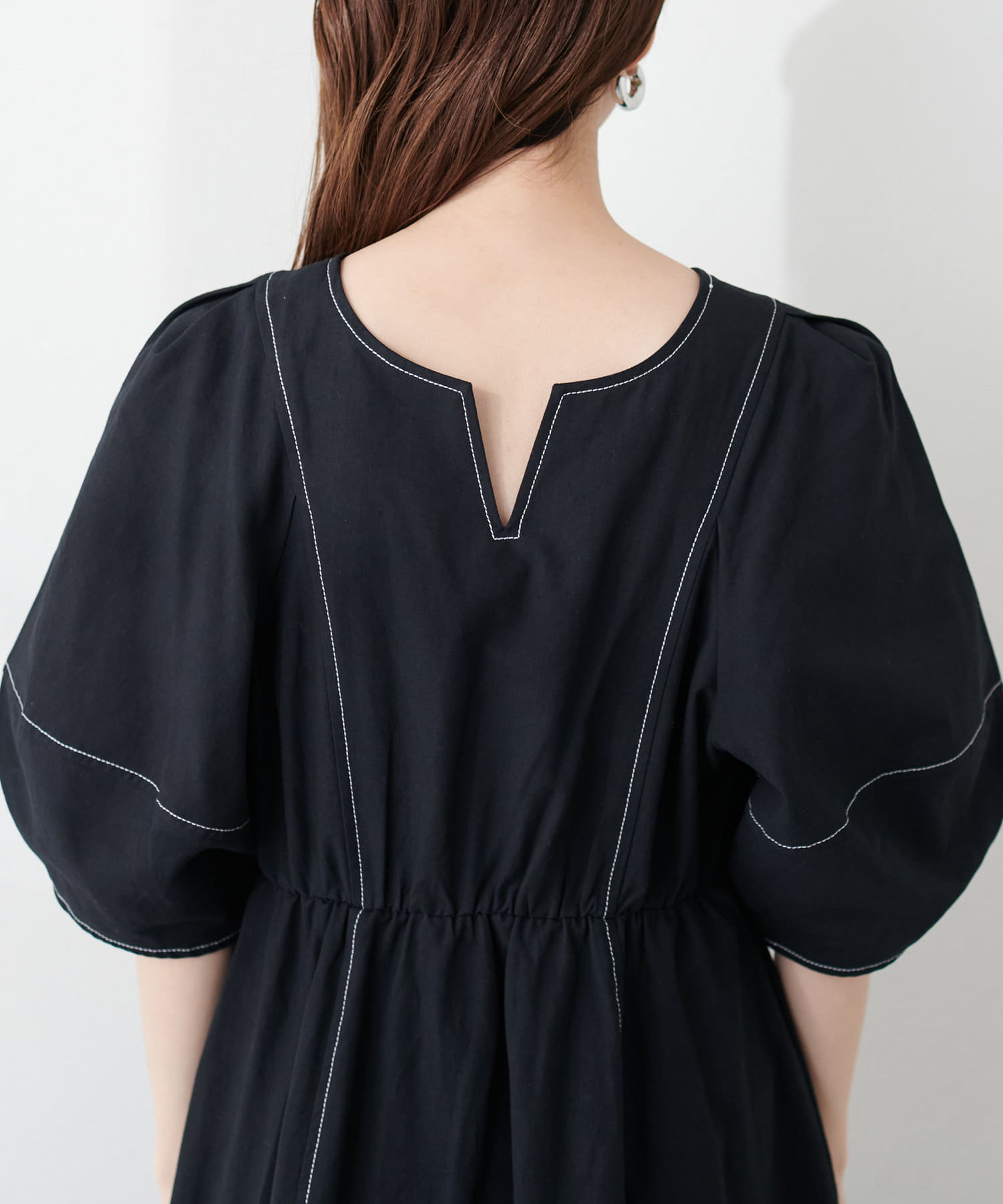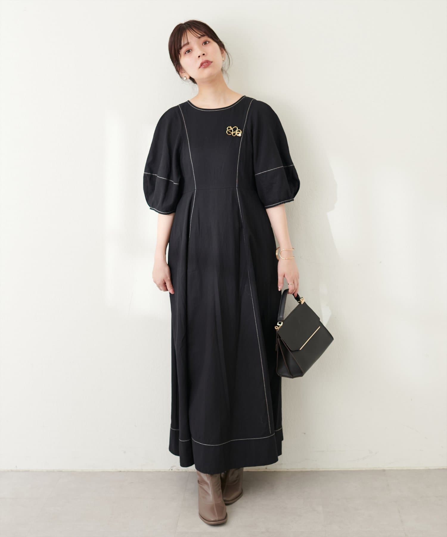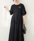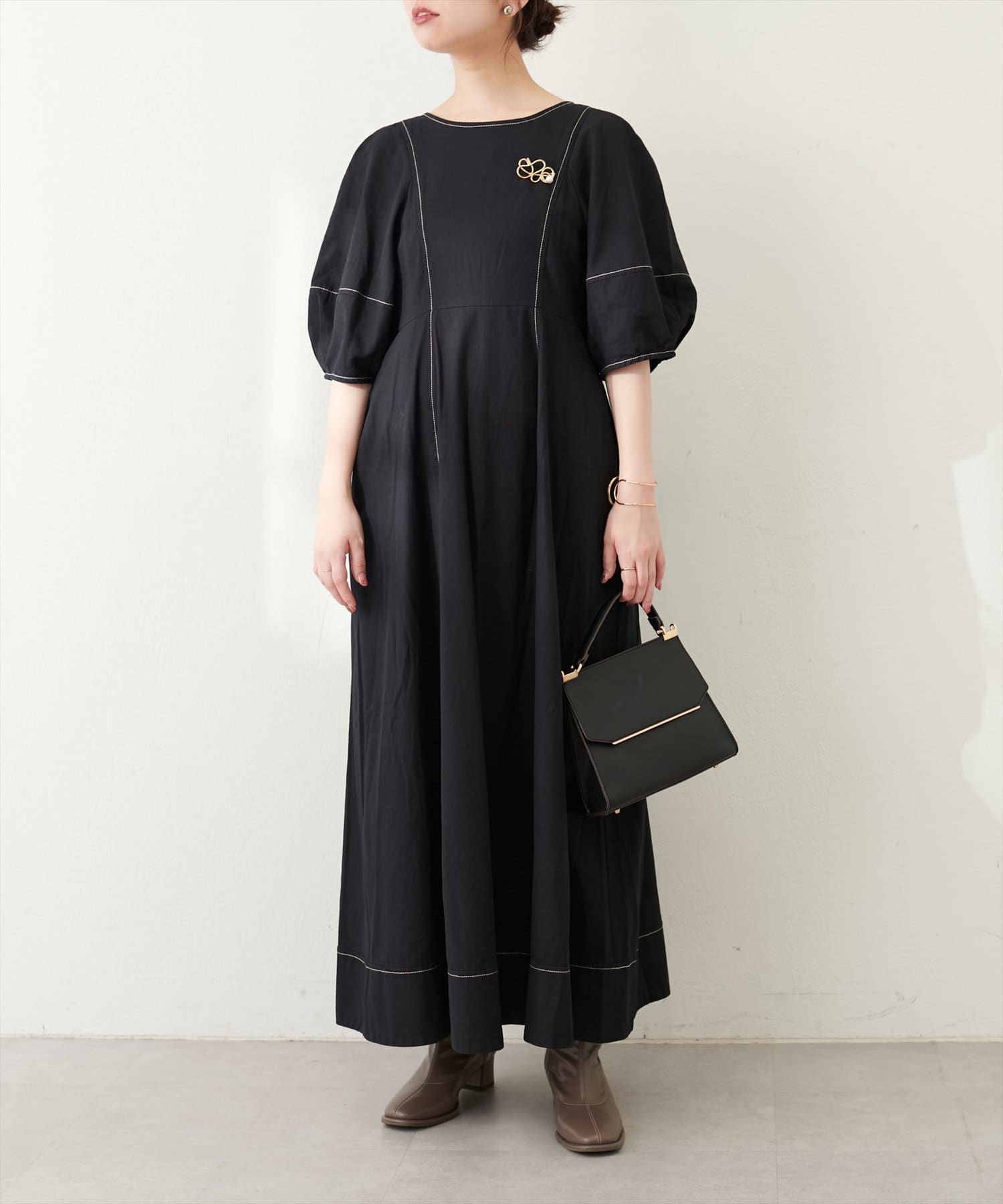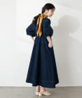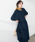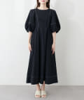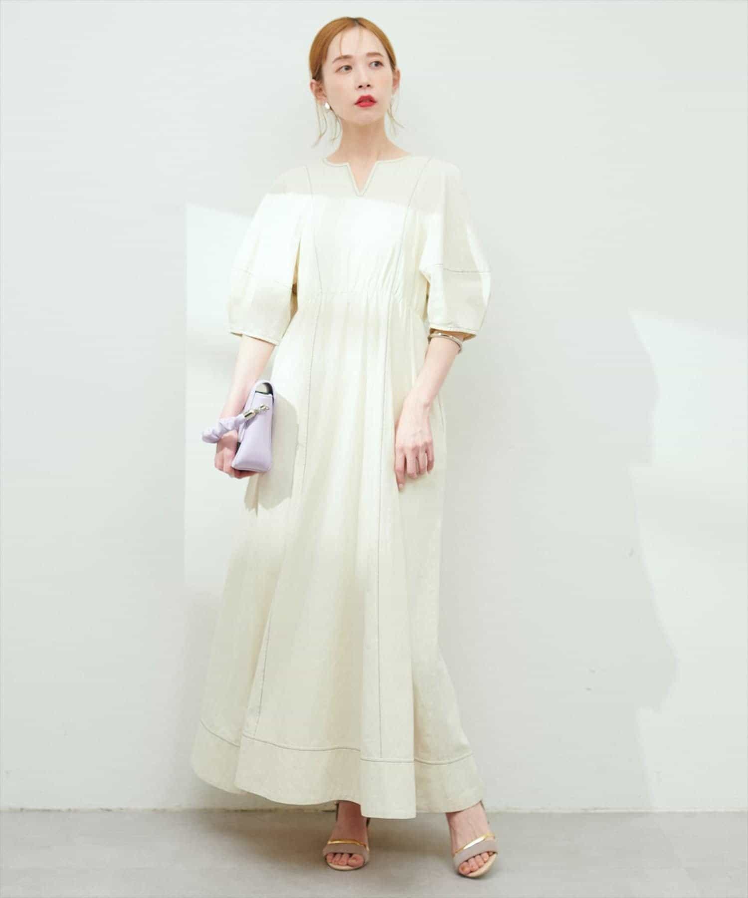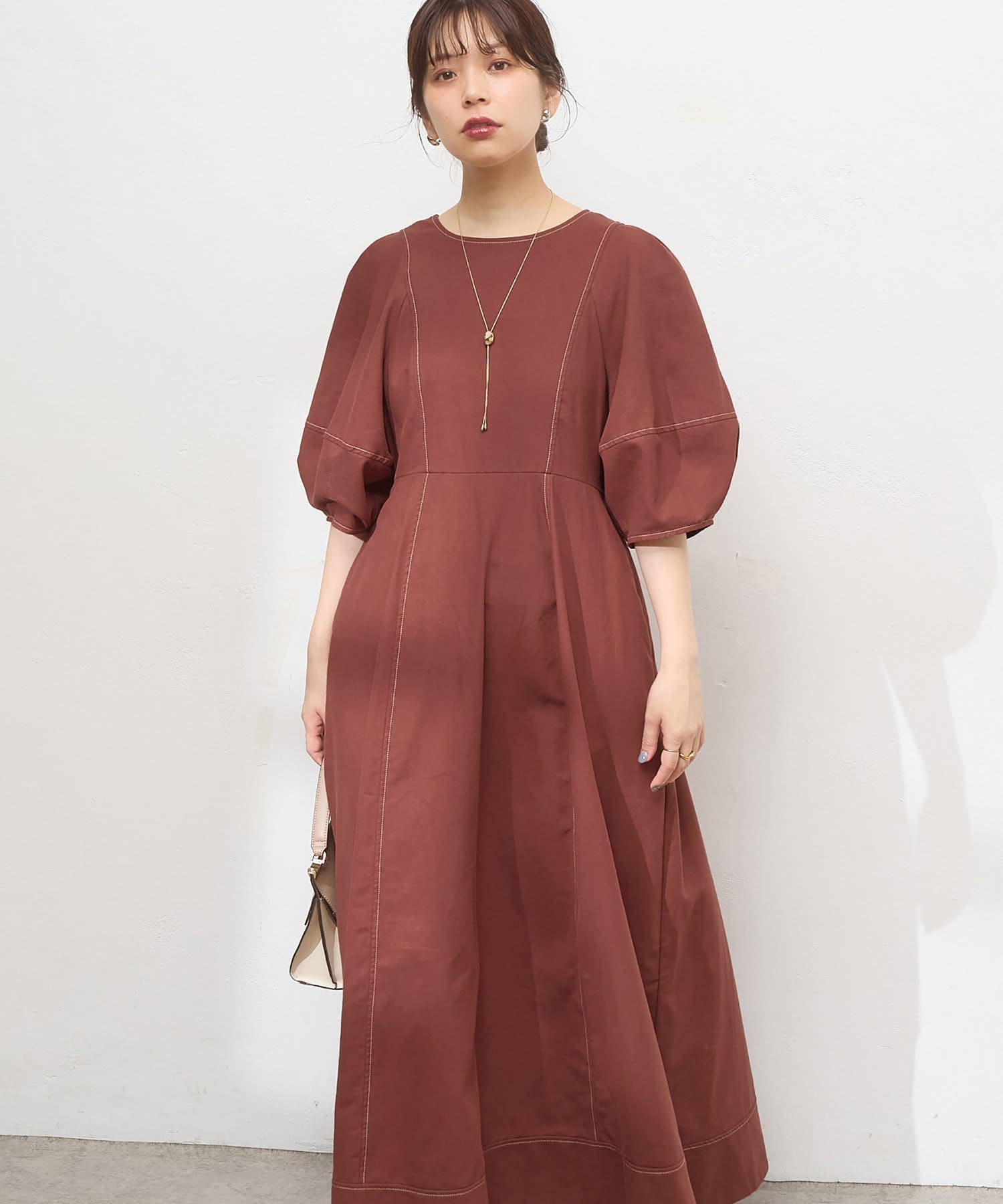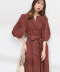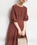 腕を華奢に見せてくれるランタンスリーブが目を引く1着。
