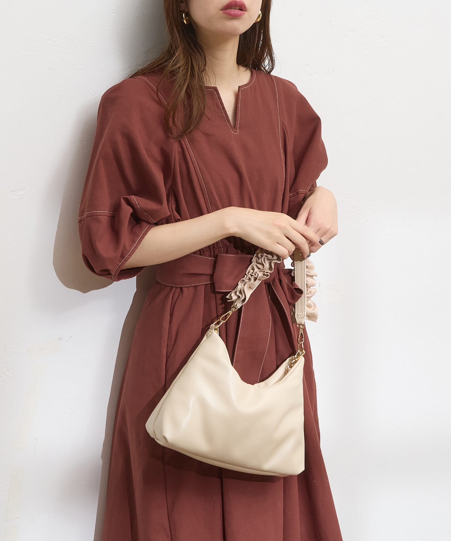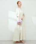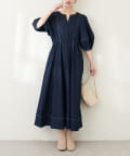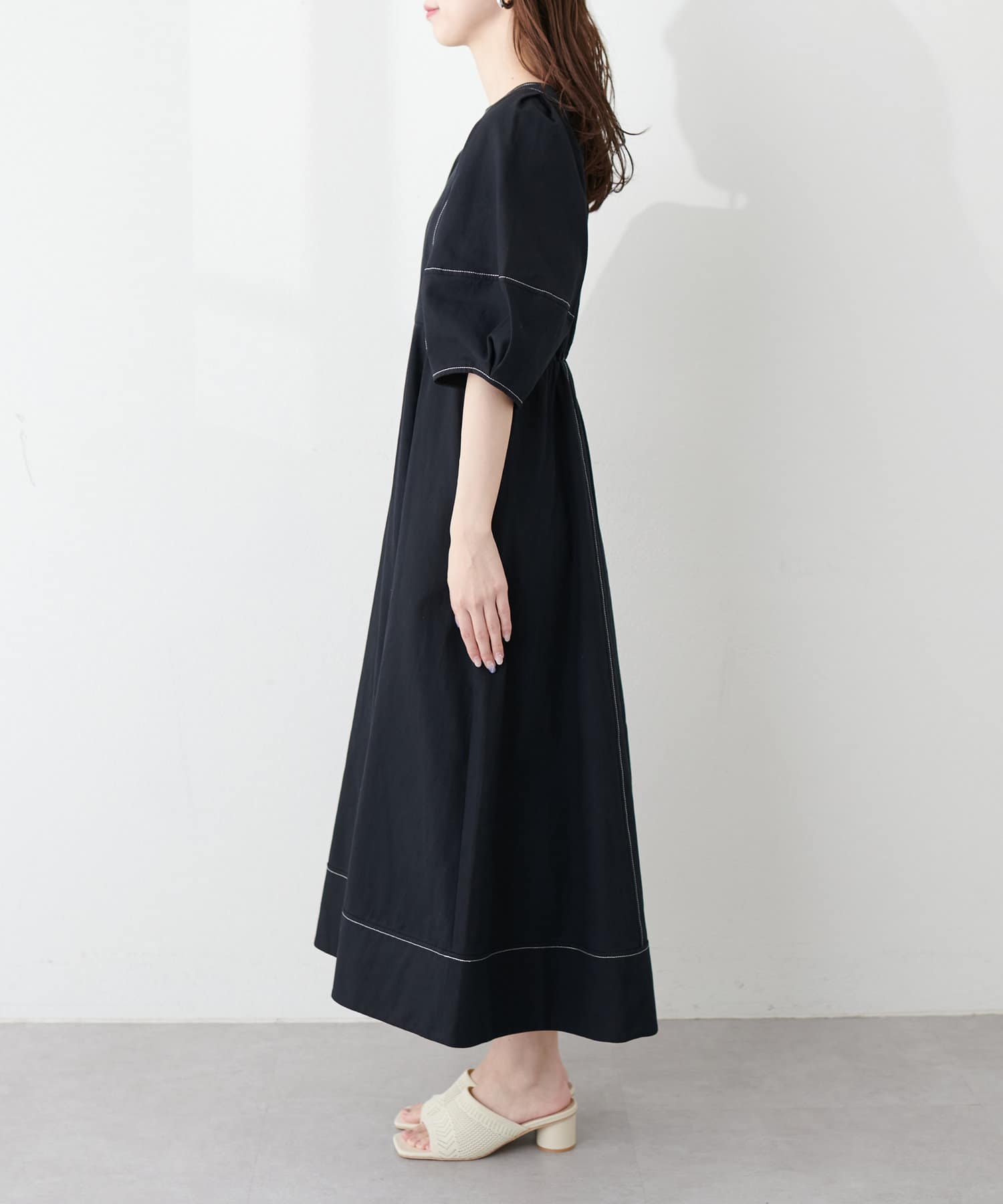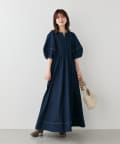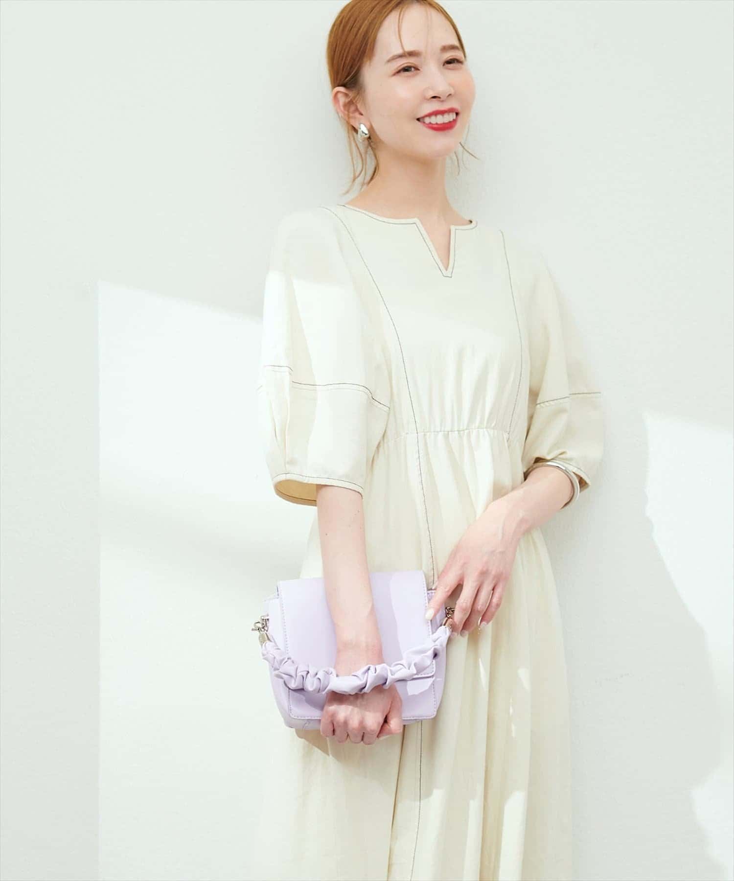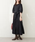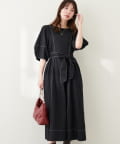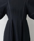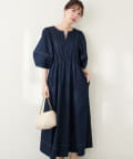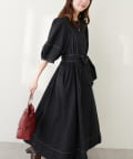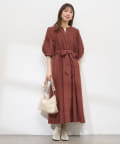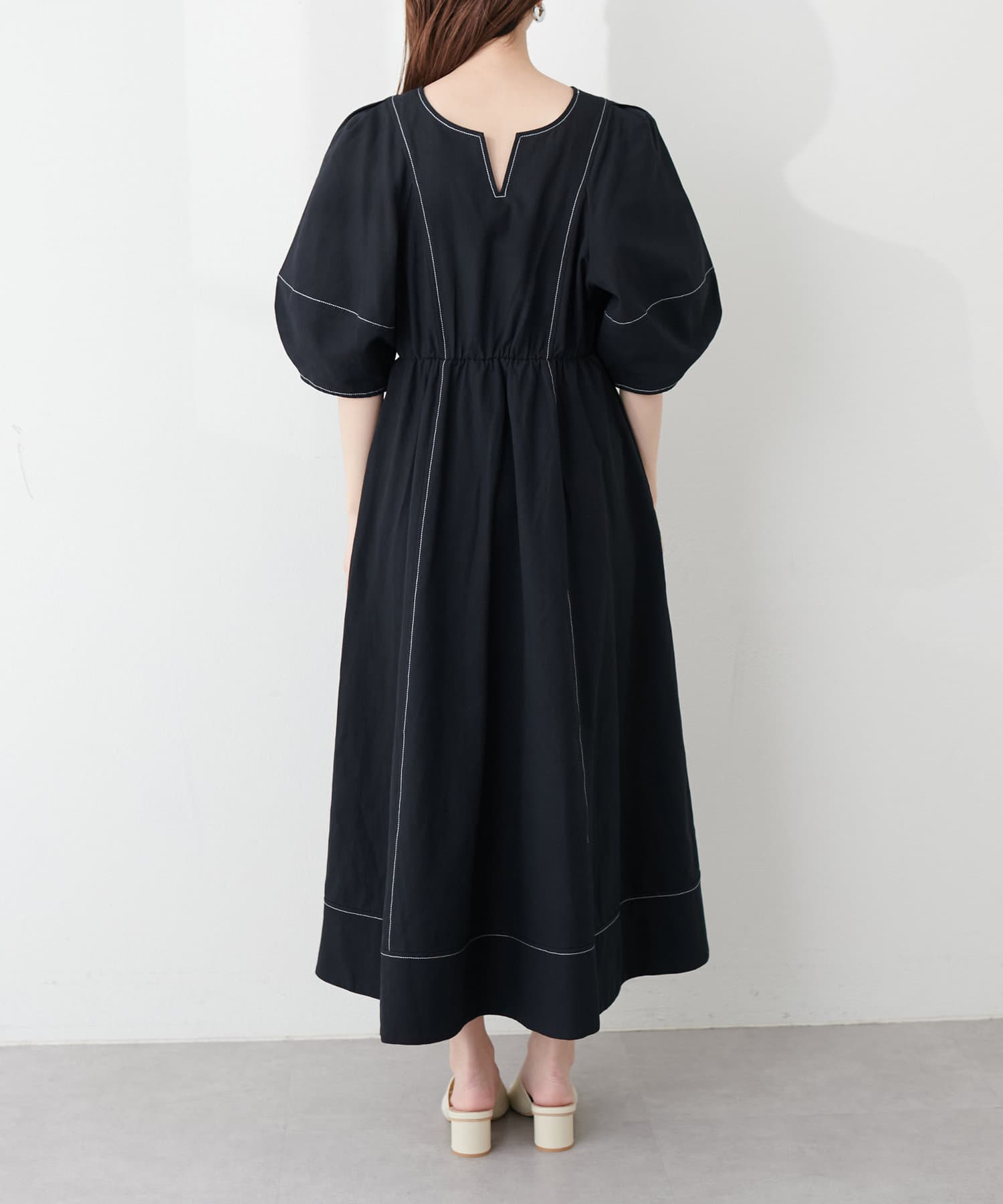 腕を華奢に見せてくれるランタンスリーブが目を引く1着。