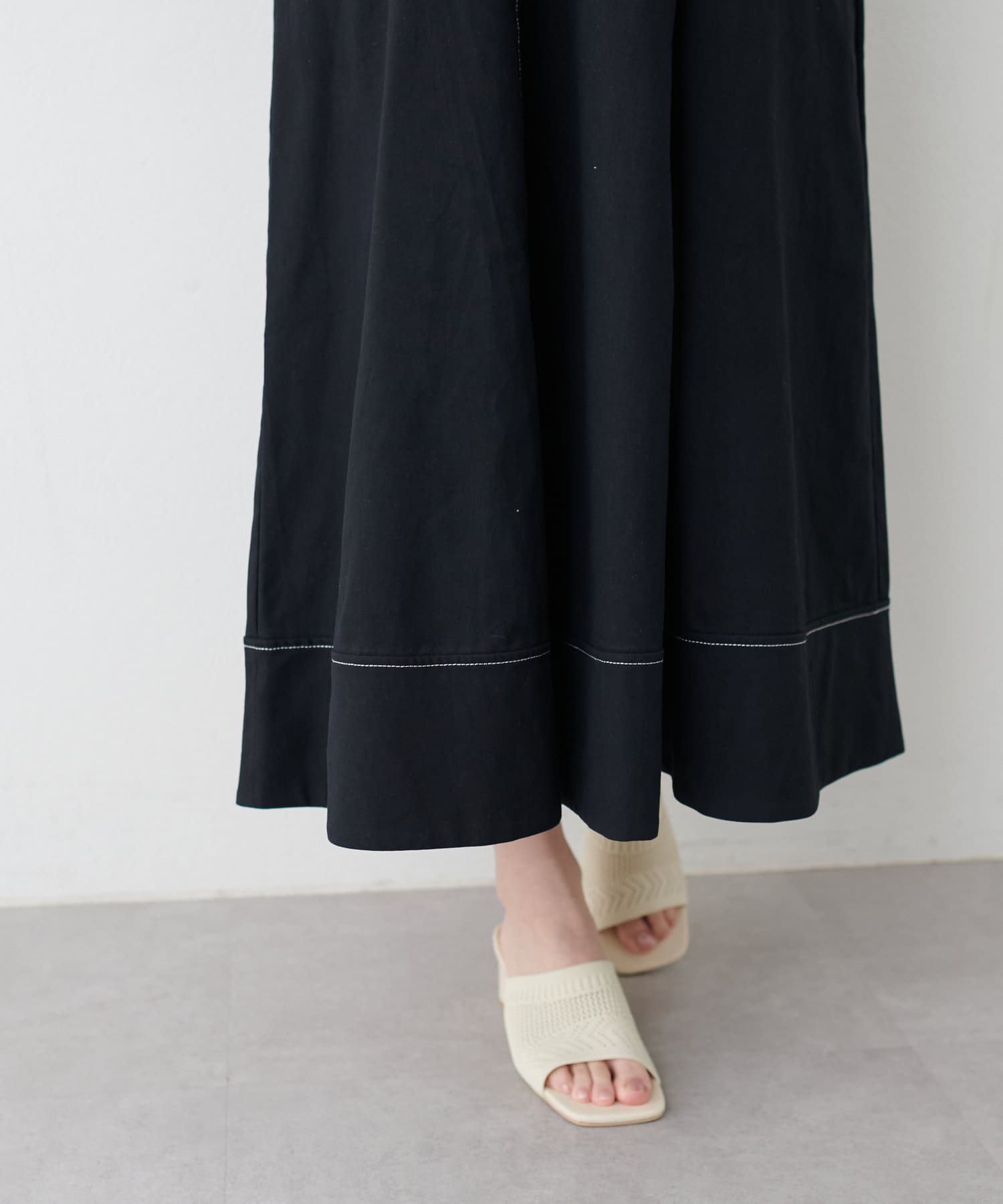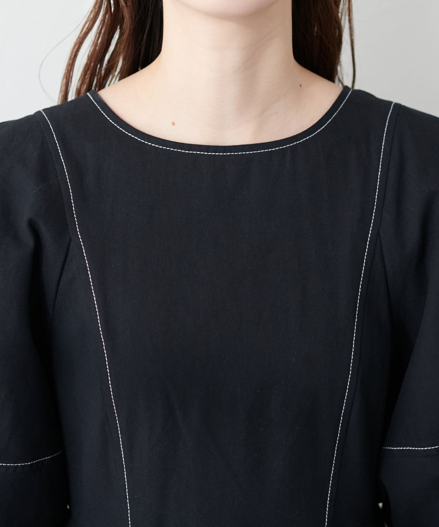 シンプルながらも、切り替え位置にさりげなくステッチを施し、