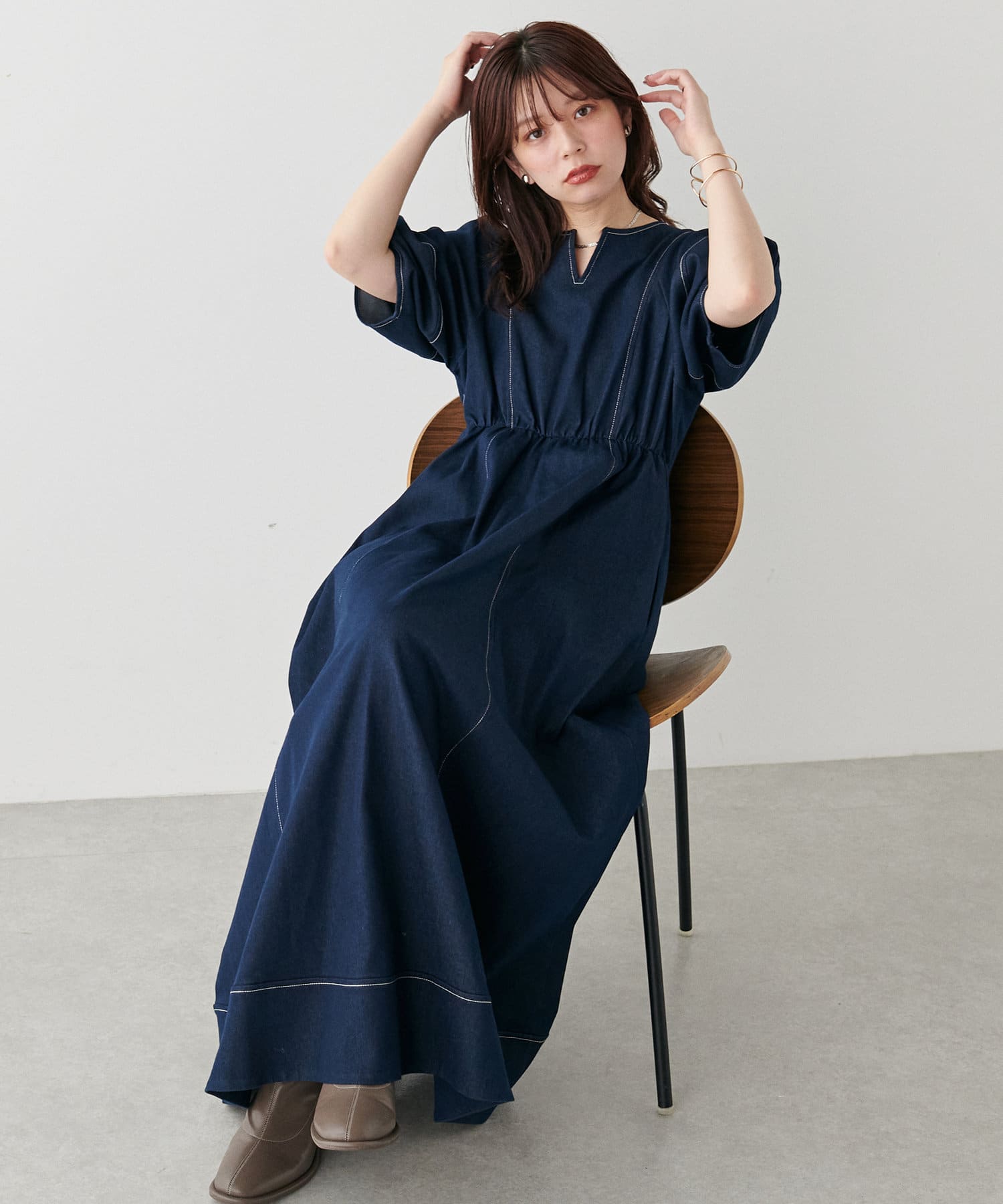 お好みでウエストリボンでマークし、スタイルアップな着こなしも楽しんで頂けます。
