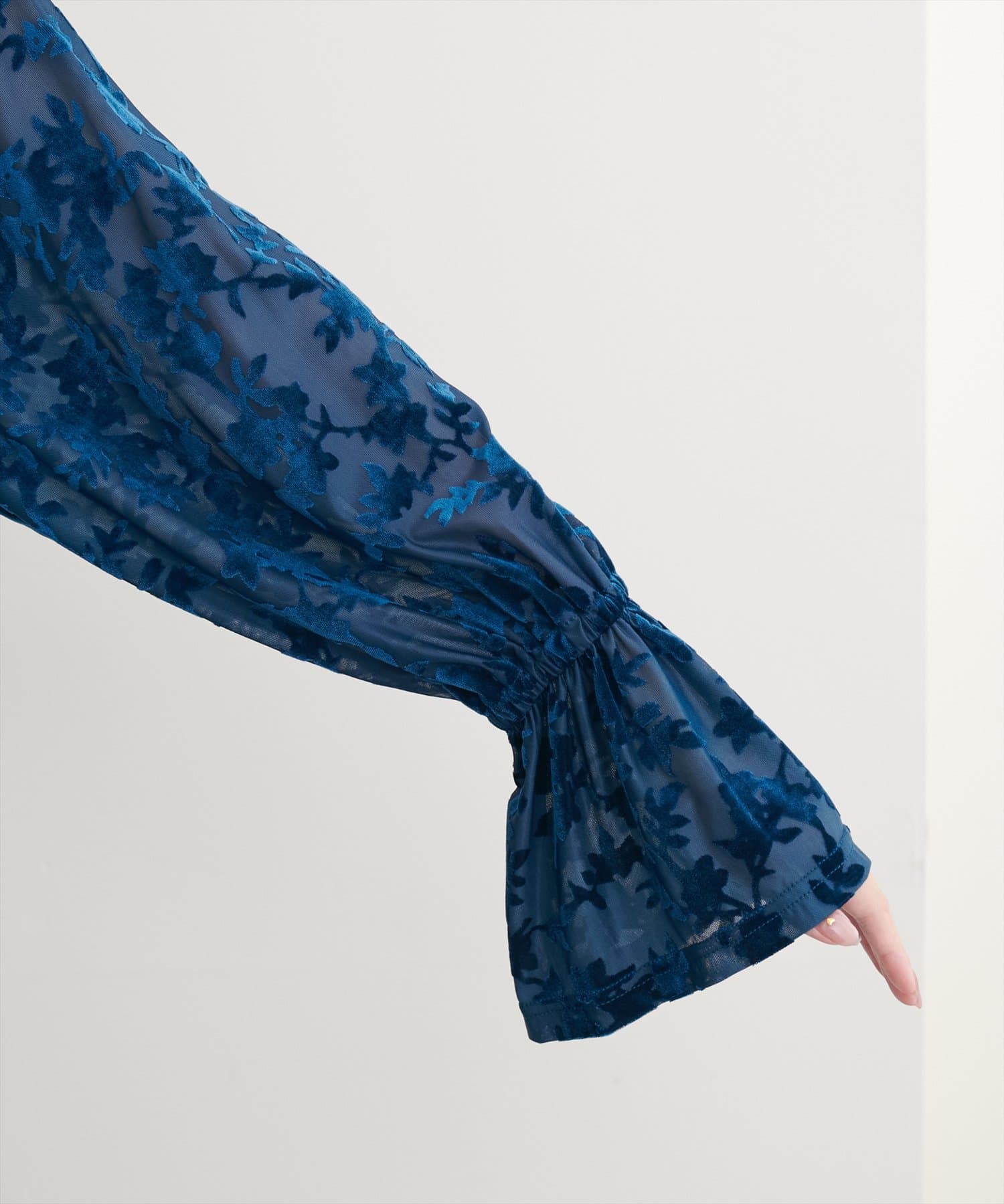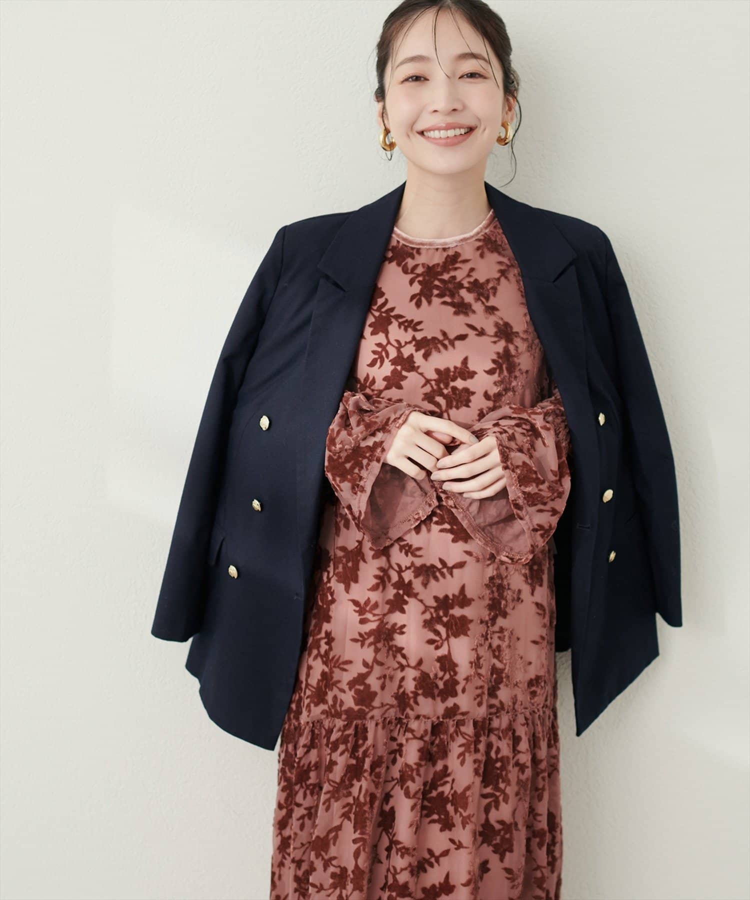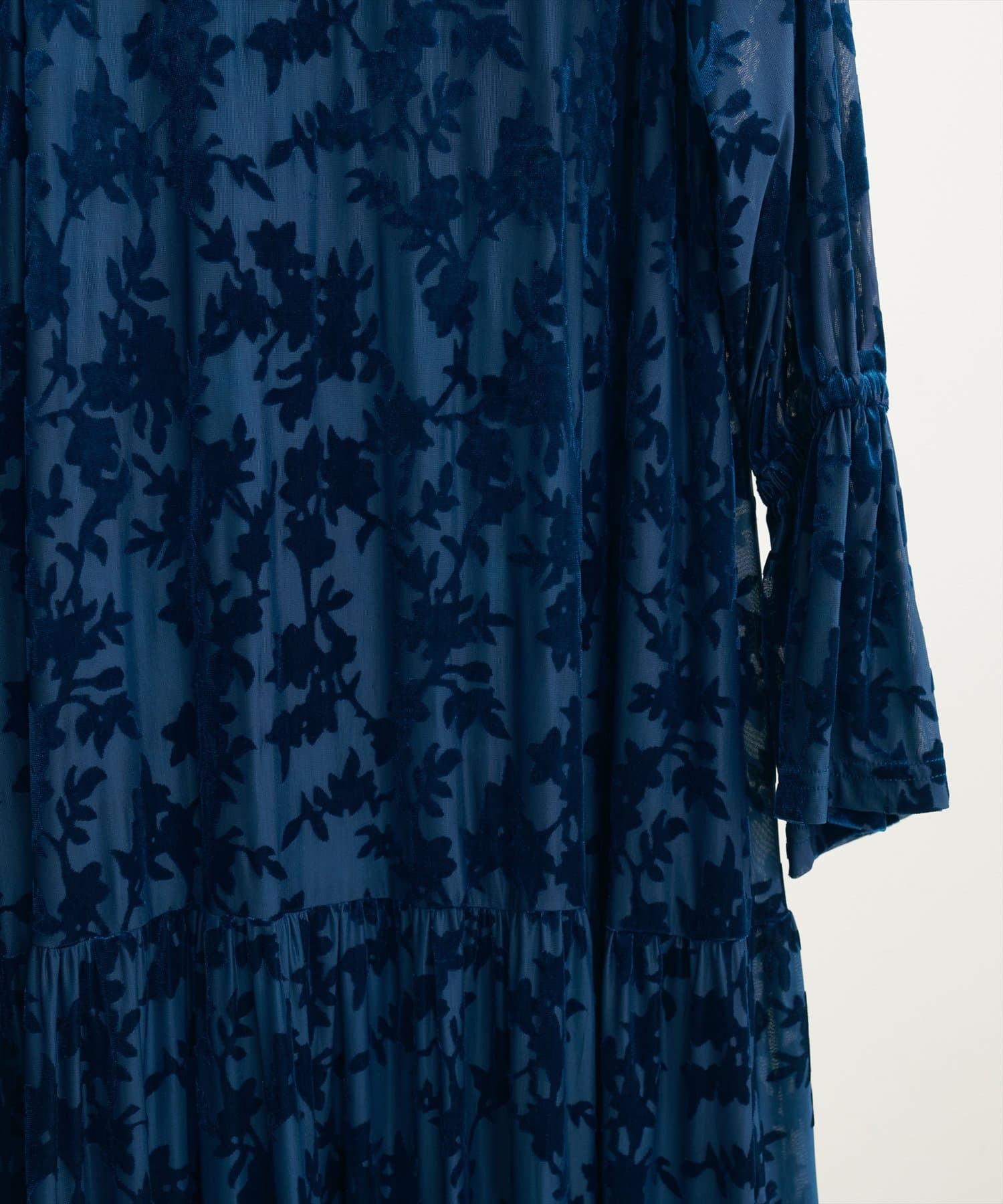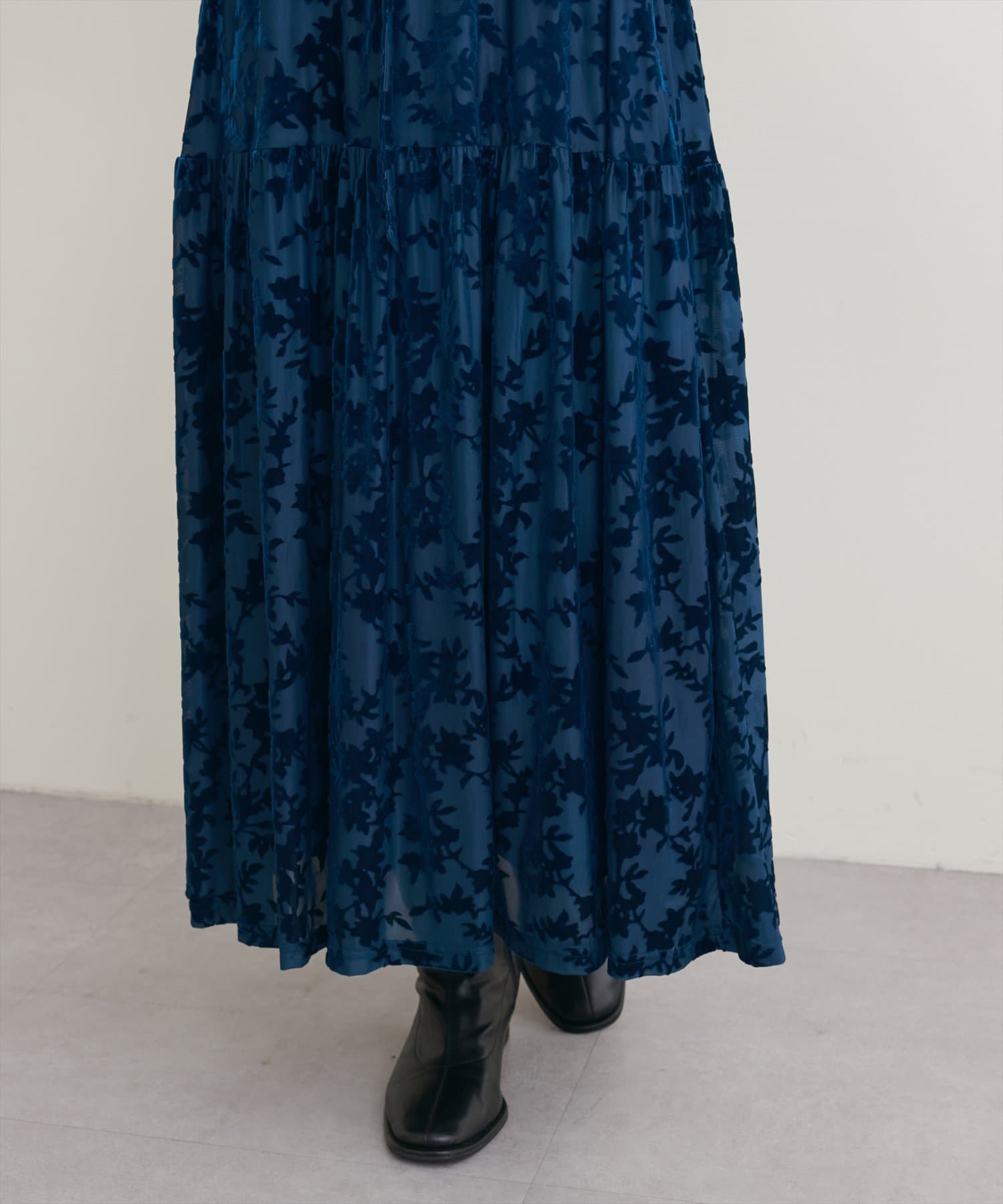 ほんのり光沢感のあるシアー×ベロア生地の高見えワンピース。