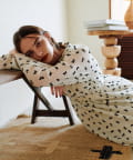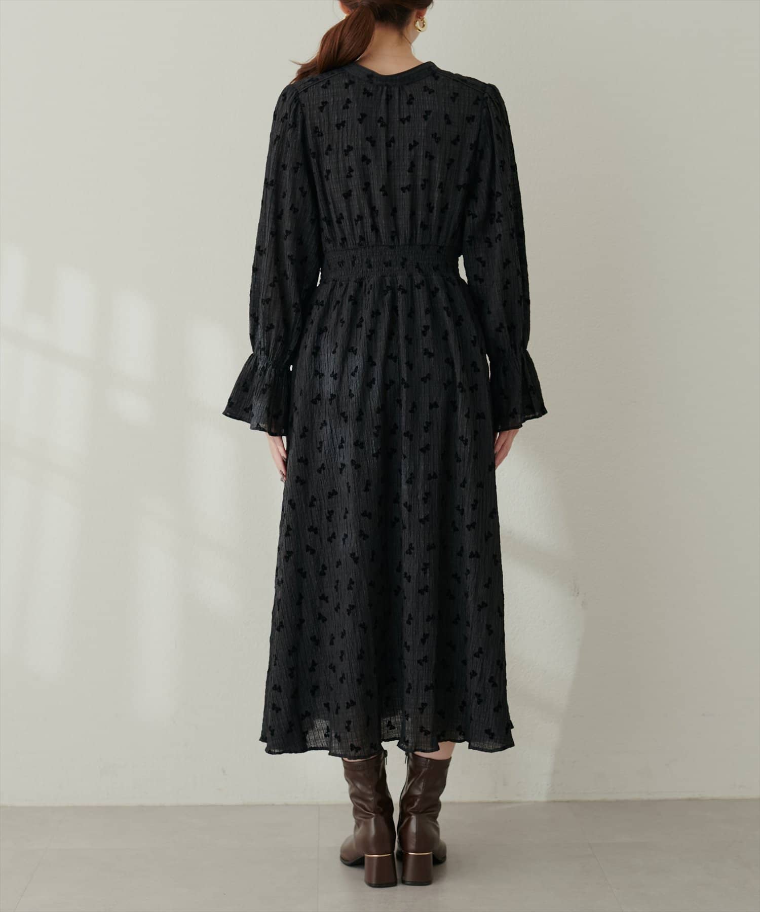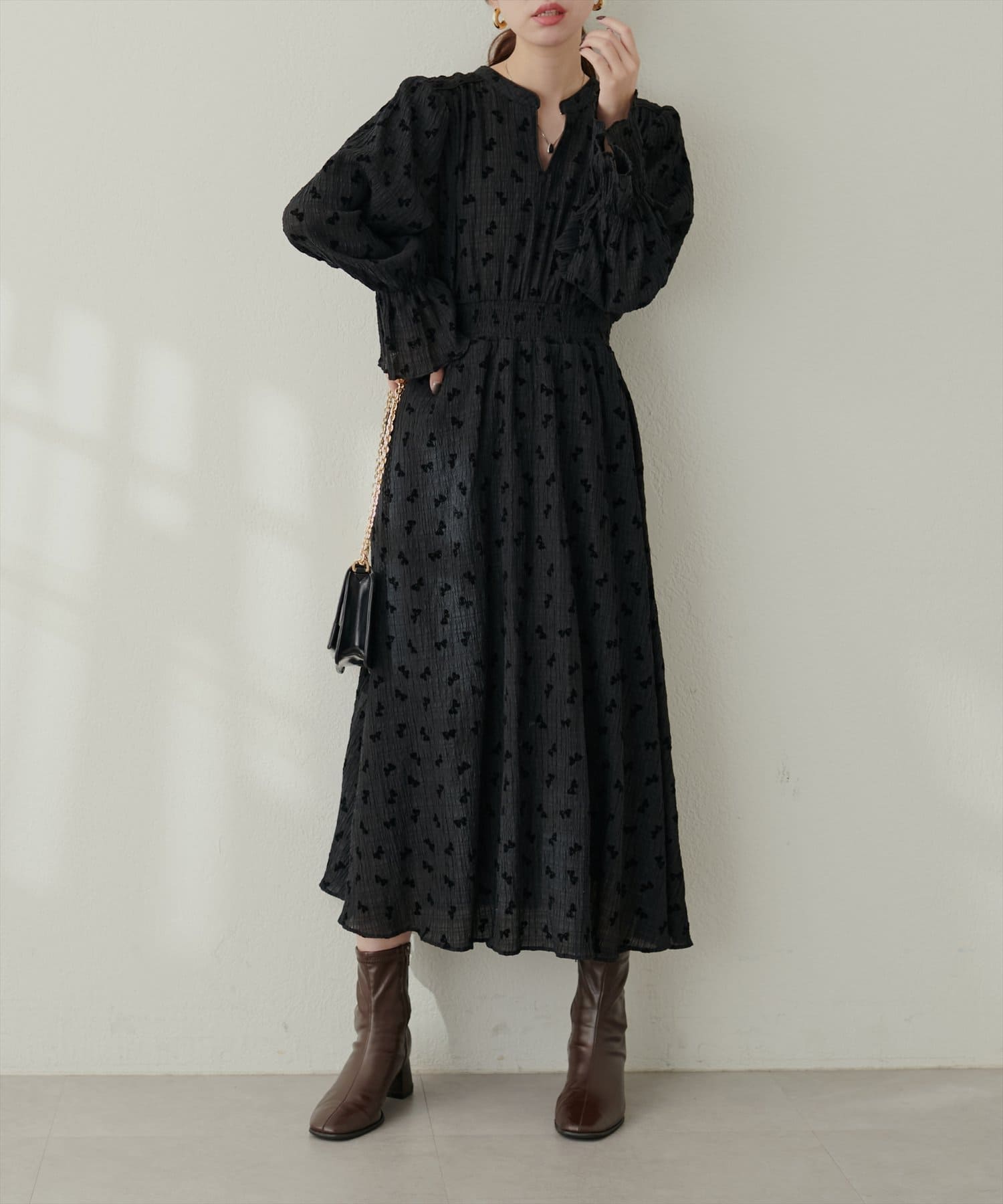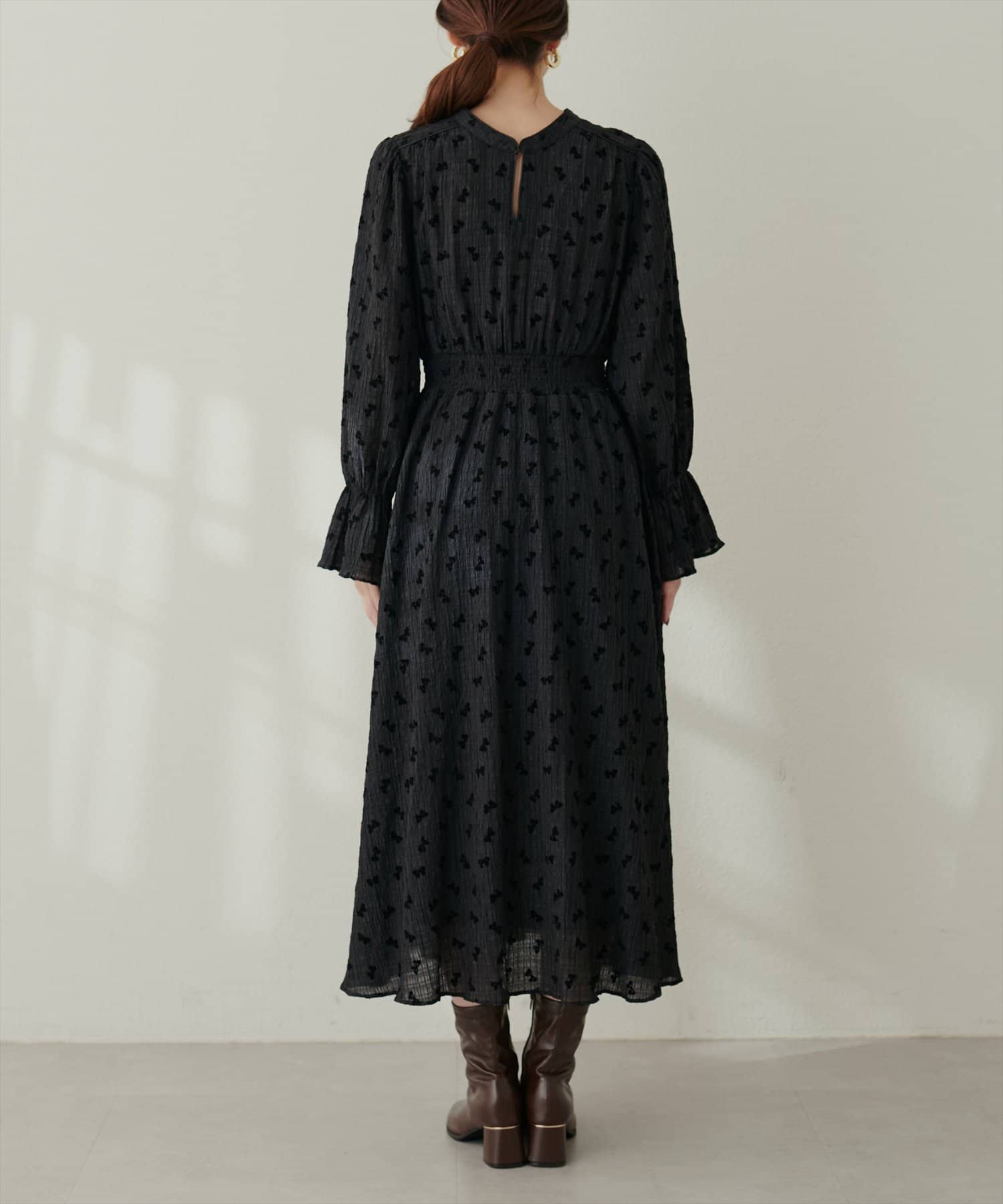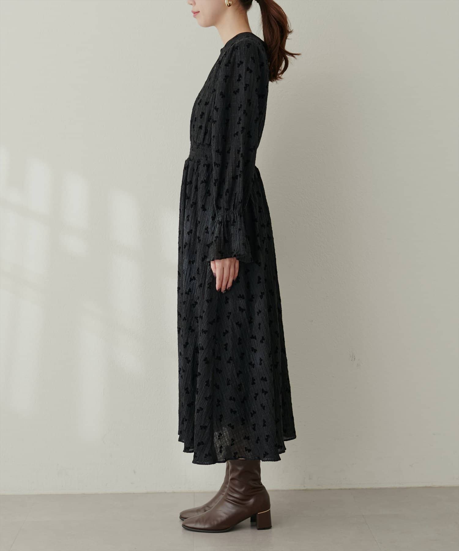 優しく身体にフィットし、ウエストで切り替えが入ることで女性らしいシルエットになります。