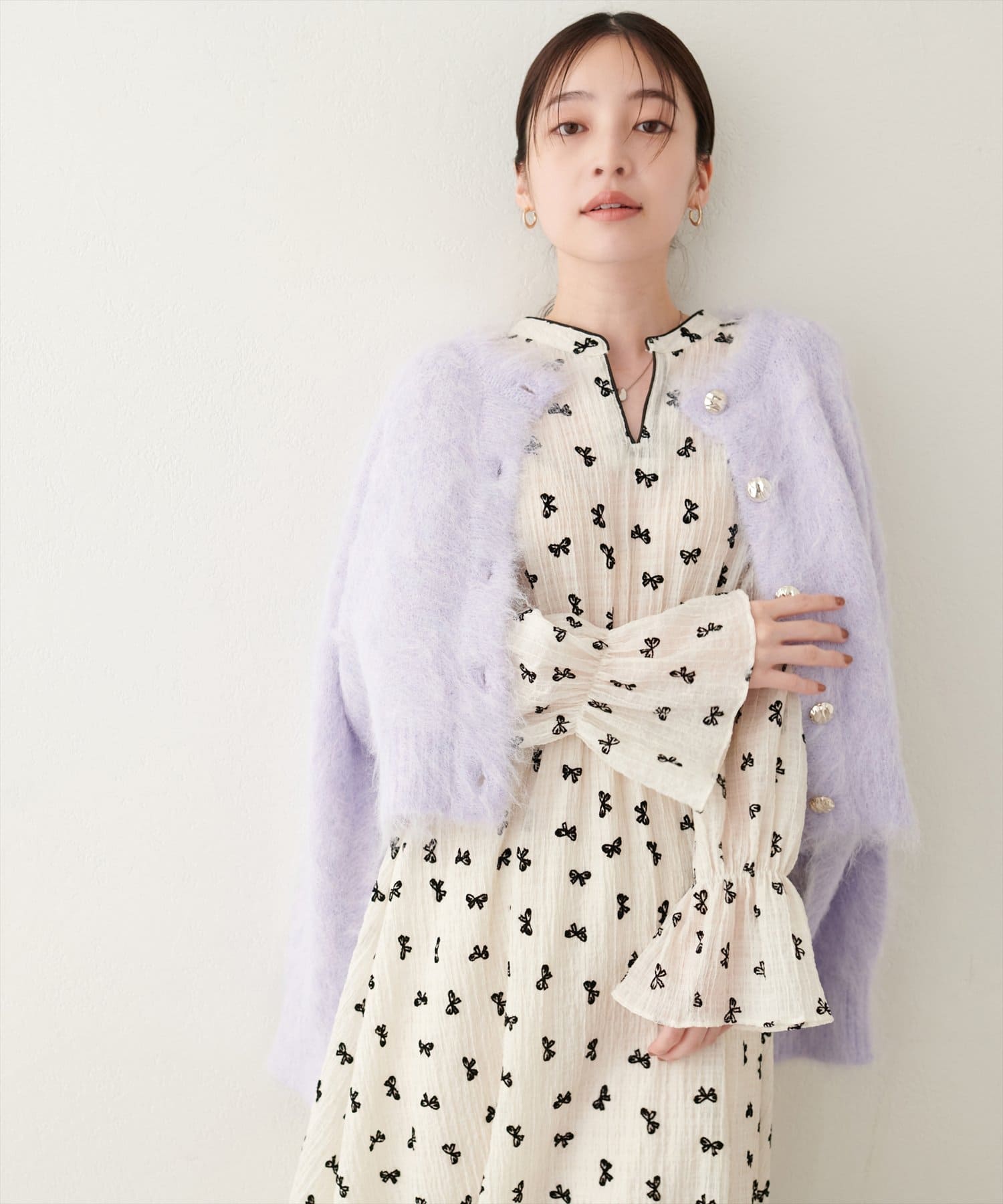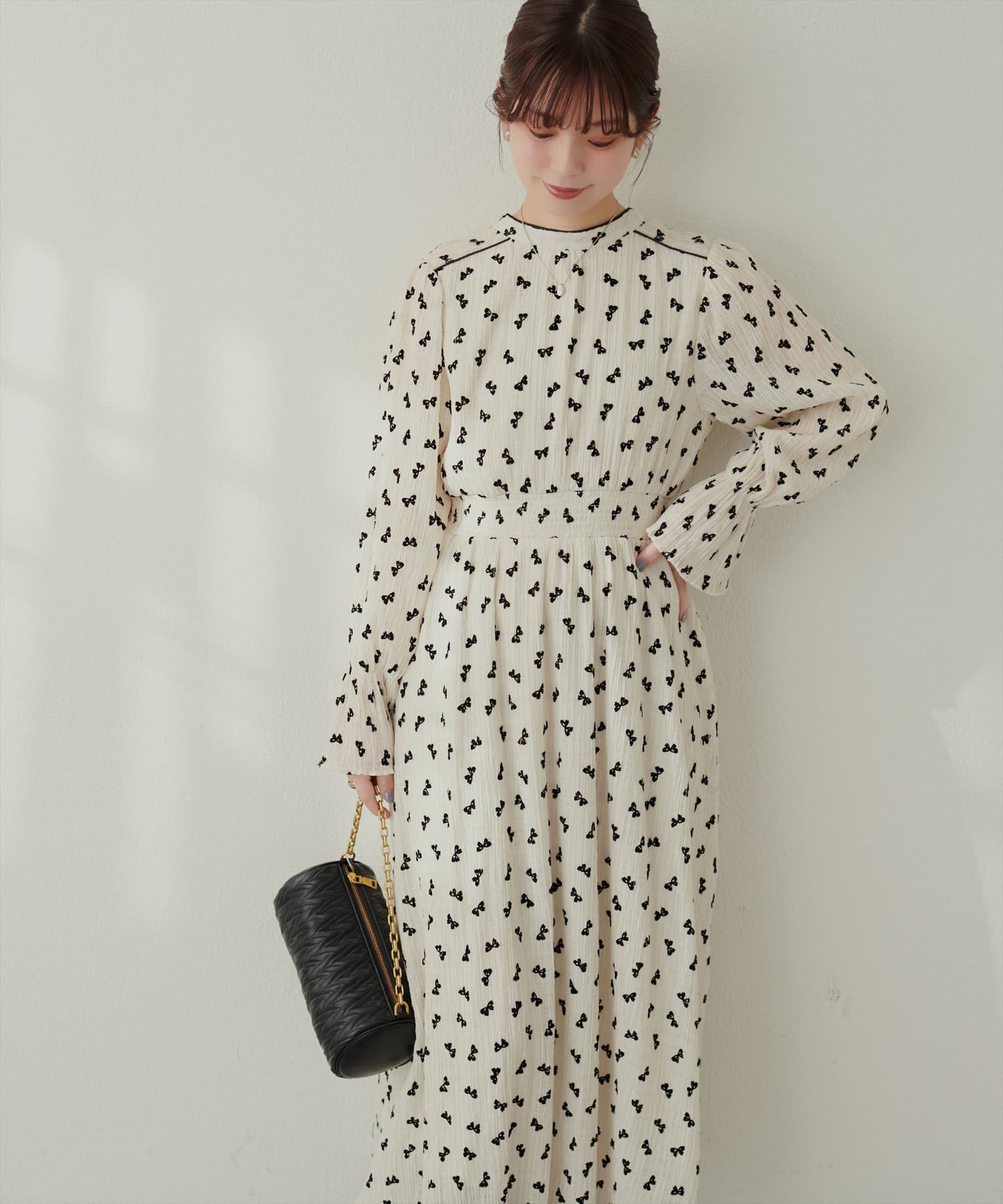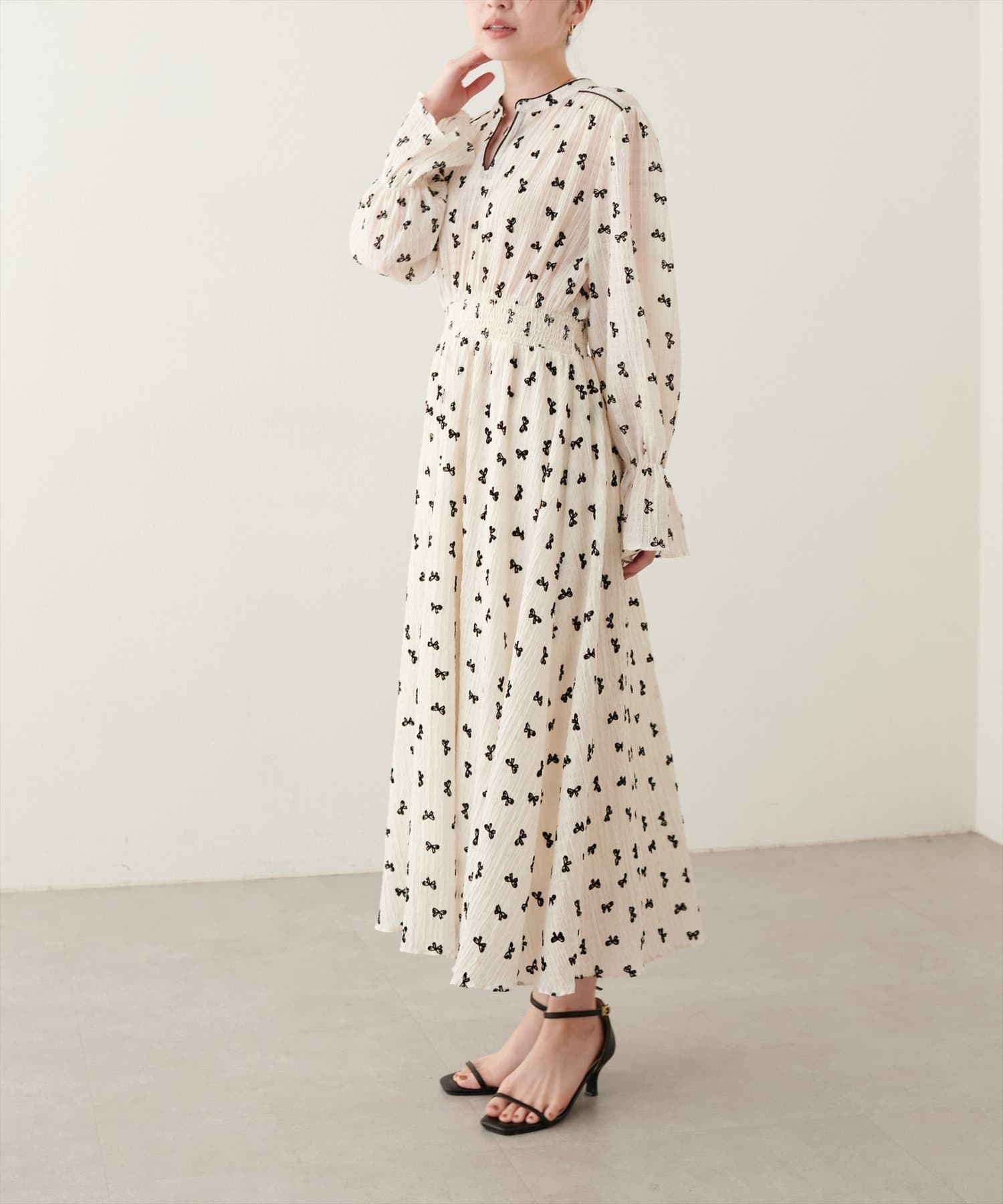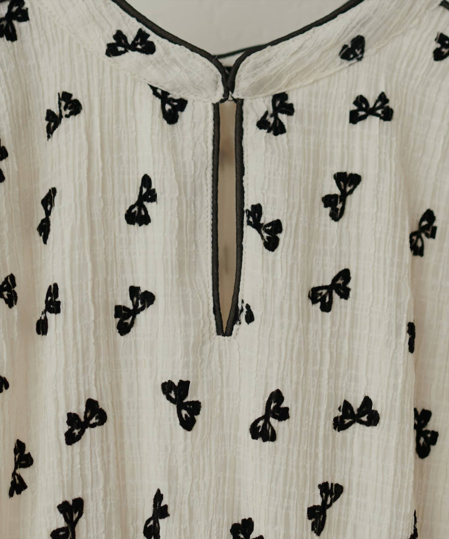 さり気なくも可愛らしさのあるリボン刺繍が施された清楚な印象の一枚