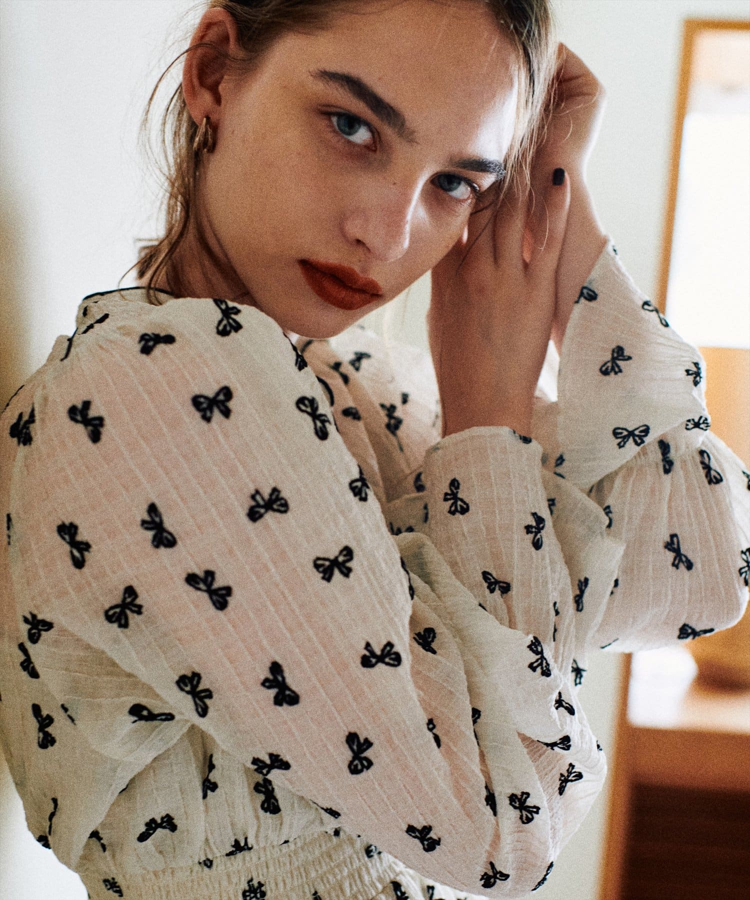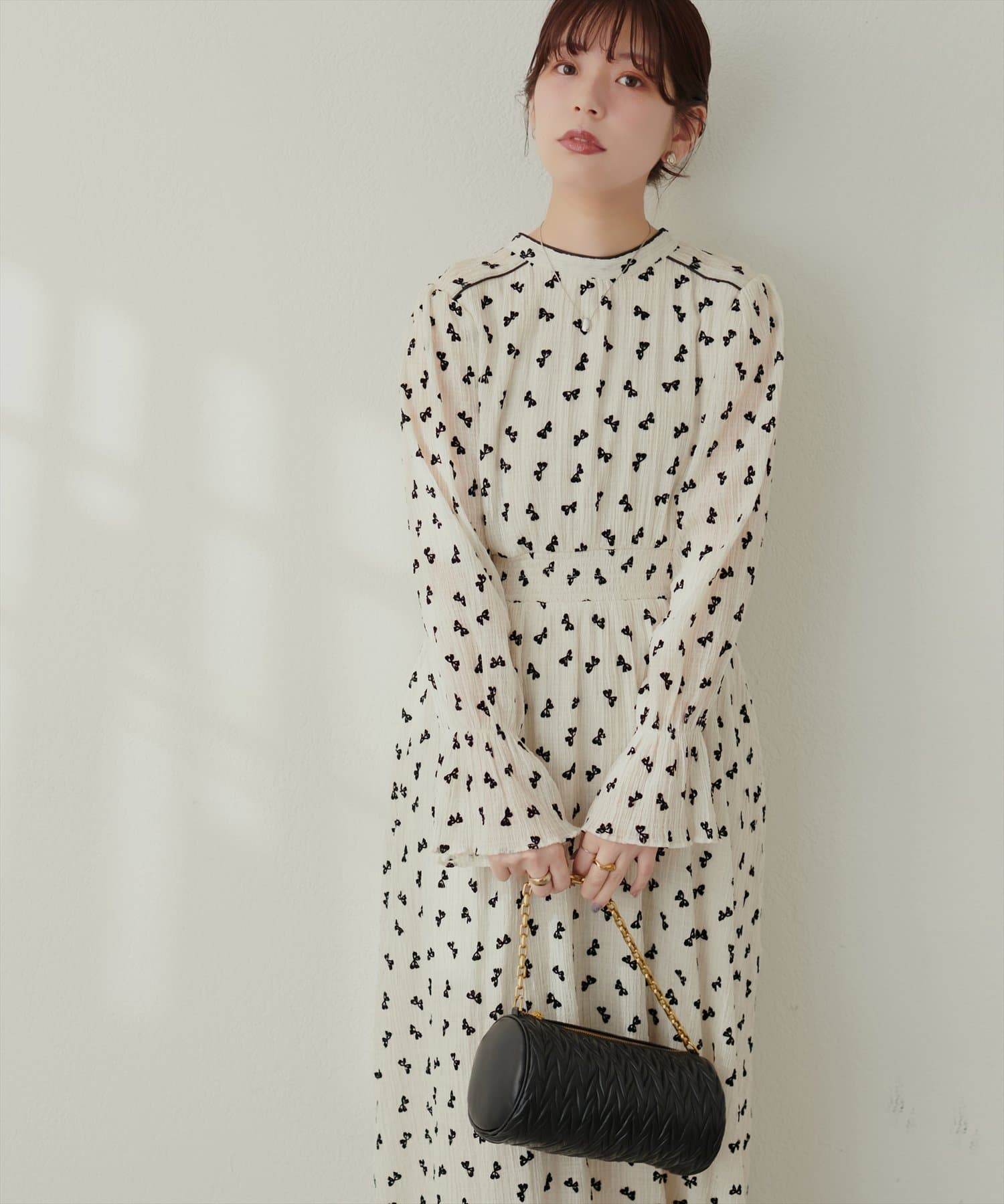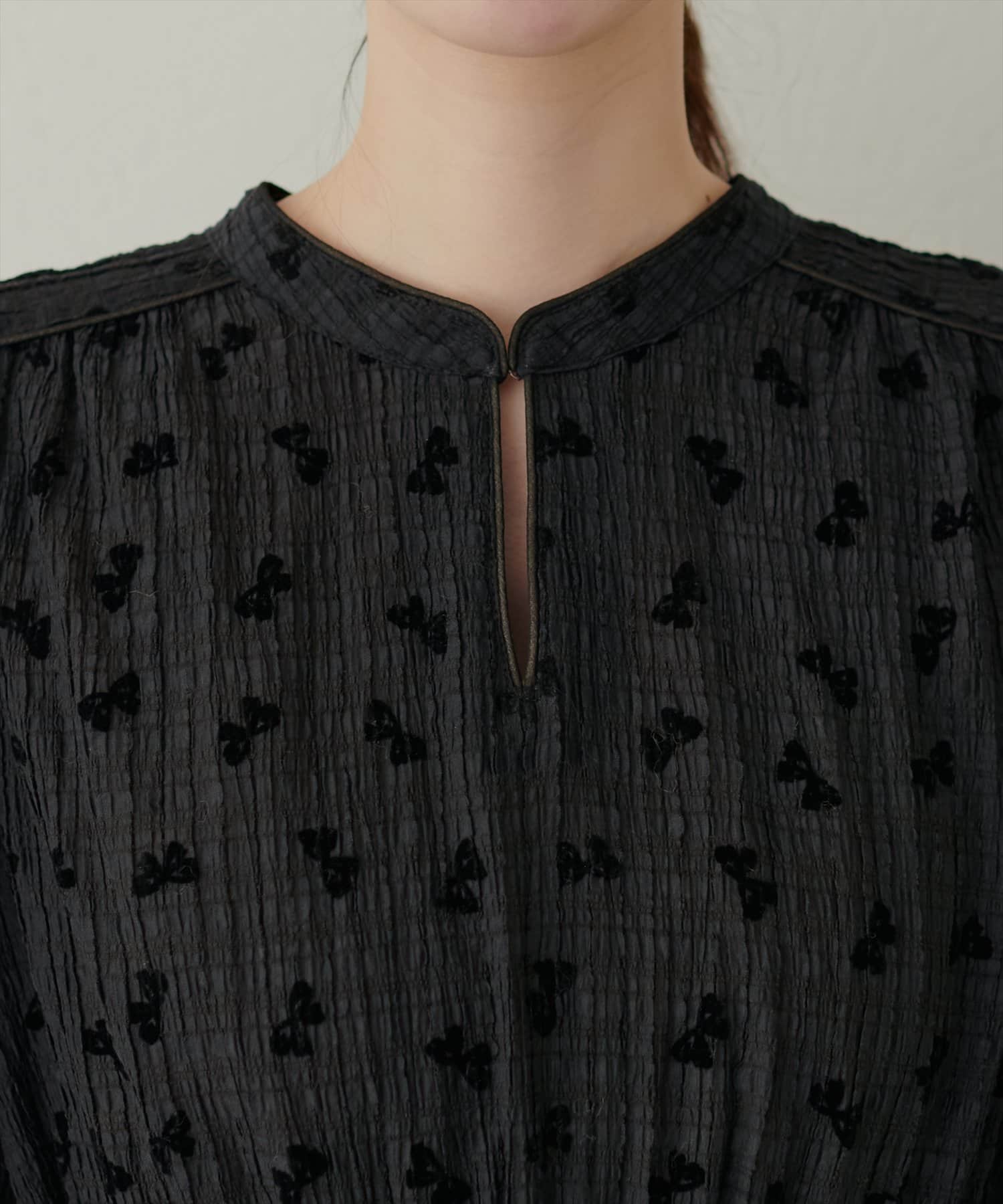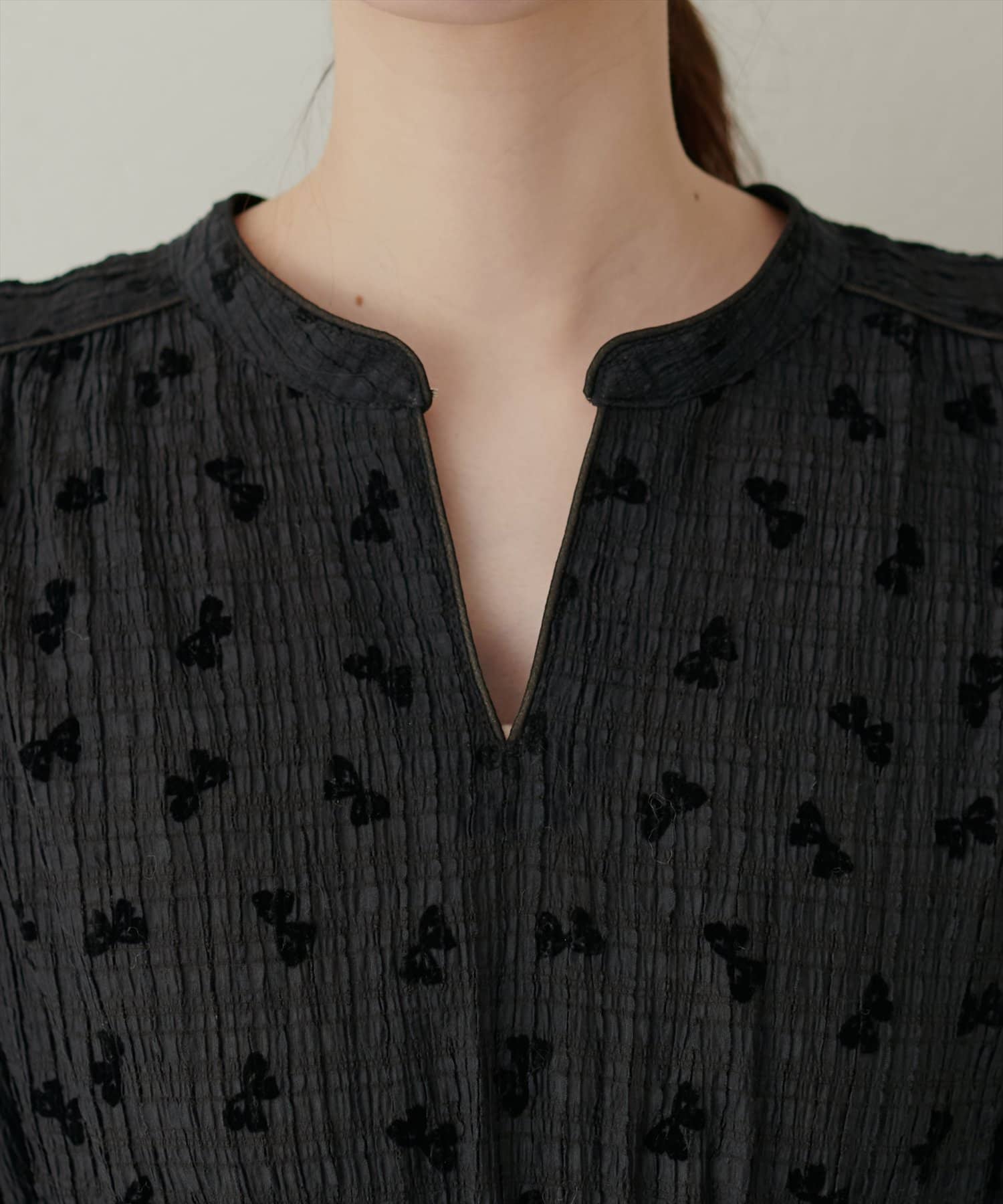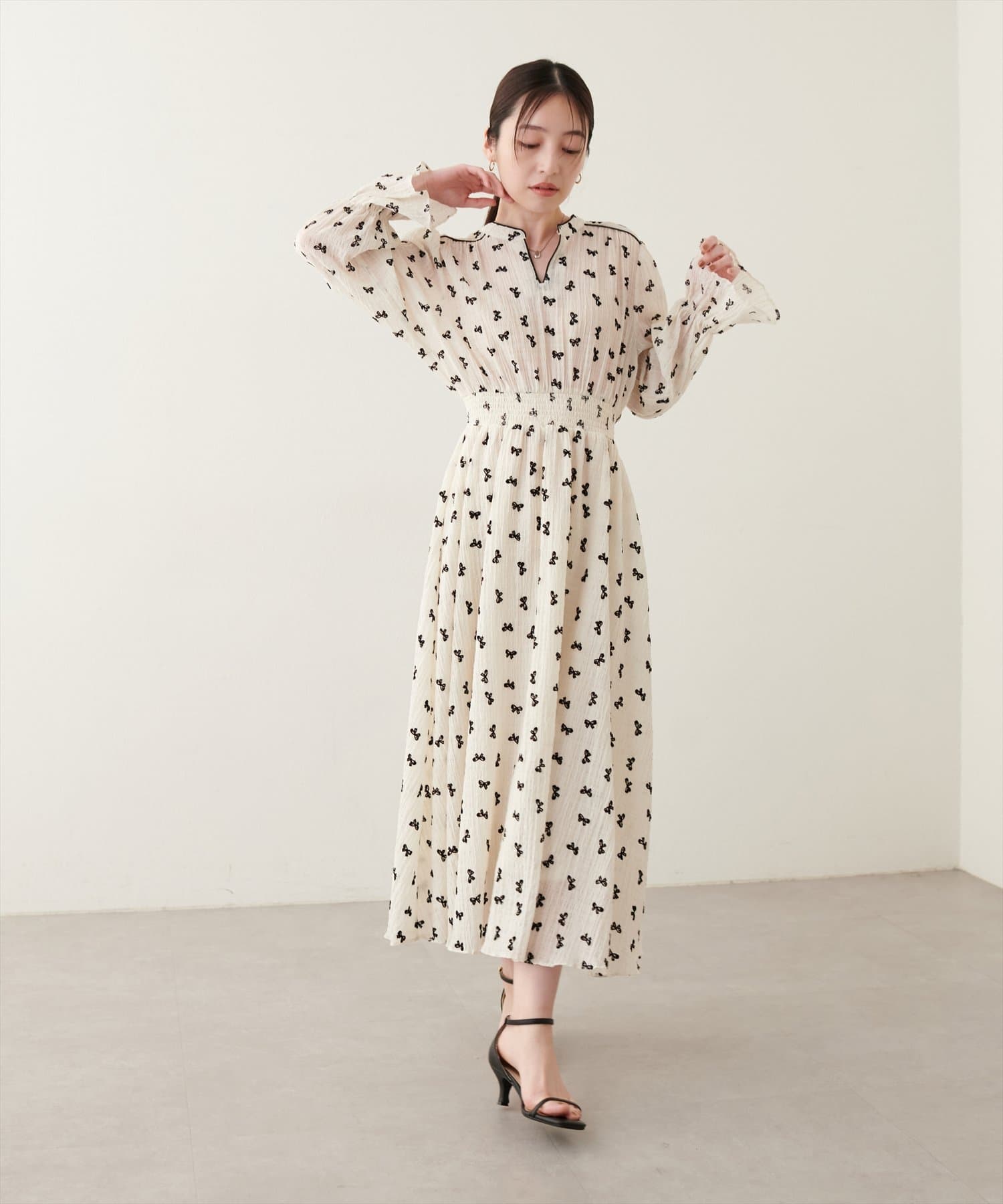 さり気なくも可愛らしさのあるリボン刺繍が施された清楚な印象の一枚