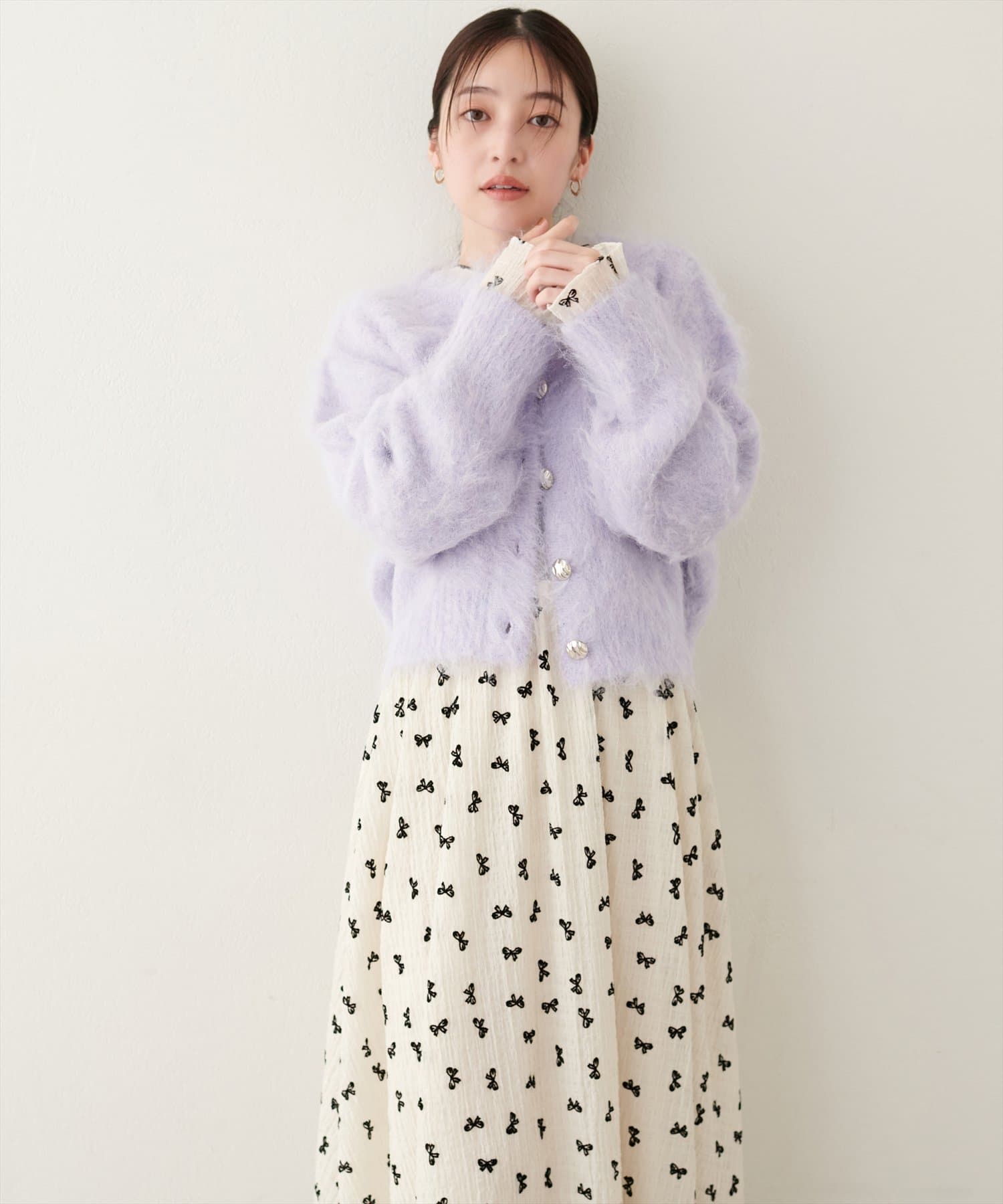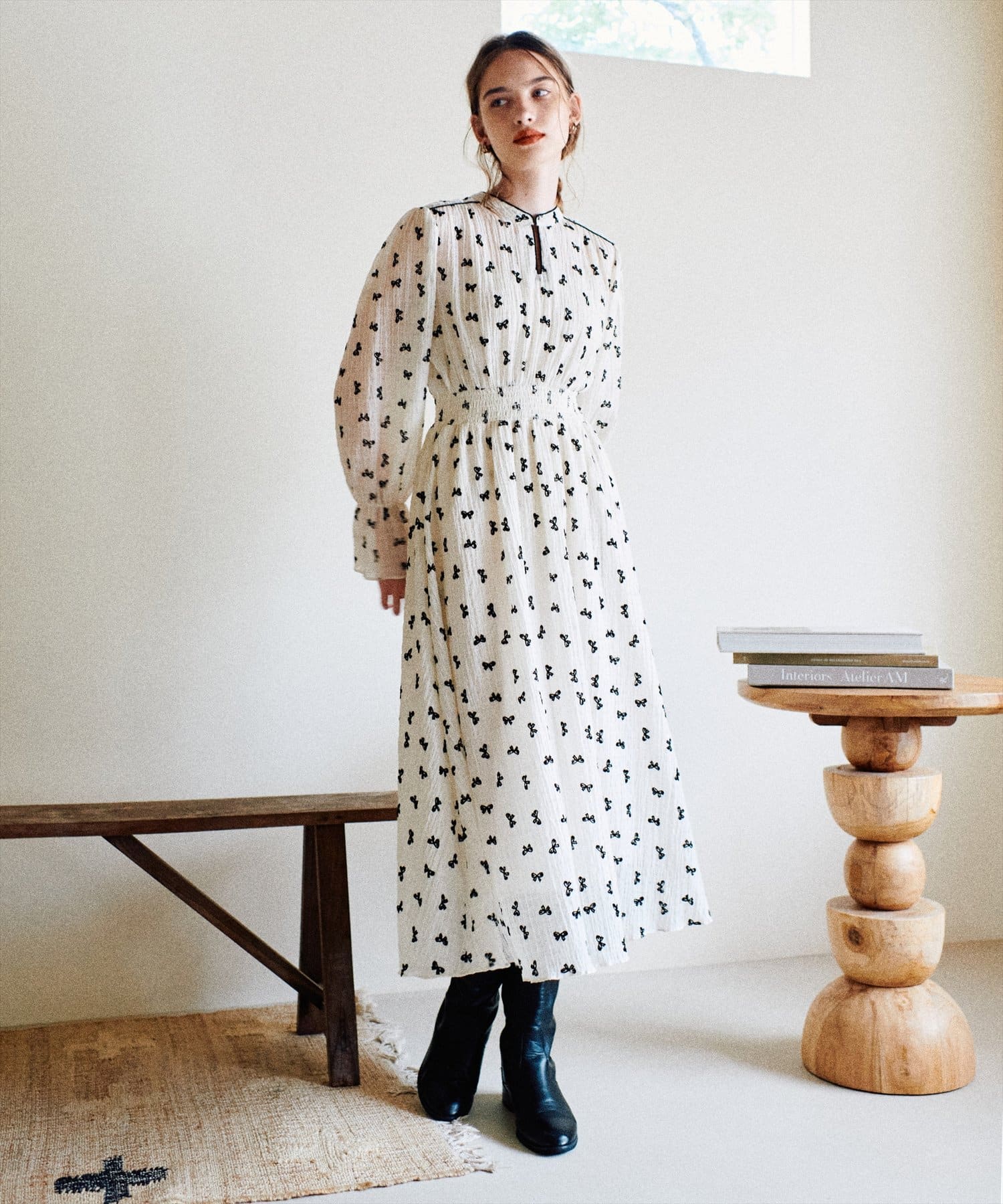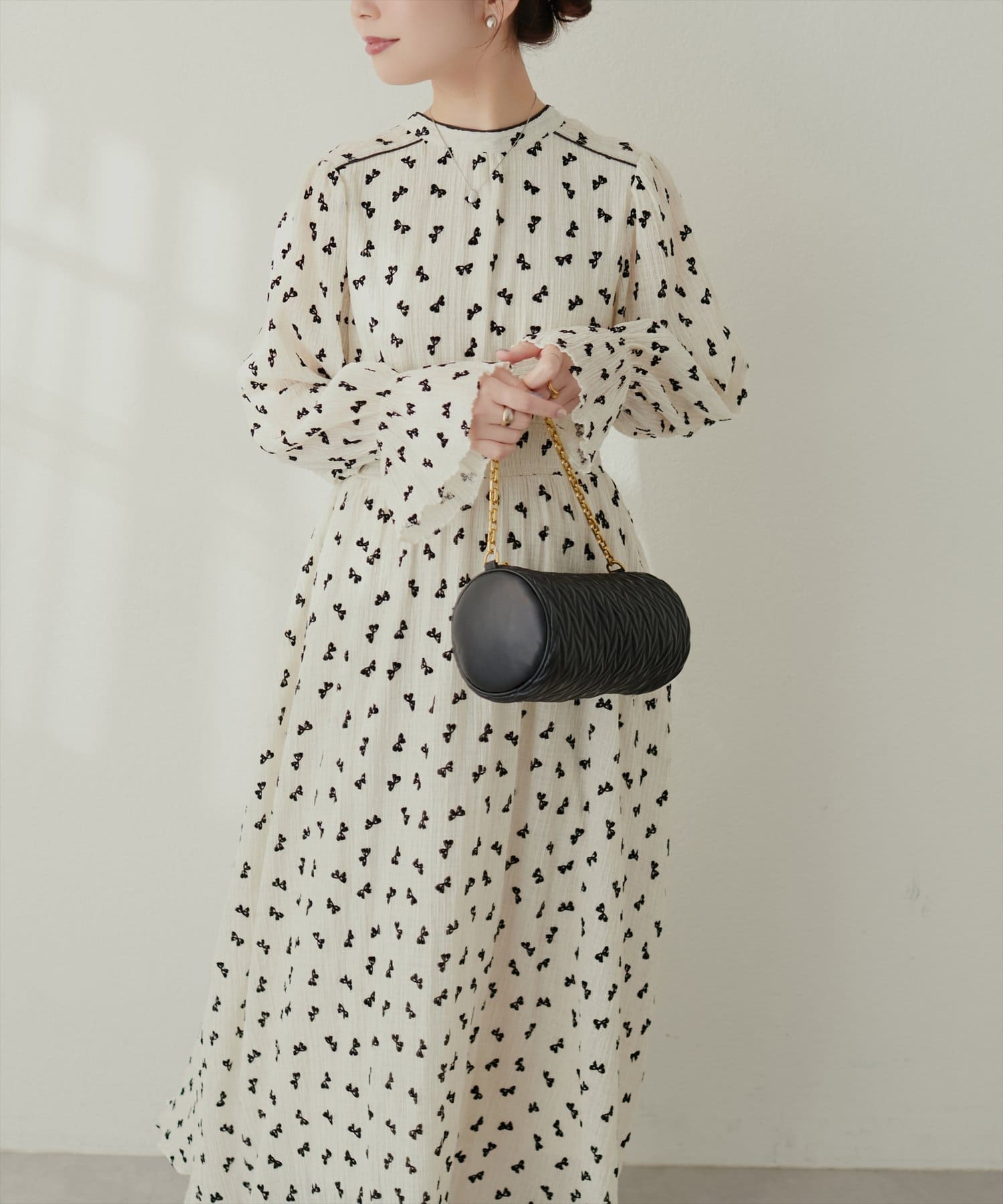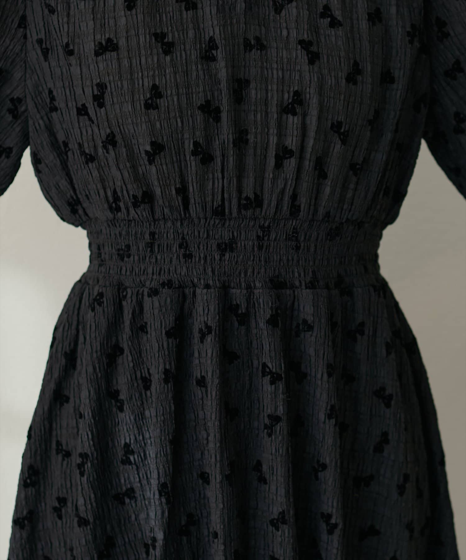 さり気なくも可愛らしさのあるリボン刺繍が施された清楚な印象の一枚