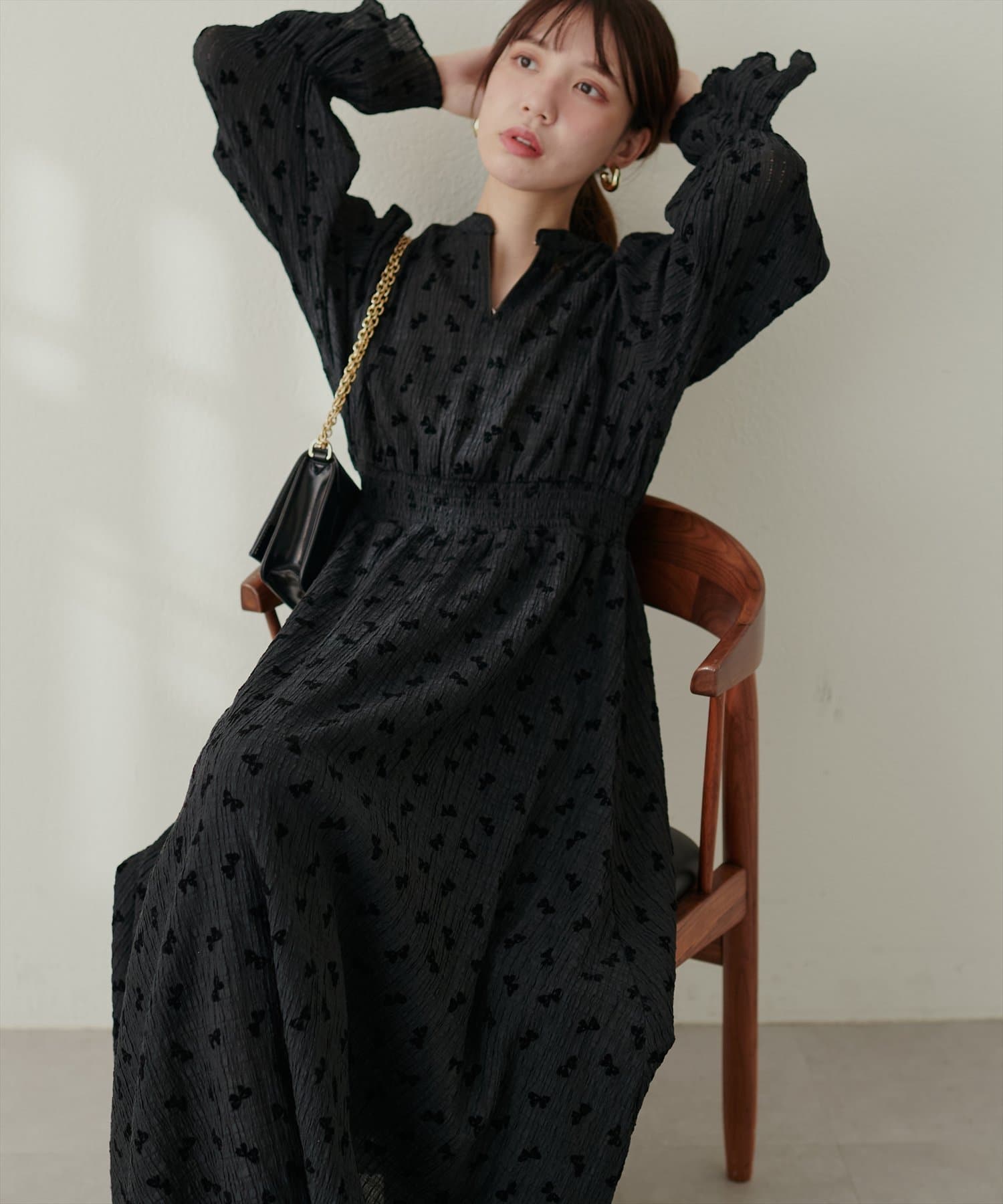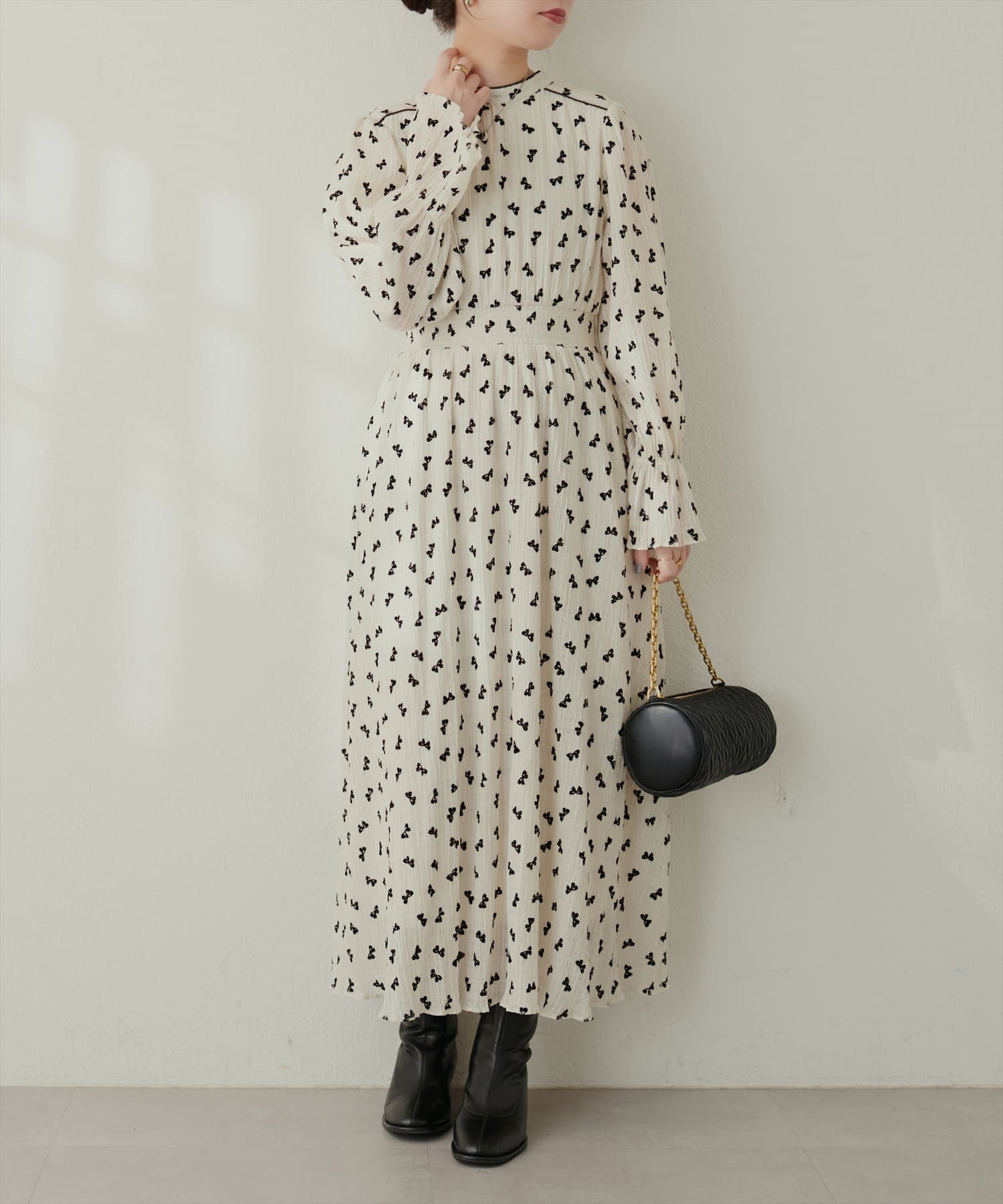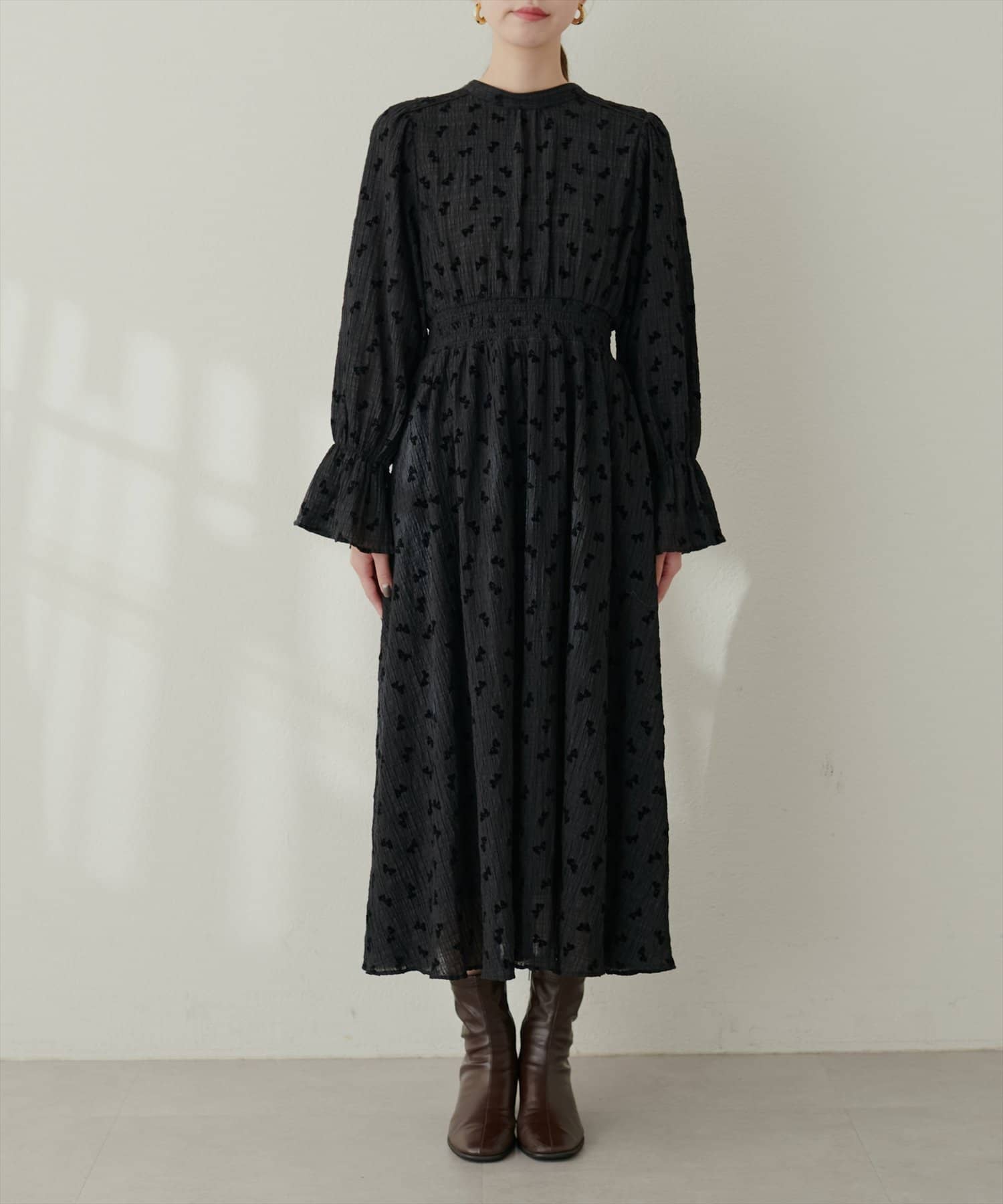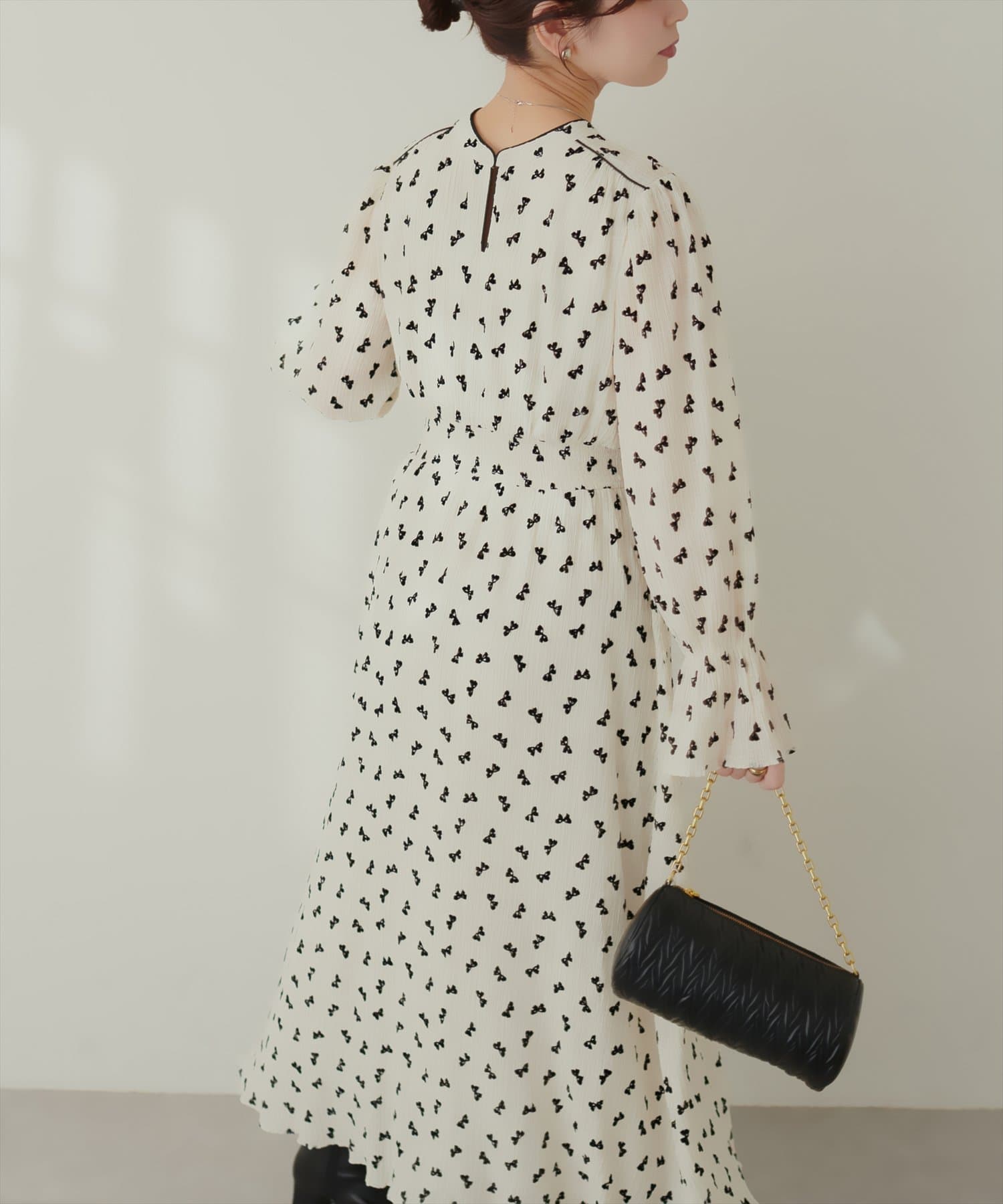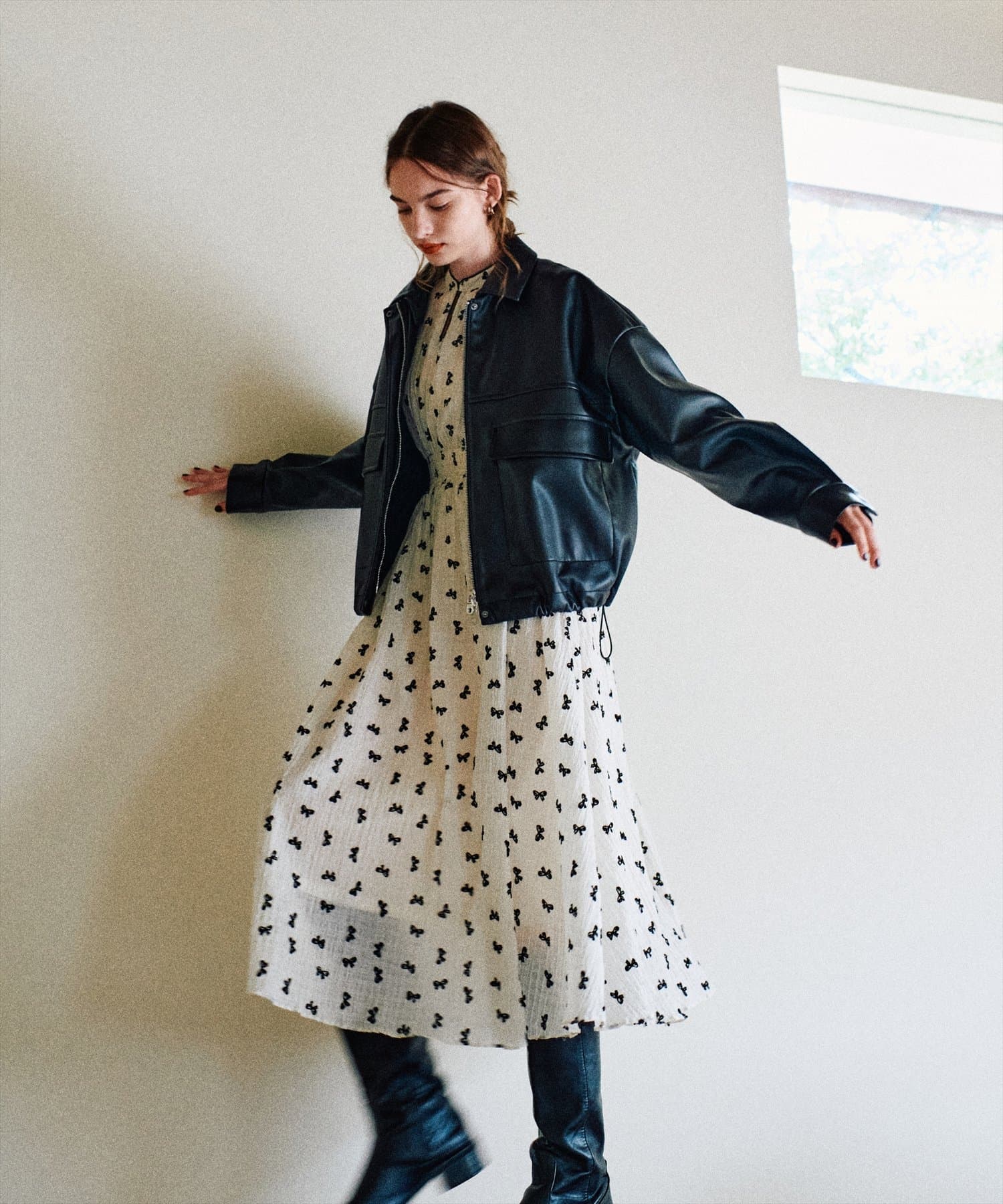 さり気なくも可愛らしさのあるリボン刺繍が施された清楚な印象の一枚