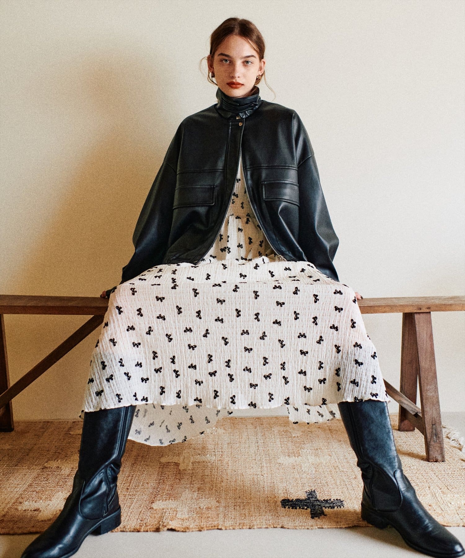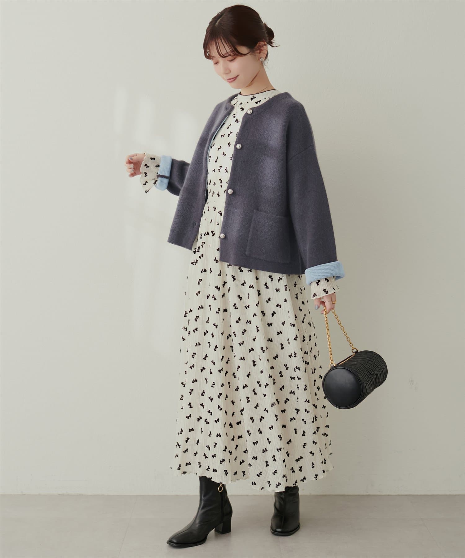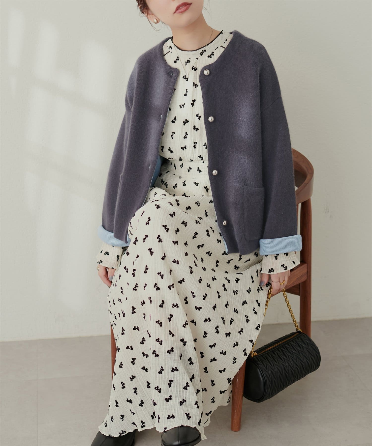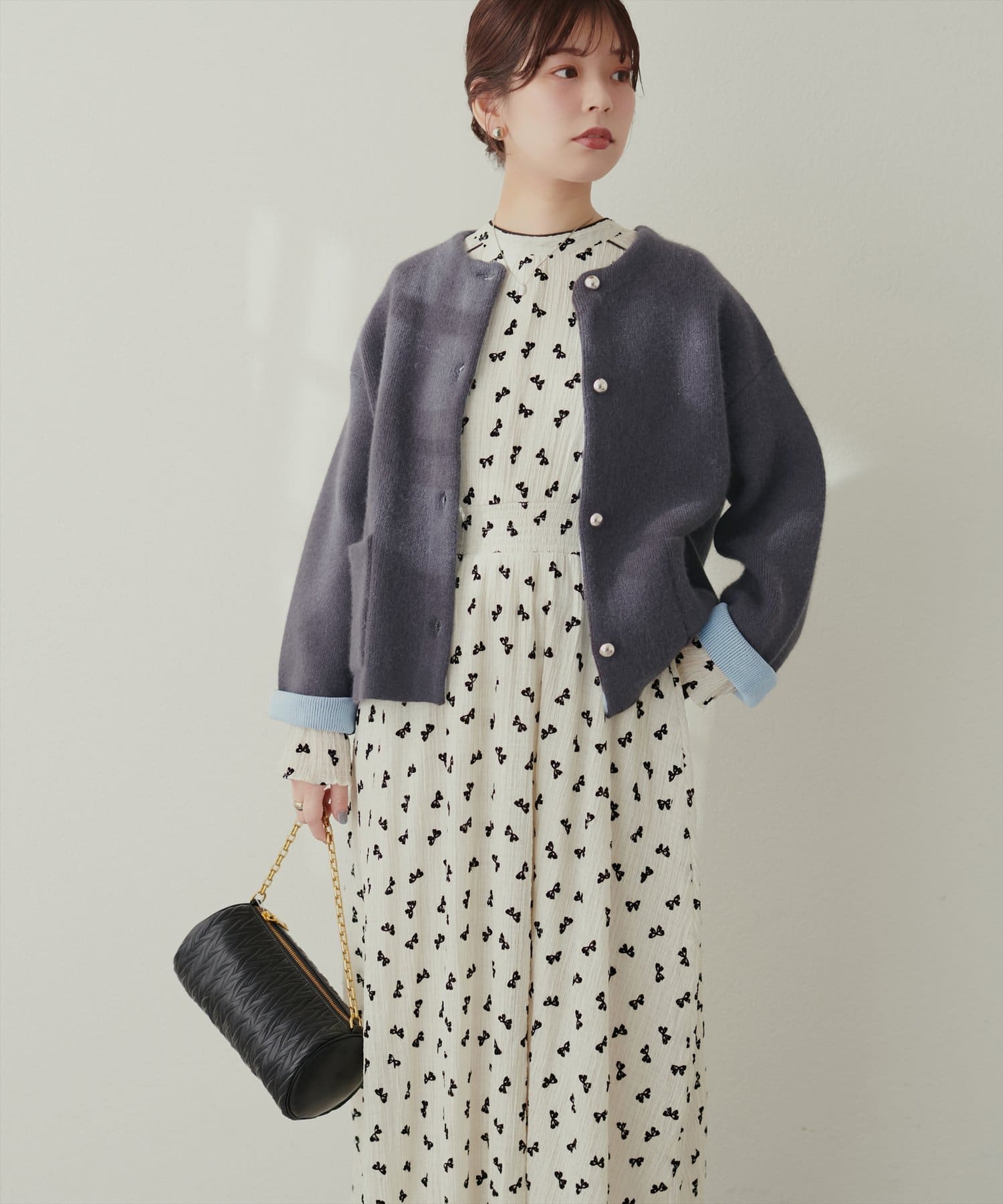 ニットカーディガンやジャケットを羽織って頂くのもおすすめです。