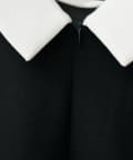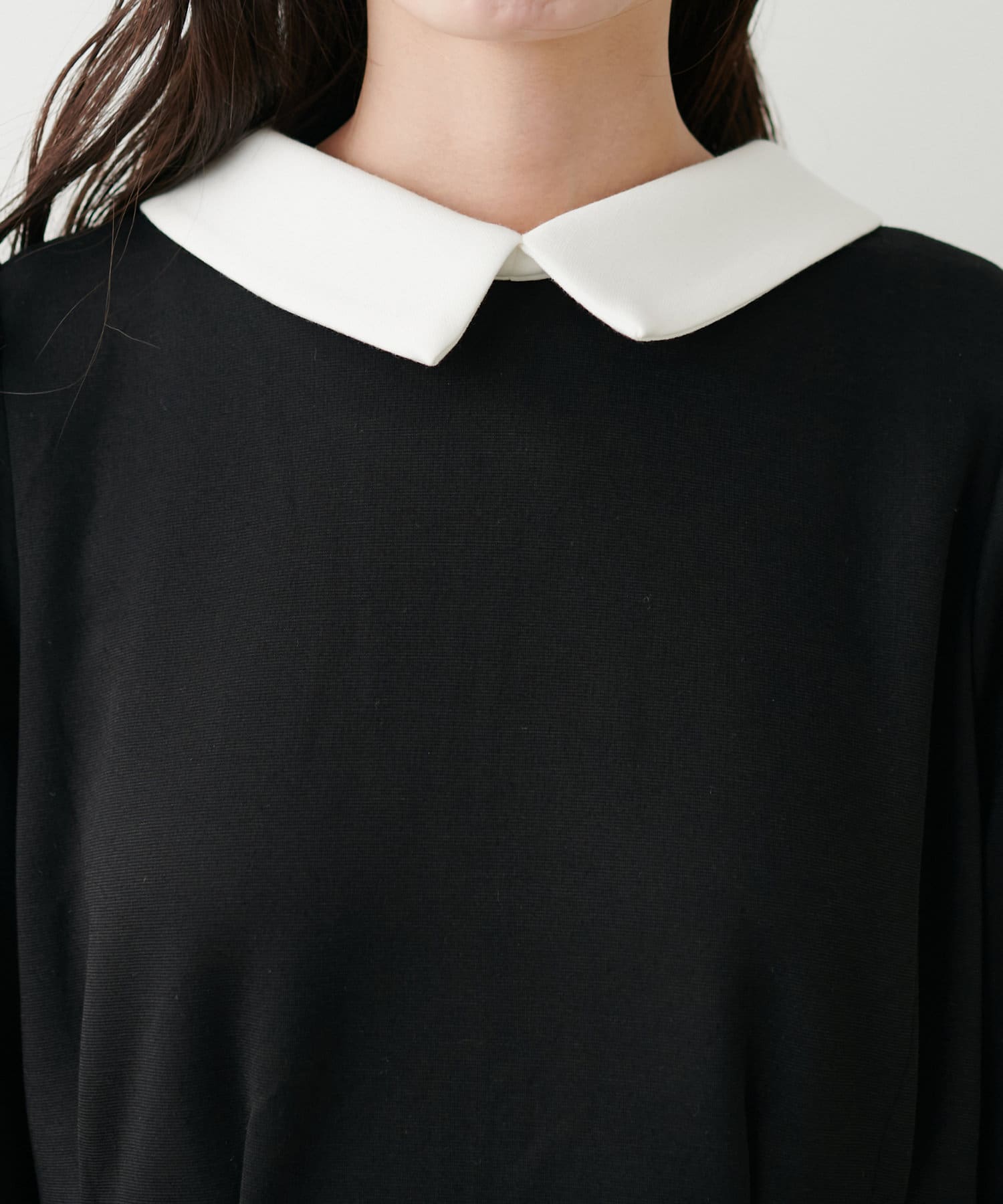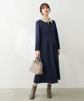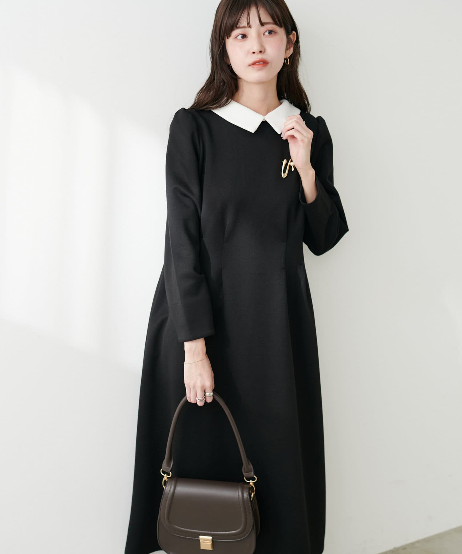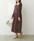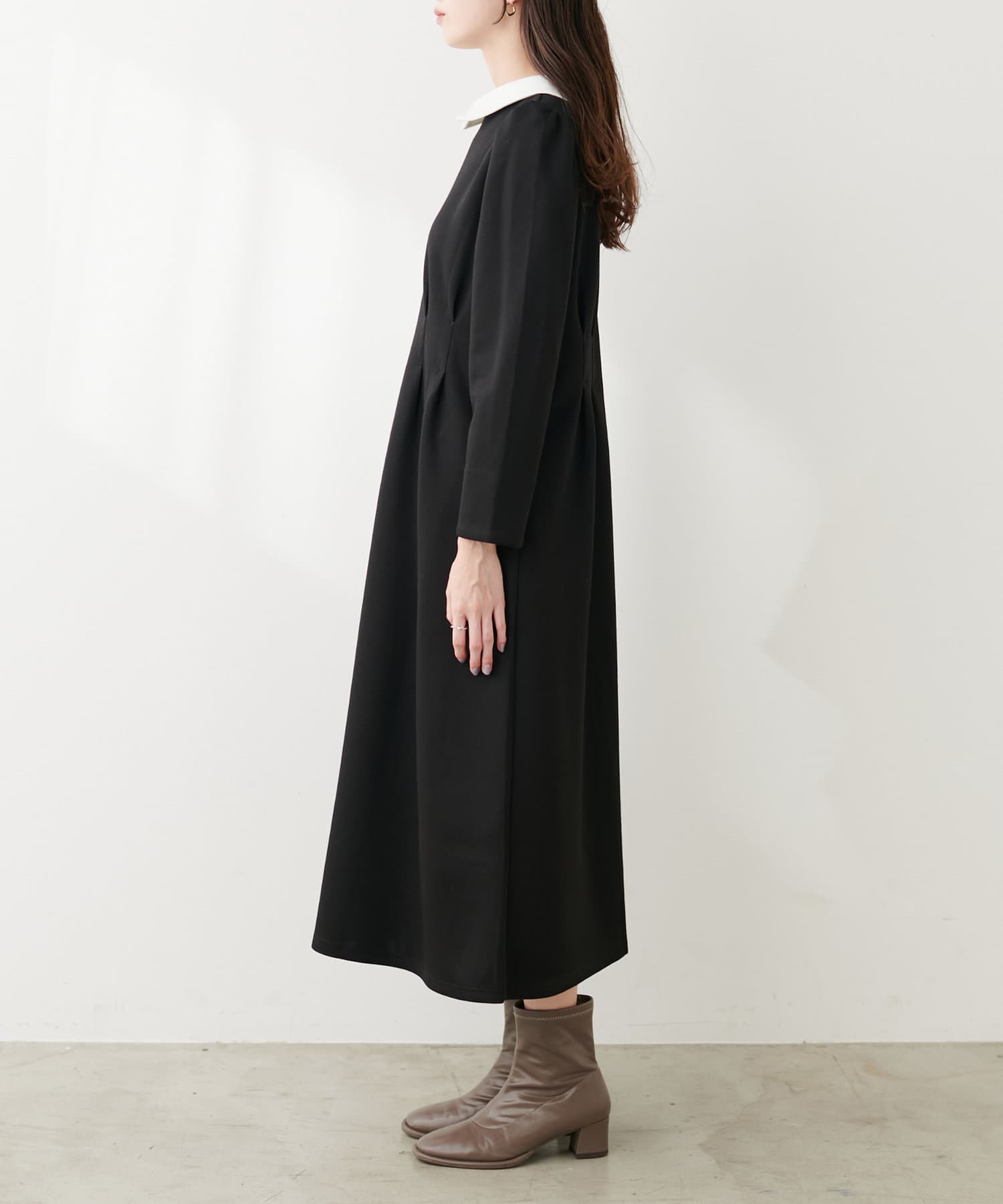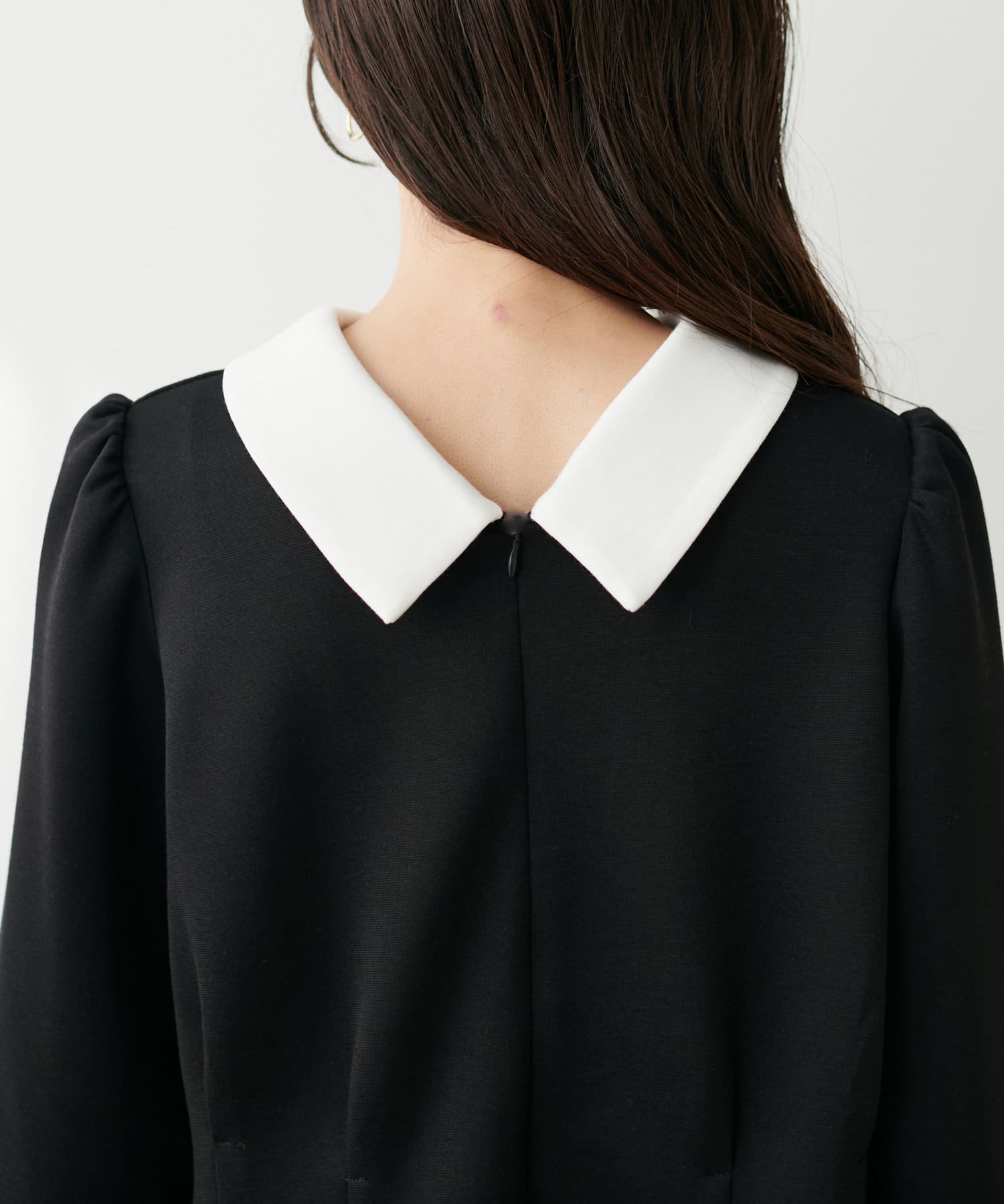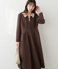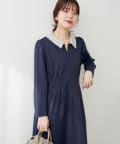 配色の衿や肩のギャザーが大人フェミニンなワンピース。