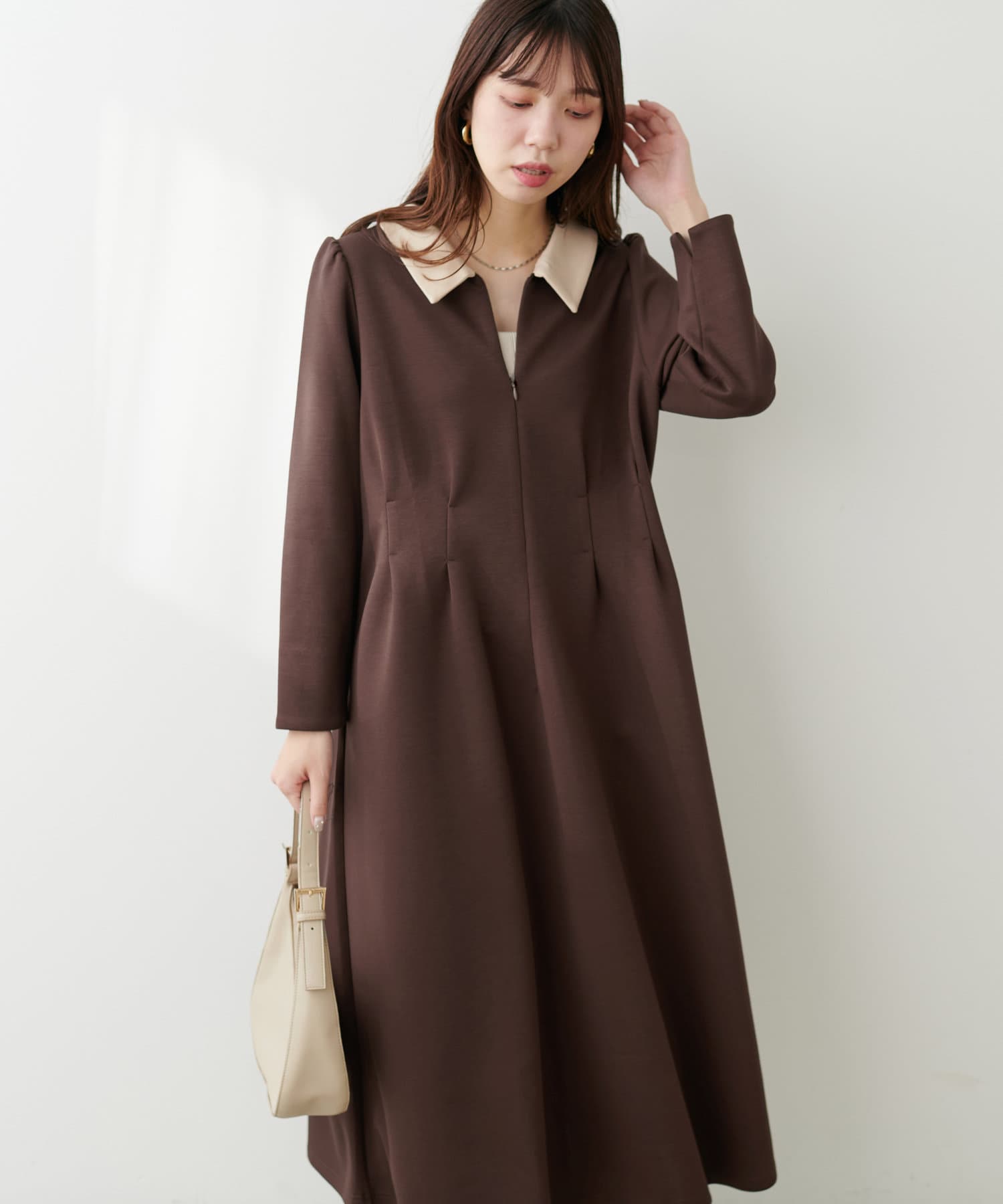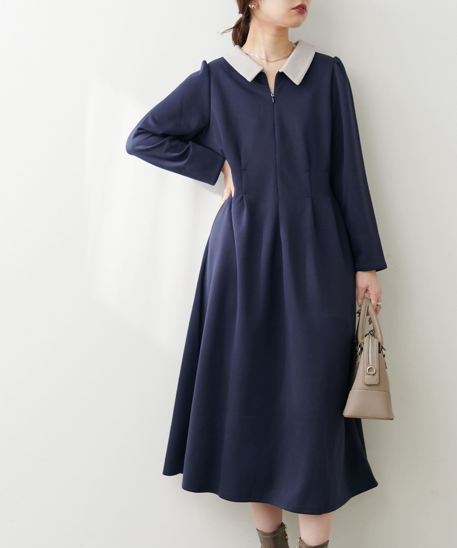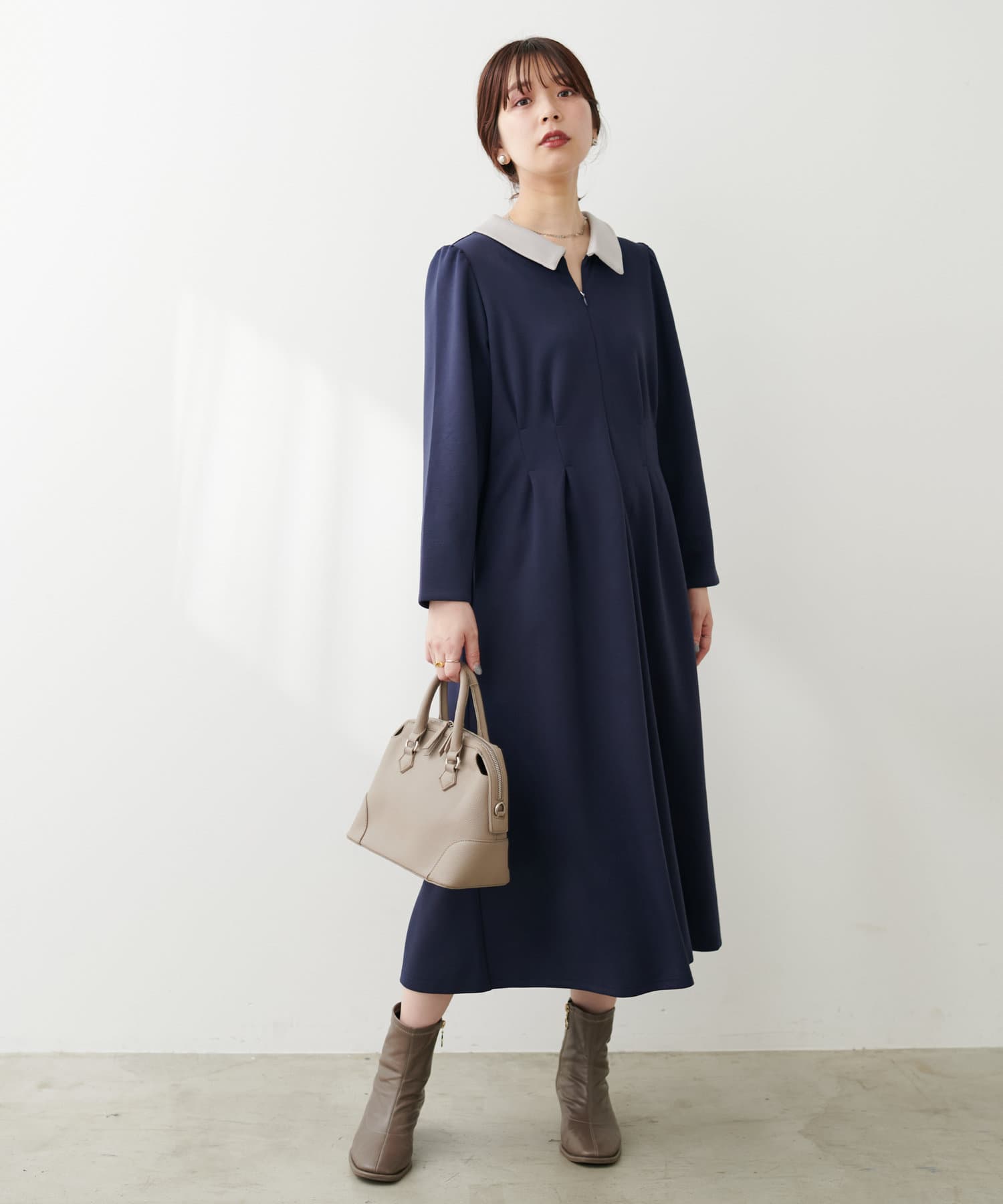 WEB限定 /【mamamo】配色衿ポンチワンピース