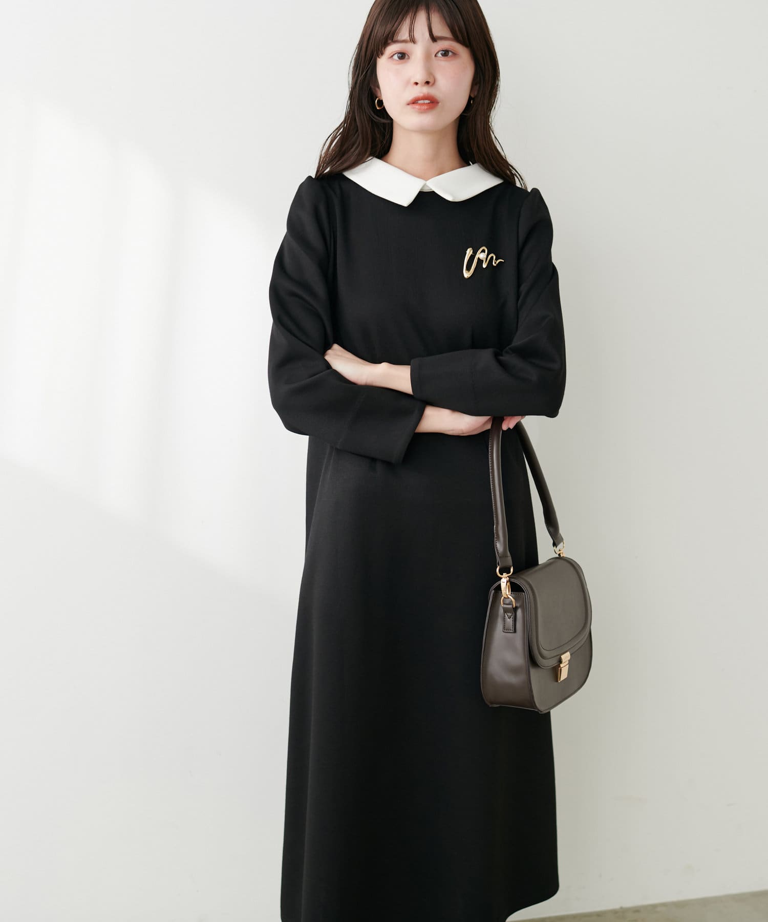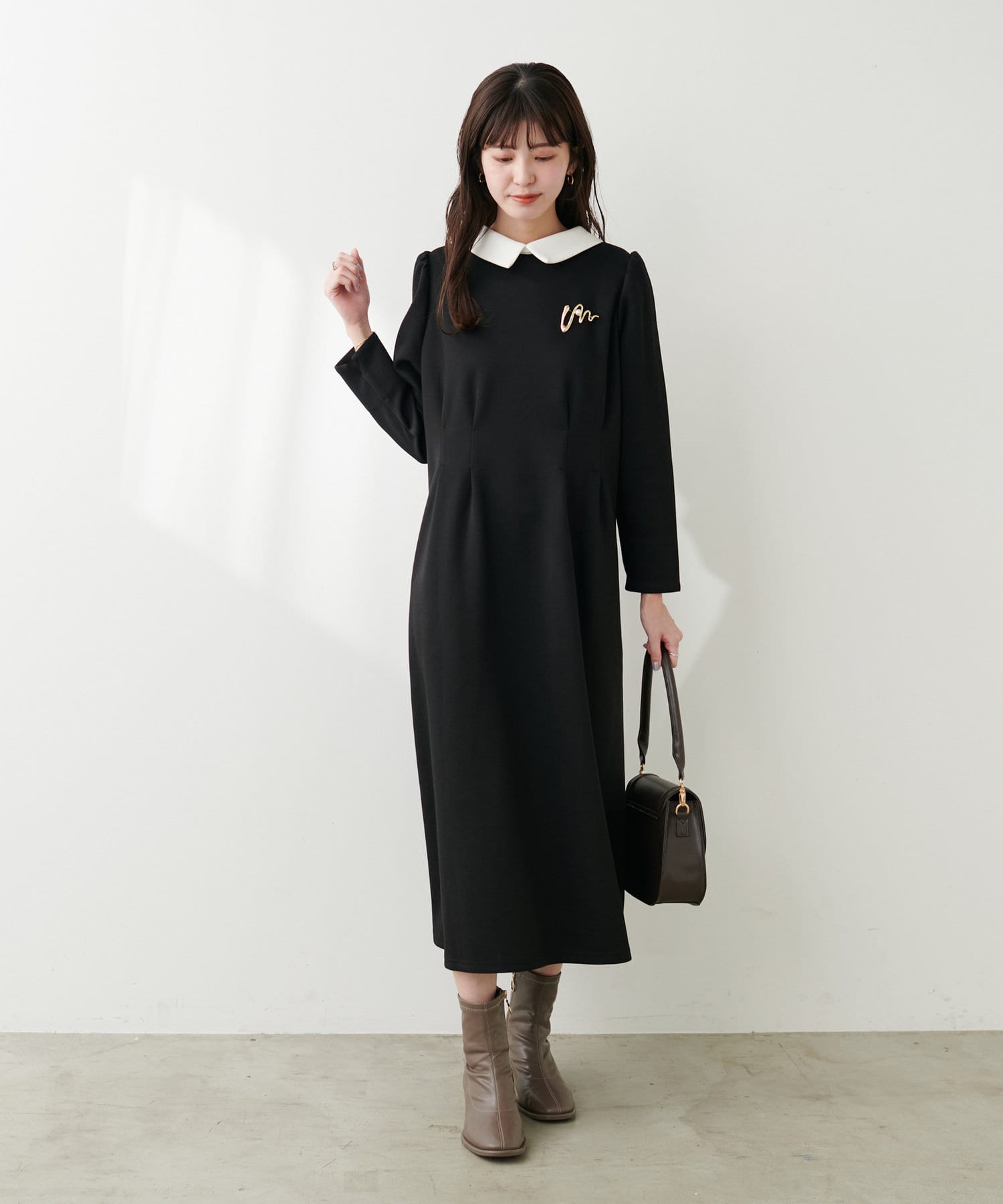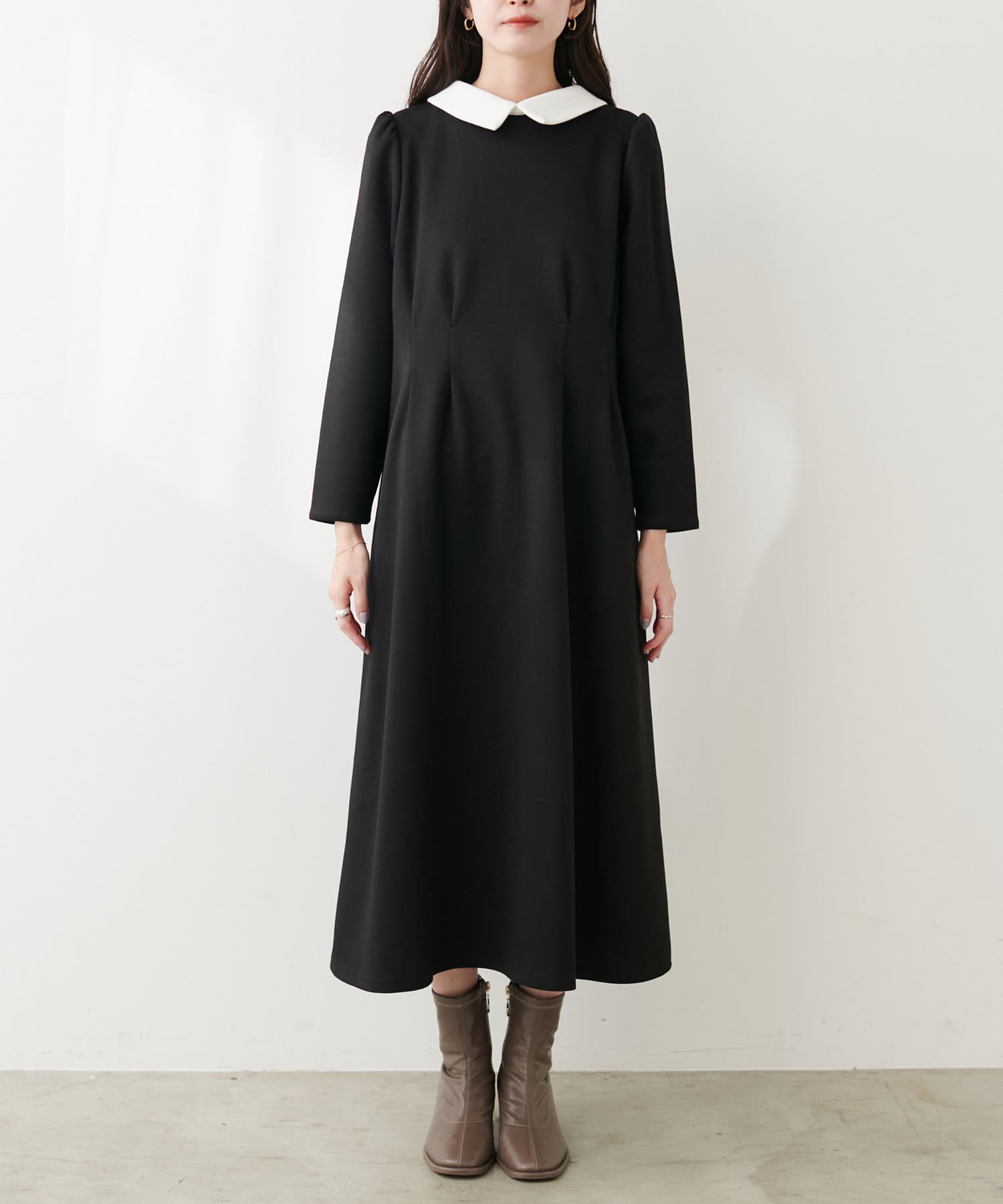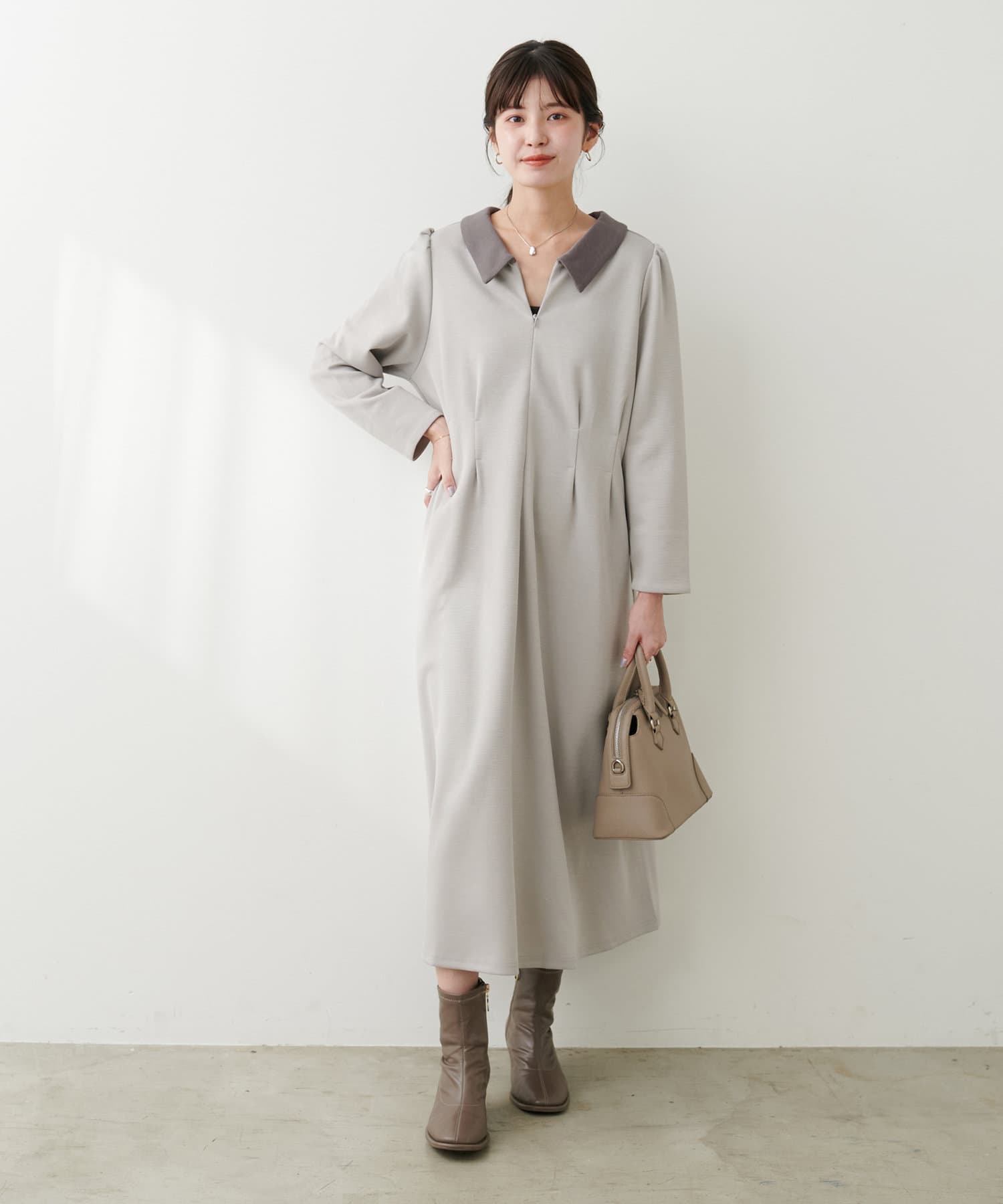 WEB限定 /【mamamo】配色衿ポンチワンピース