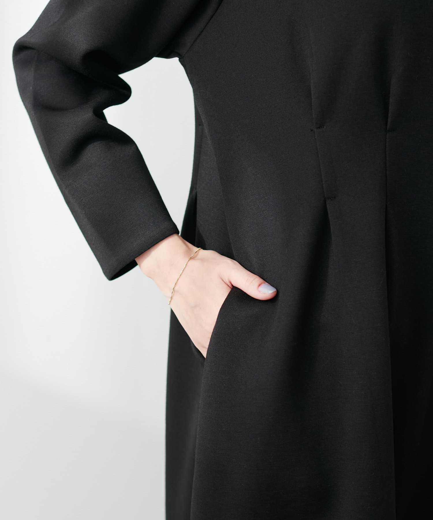 ウエストに施されたタックが、体のラインを優しくカバーしながらスタイルアップを叶えてくれます。