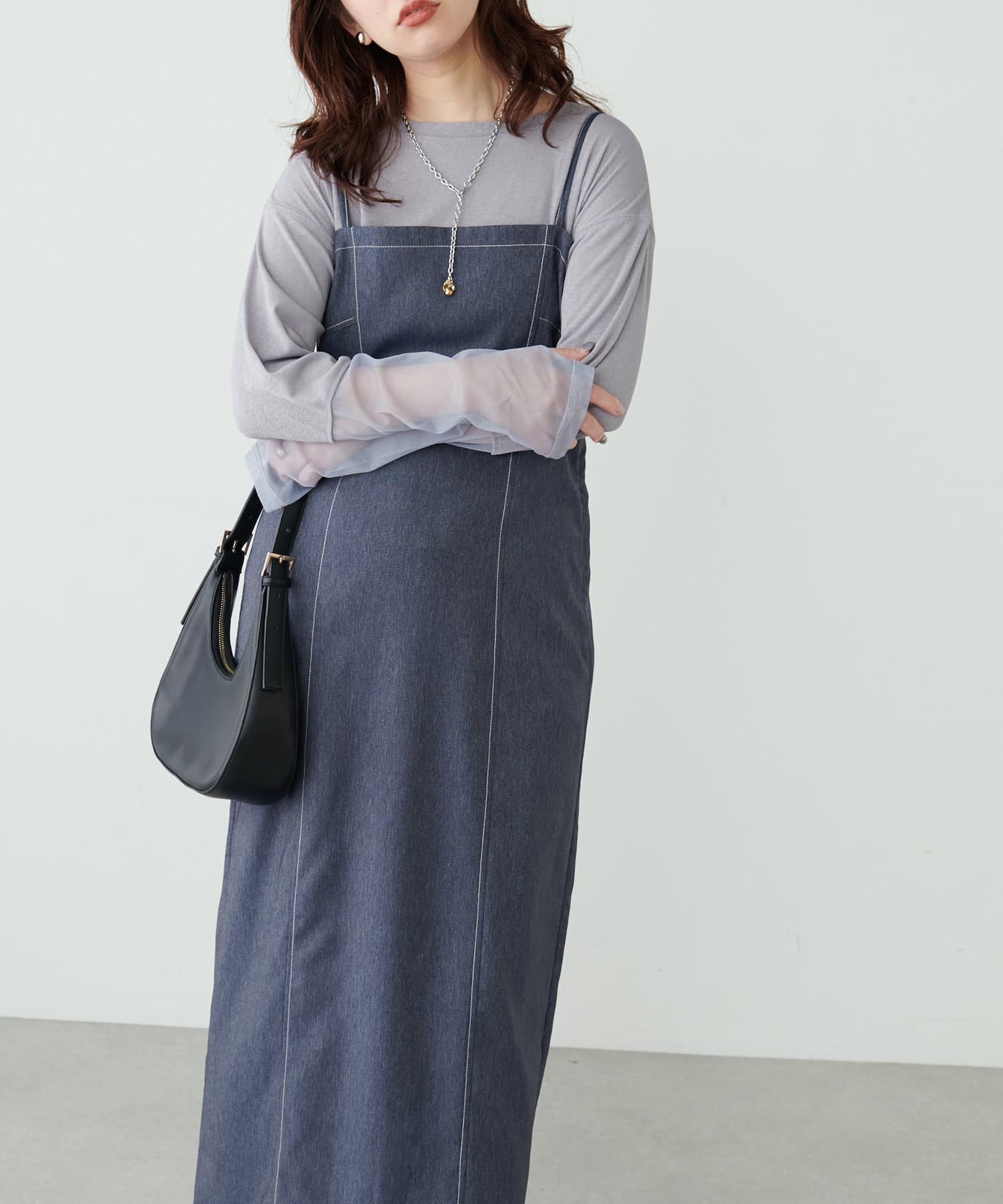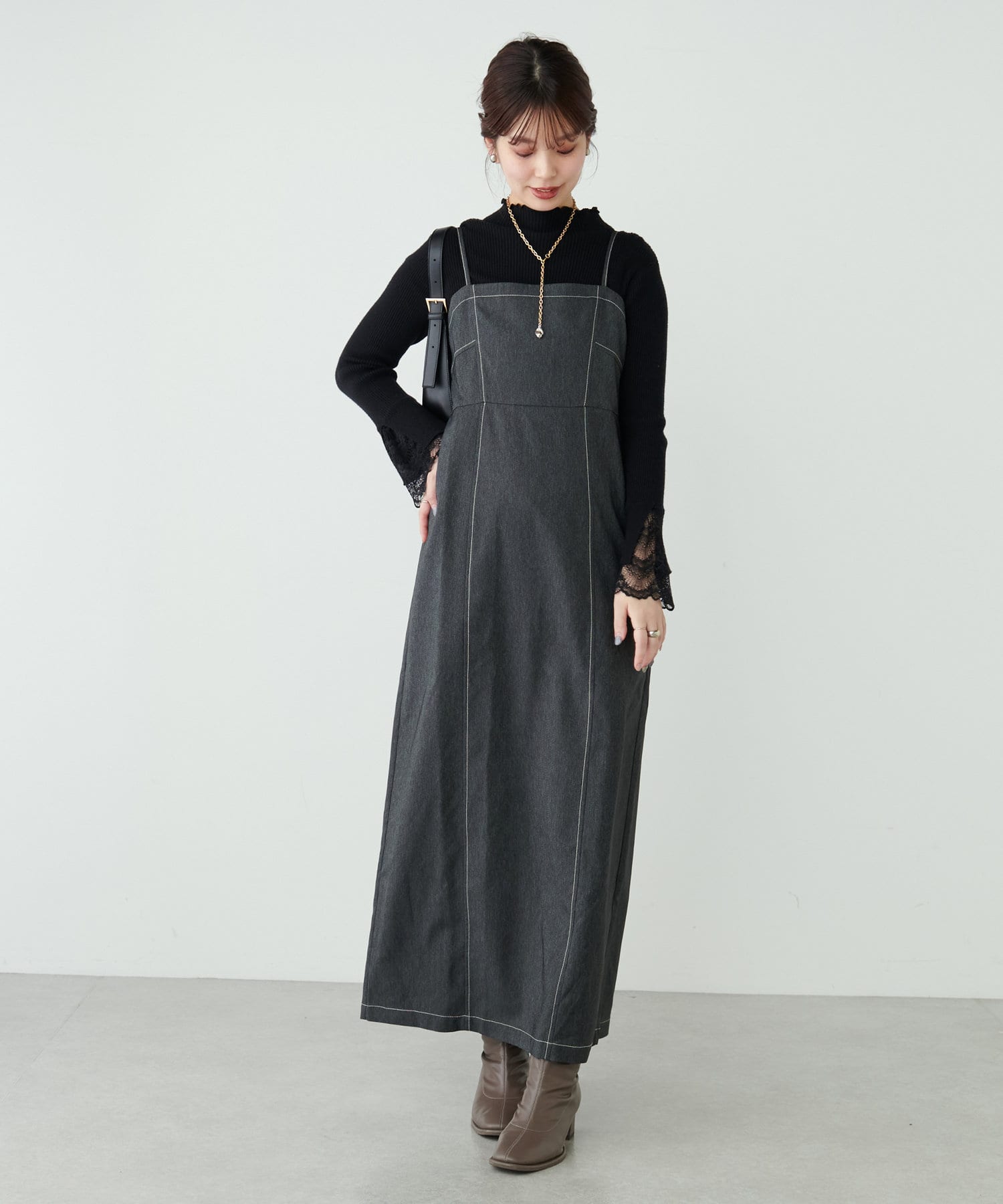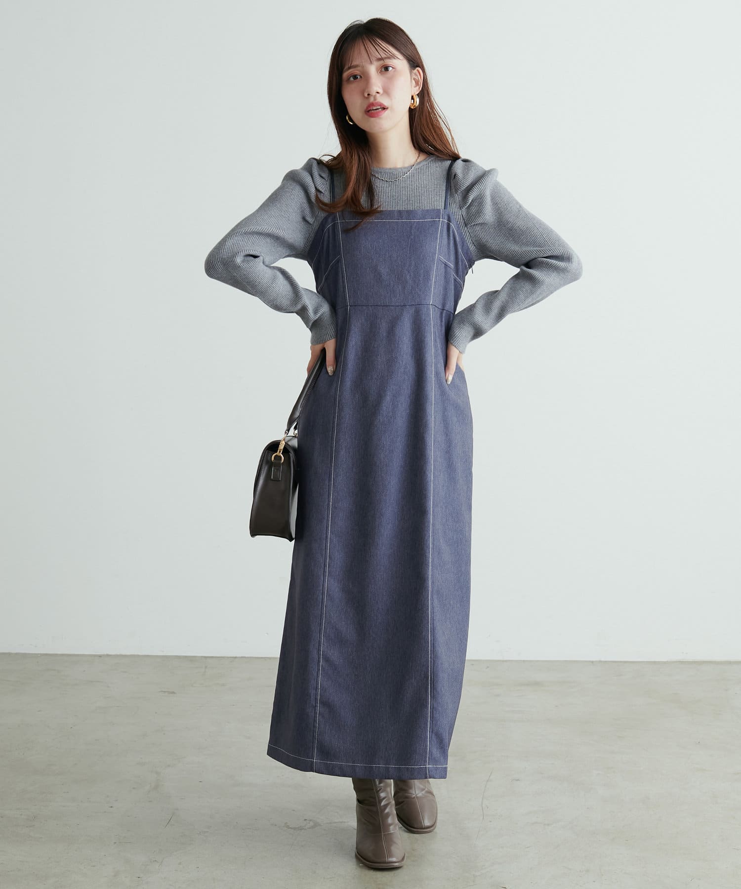 デニム風ビスチェキャミワンピース