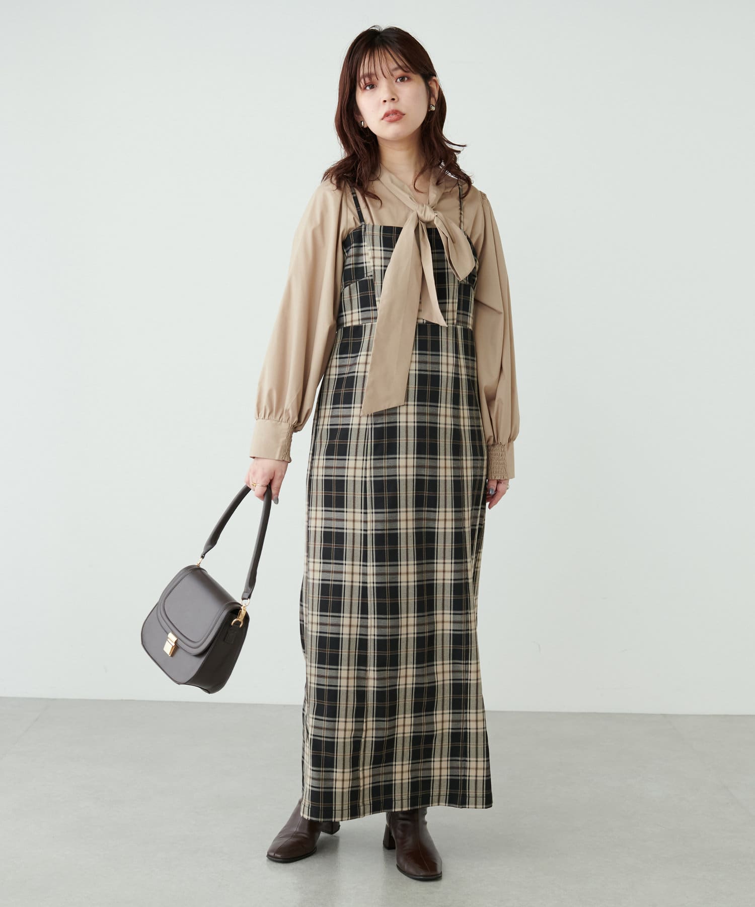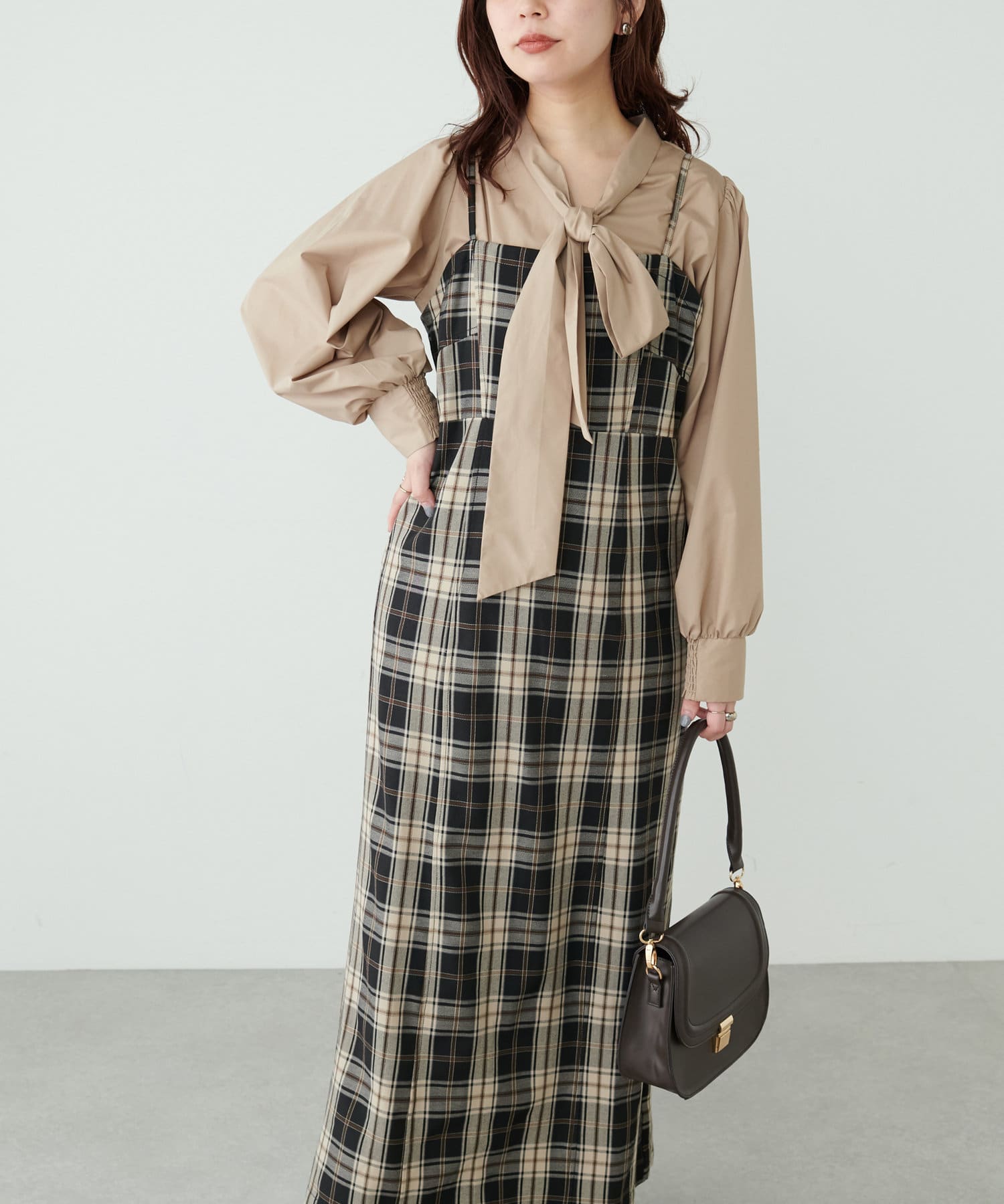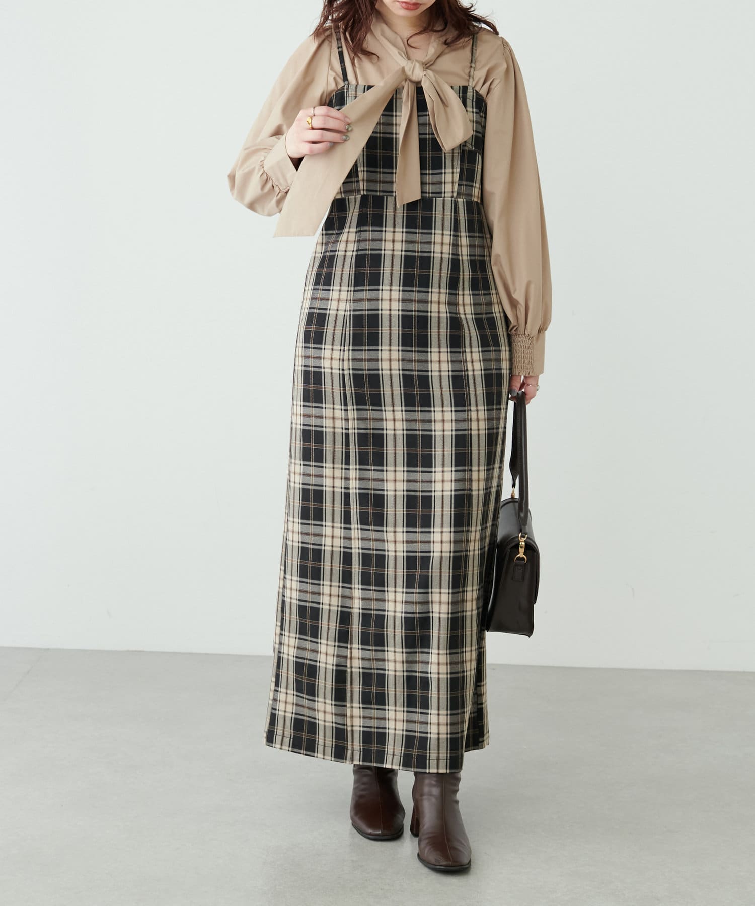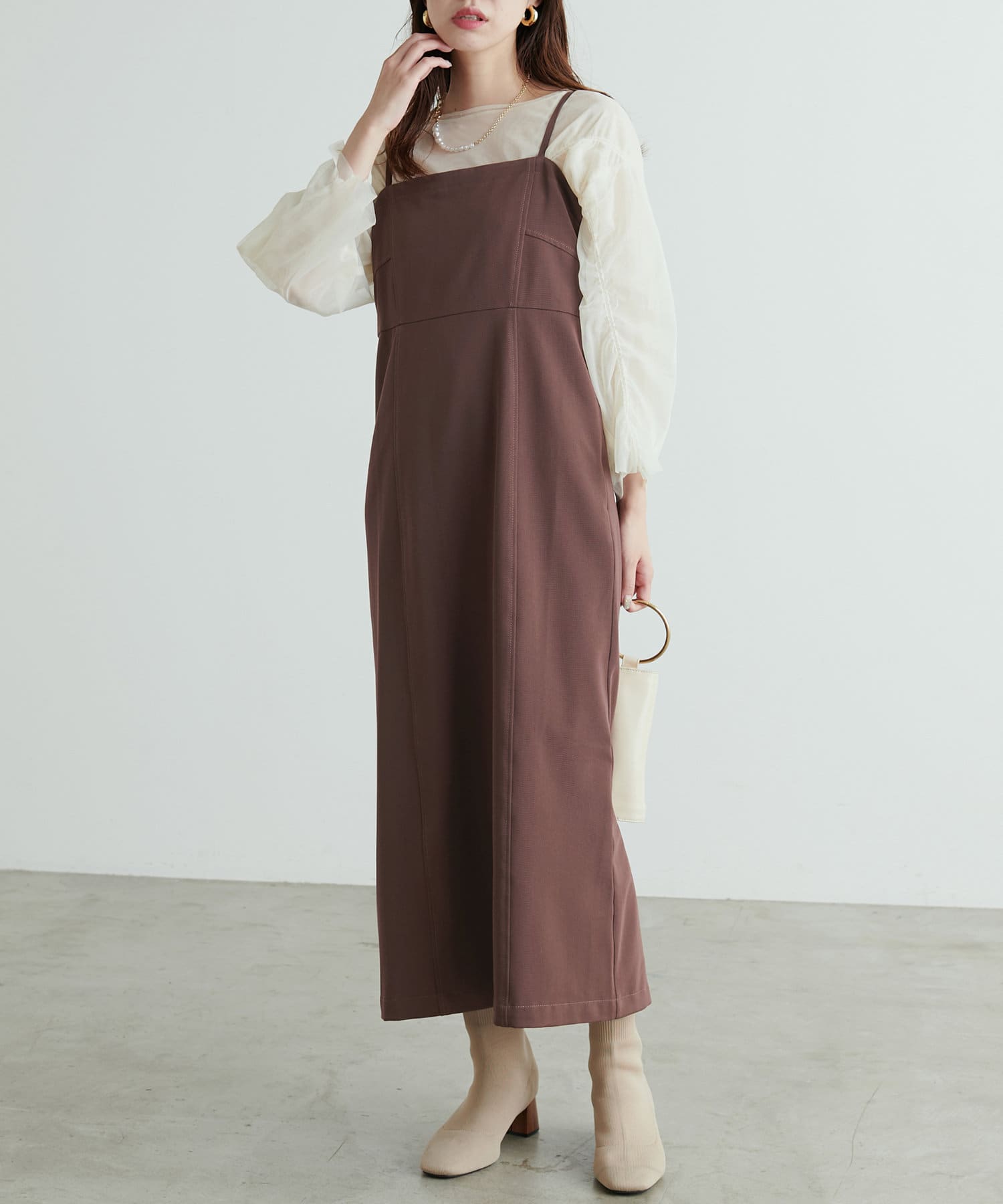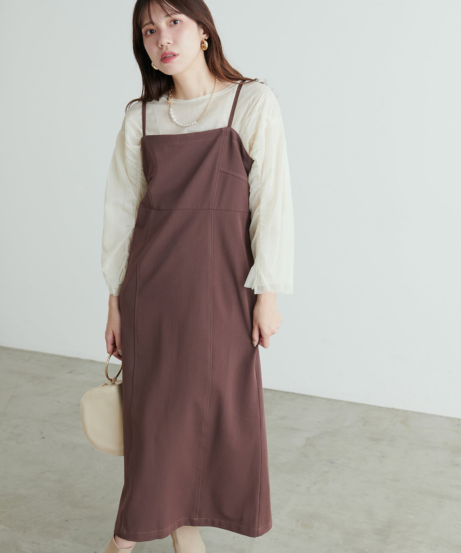 コンパクトな身頃にストンと落ちるスカートの美しいシルエットが魅力のキャミワンピース。