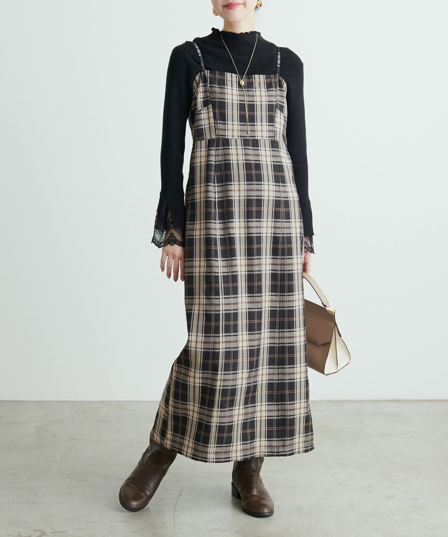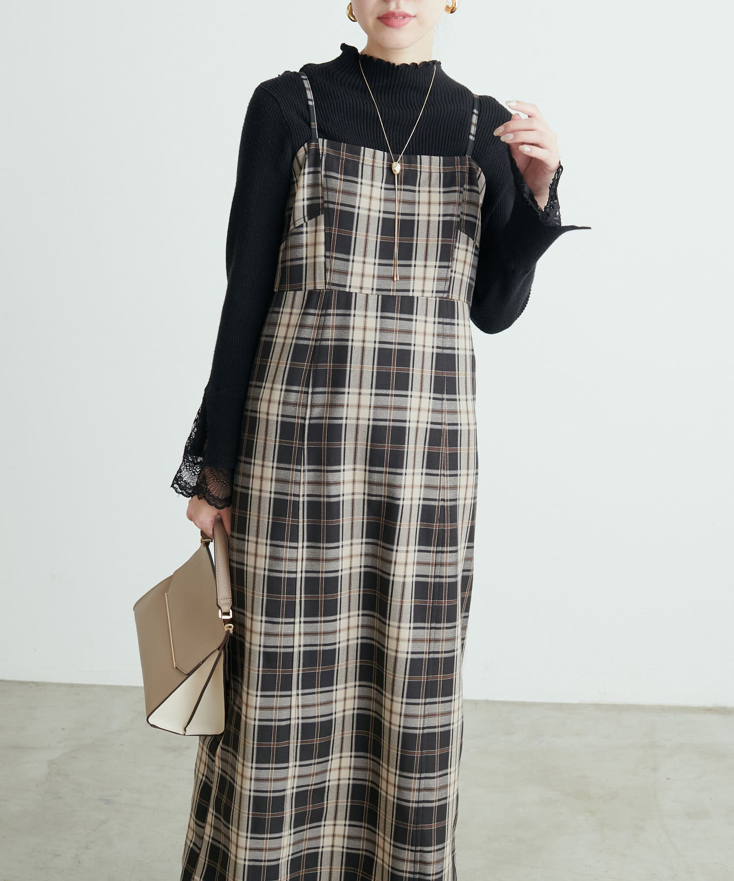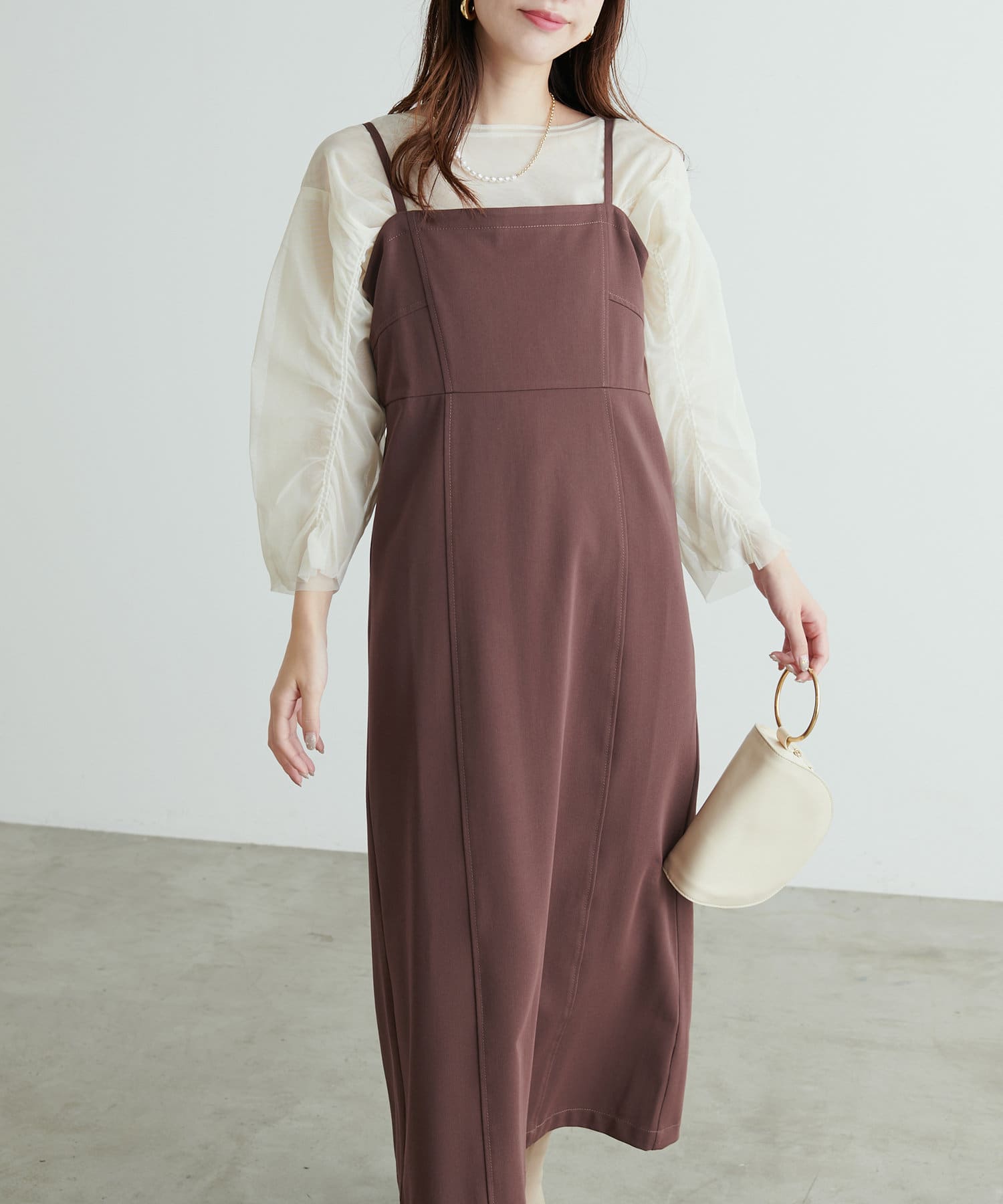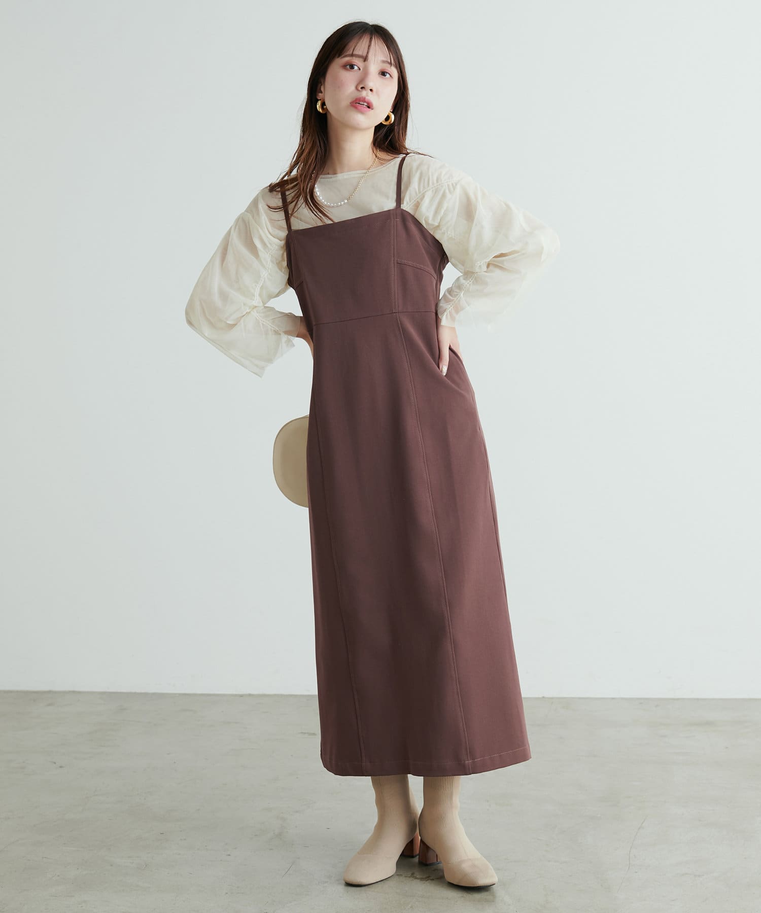 きれいなシルエットの大人可愛いキャミワンピース
