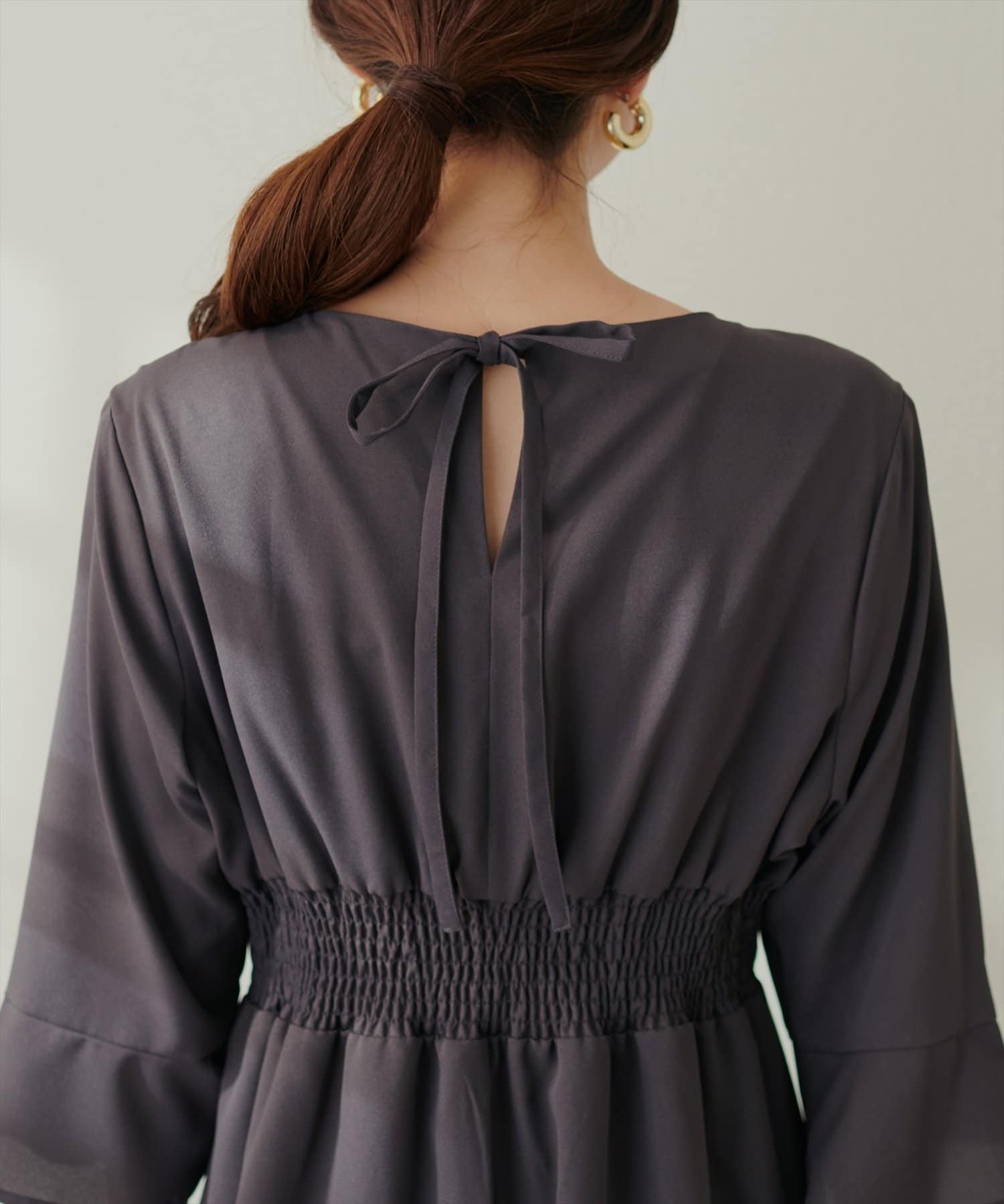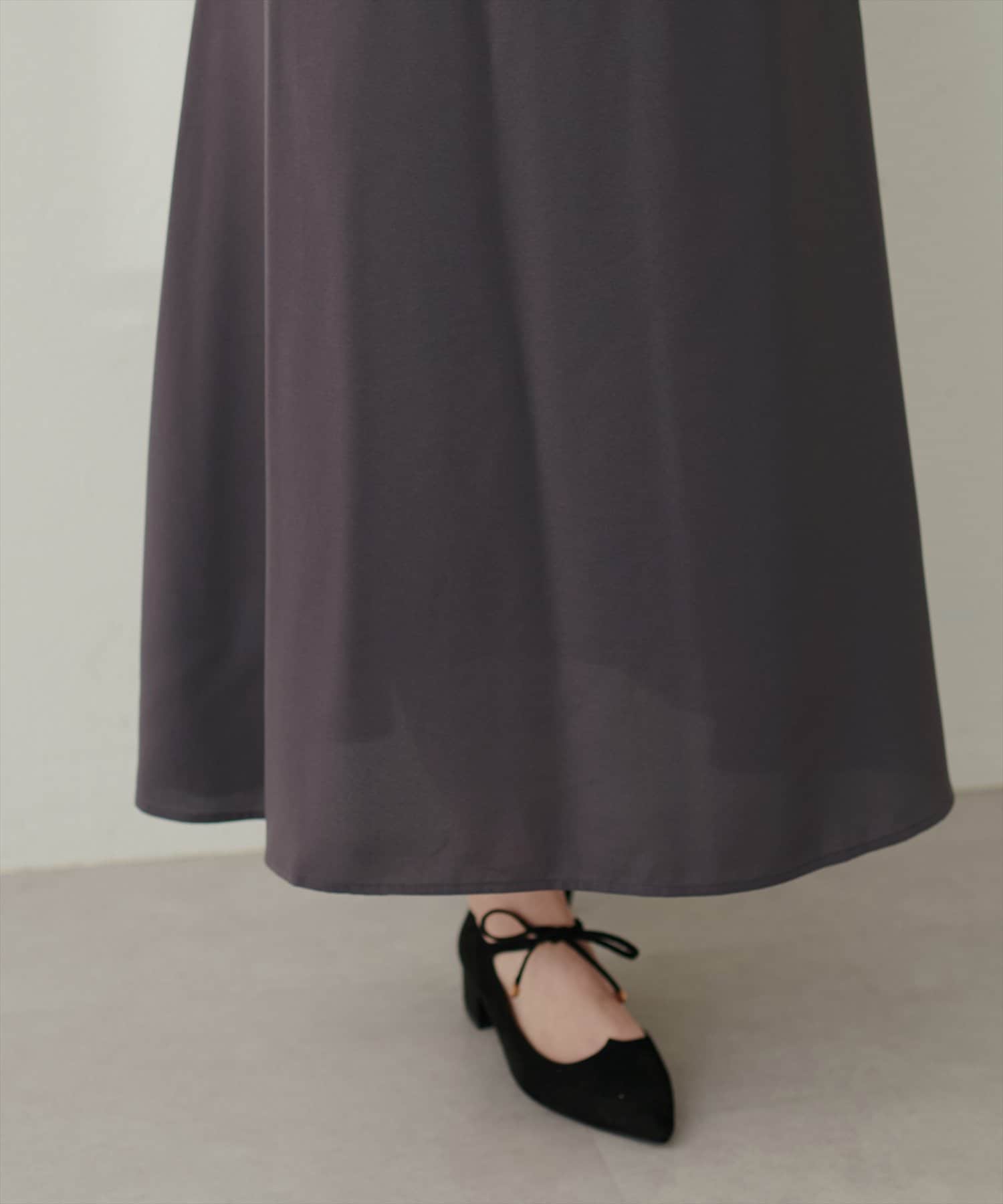 胸下の切り替えしから緩やかに広がるので、体型カバーできるのも嬉しいポイント◎