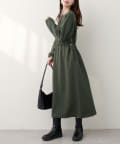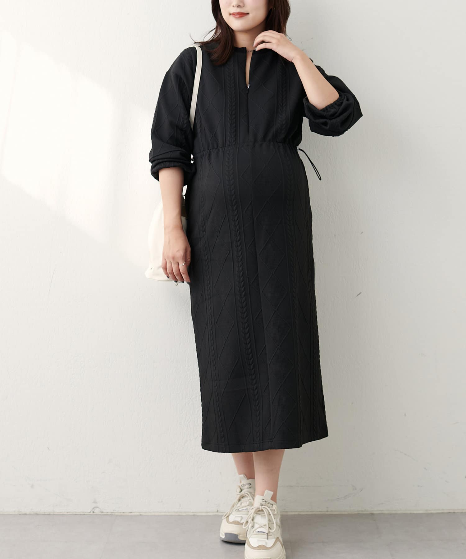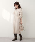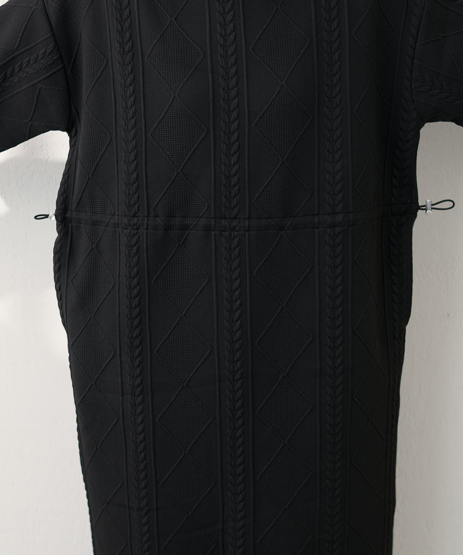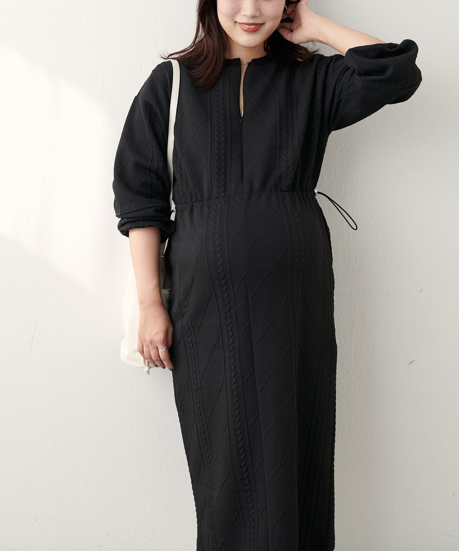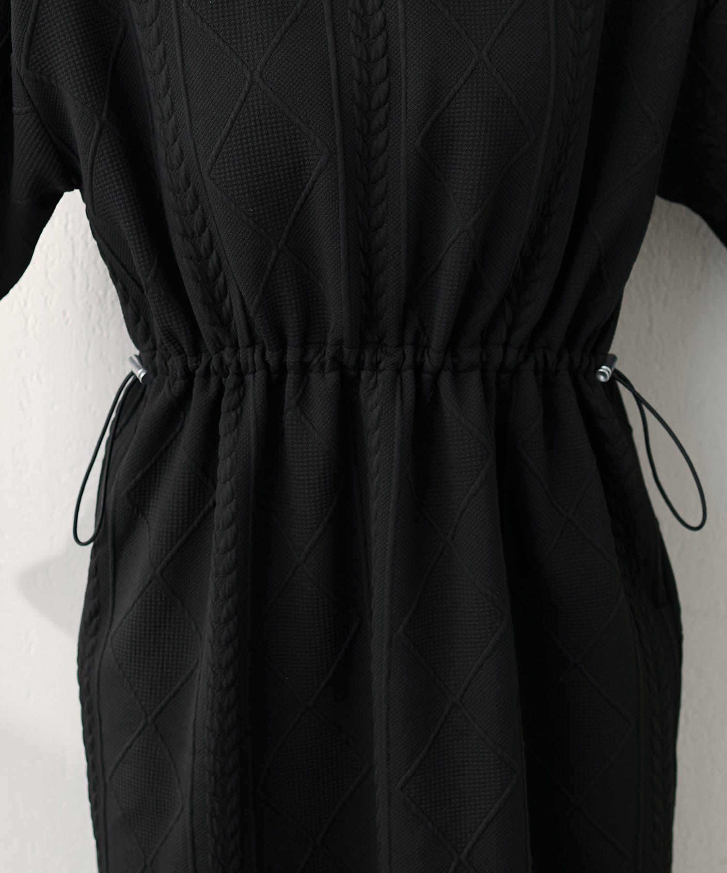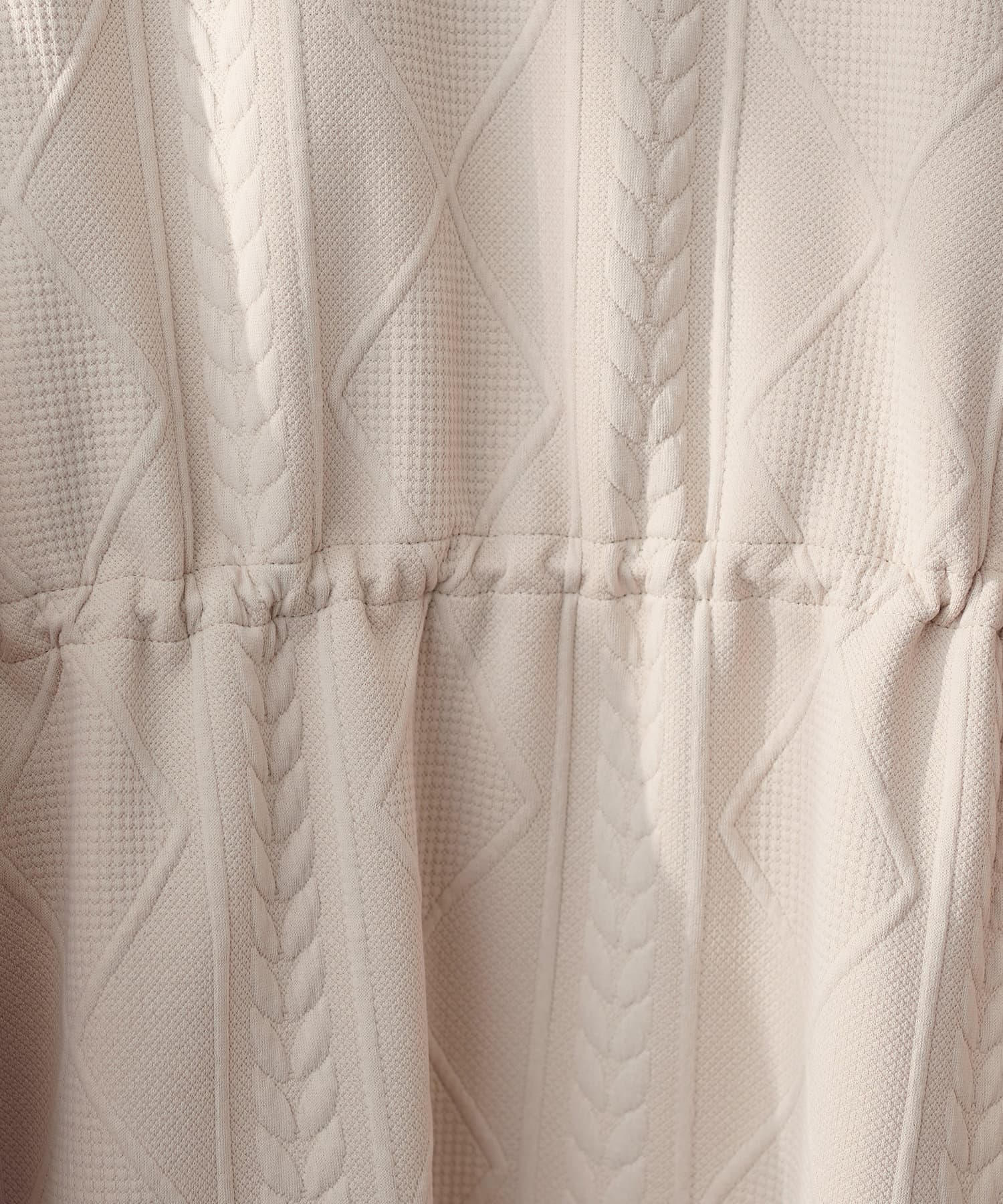 ウエストのドロストデザインと、まるでアランニットのような立体感のある柄がトレンドライクなmamamoのリバイバルワンピース。