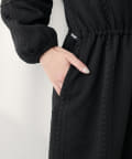 袖口にはゴムが入っており、ファスナーはウエストの切り替え部分まで開くので、脱ぎ着もノンストレスで行えます。