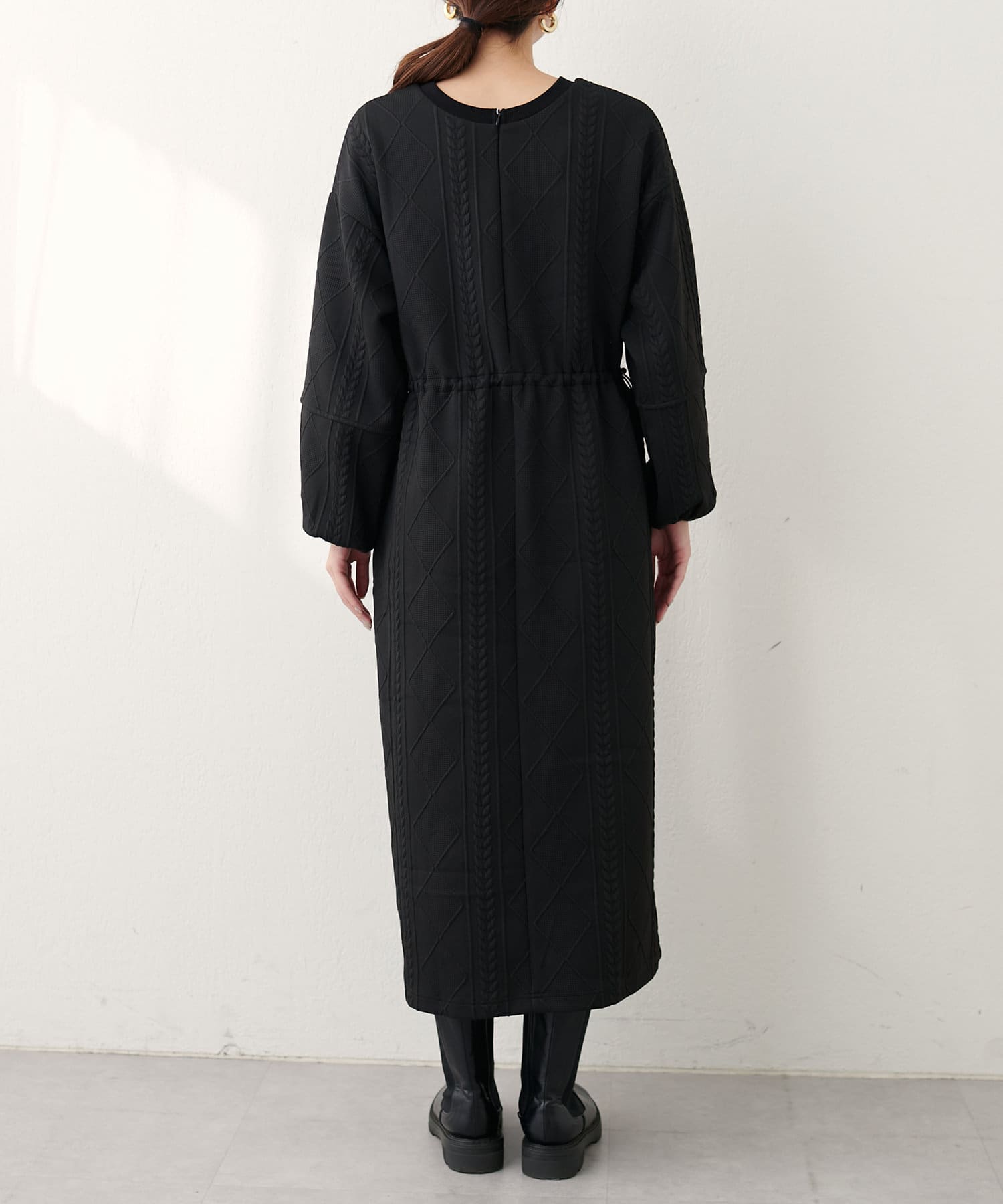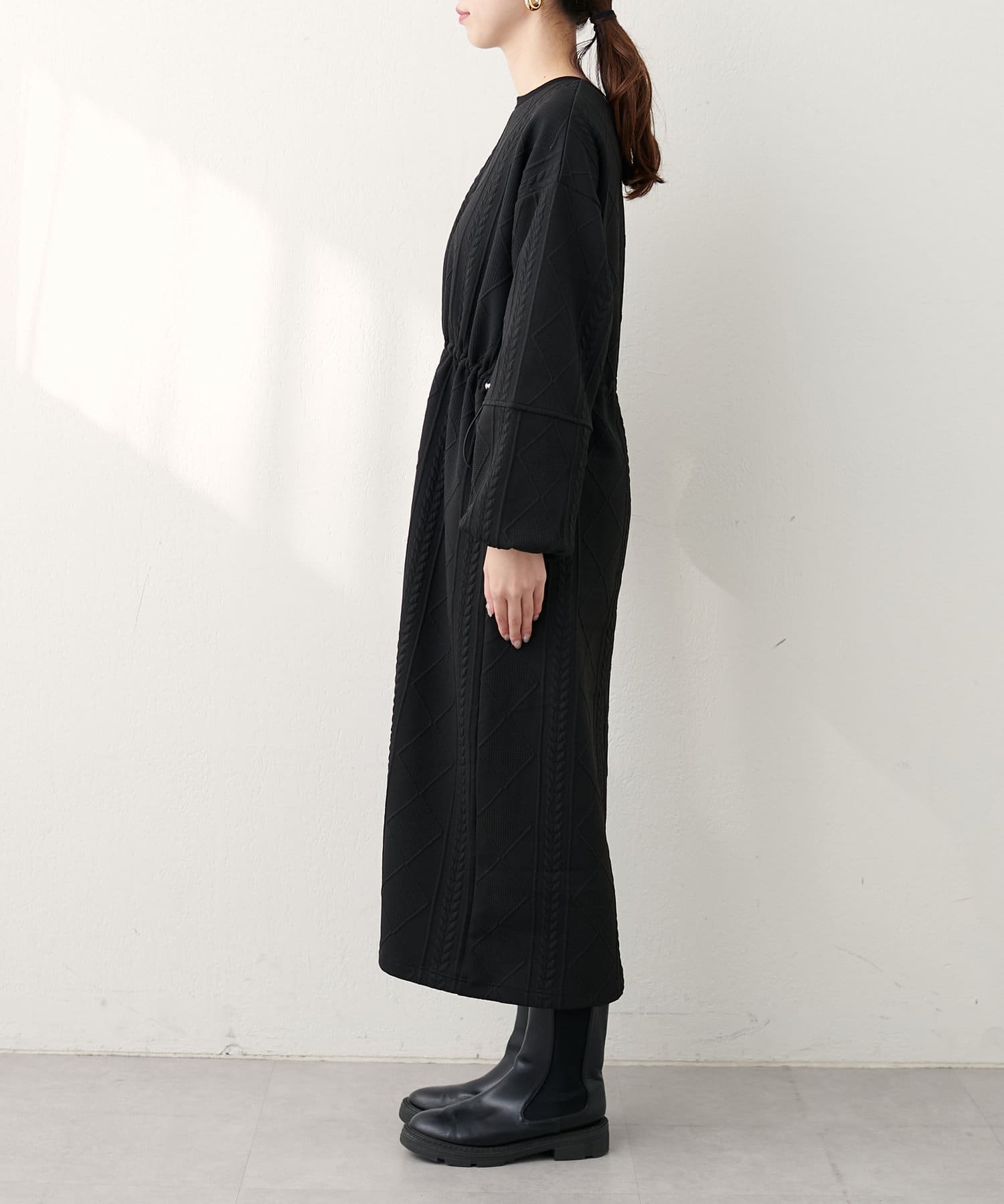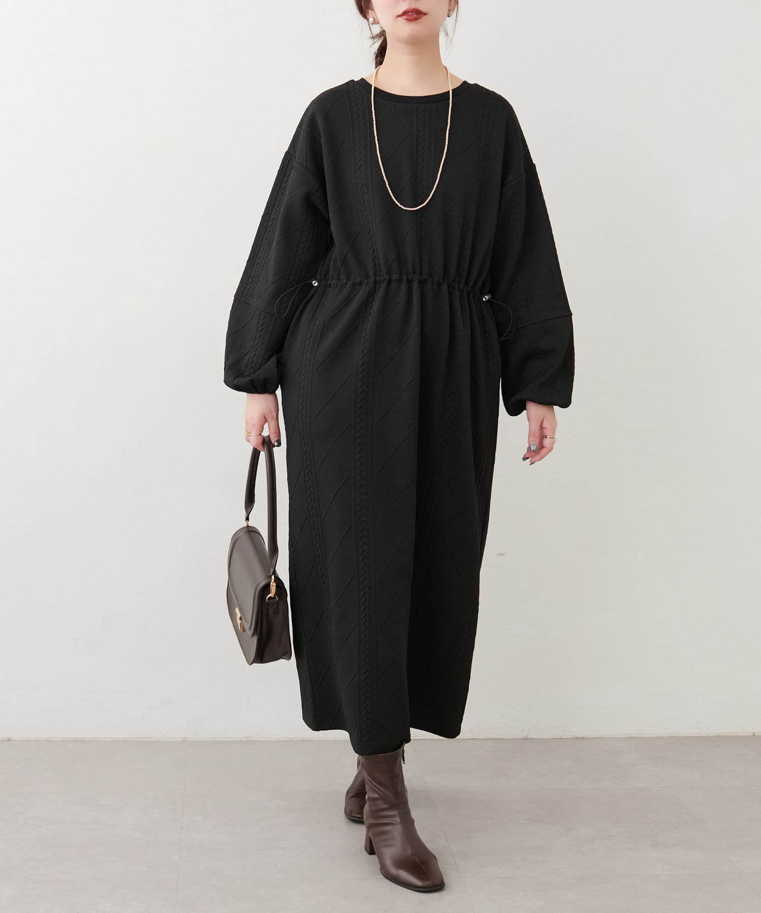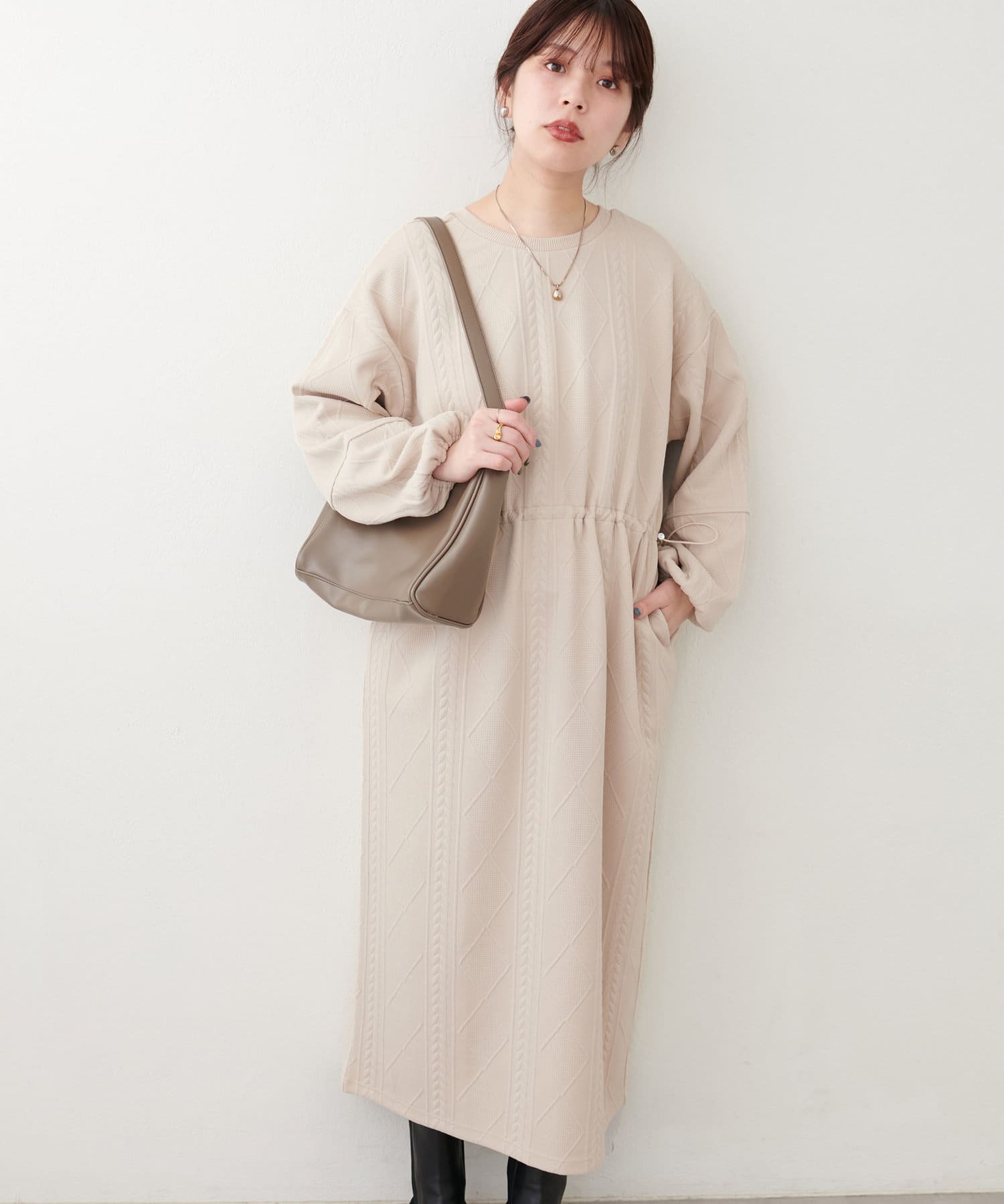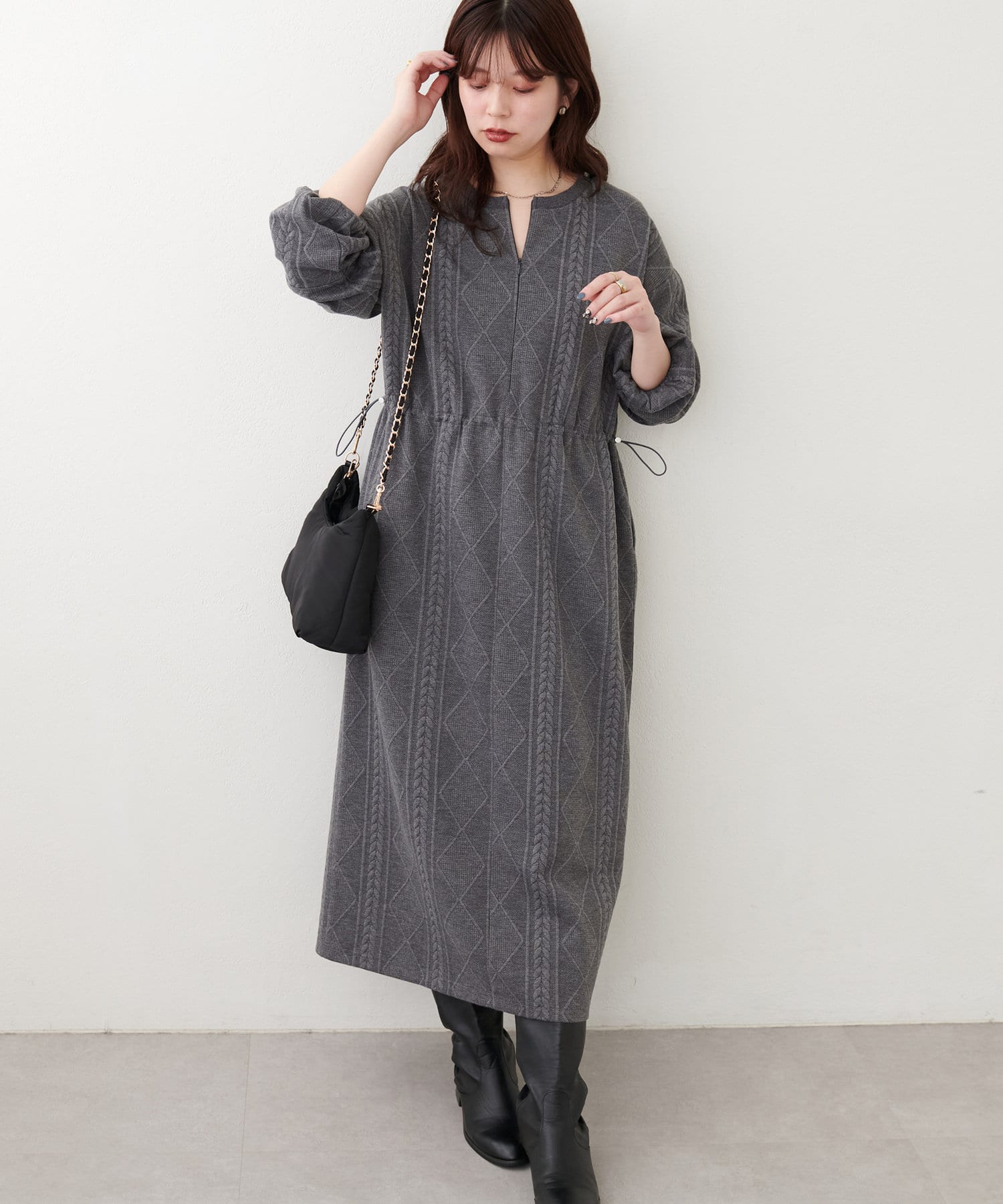 アランニットのような立体感のある柄が特徴的なので、ニットワンピース感覚で着られます。