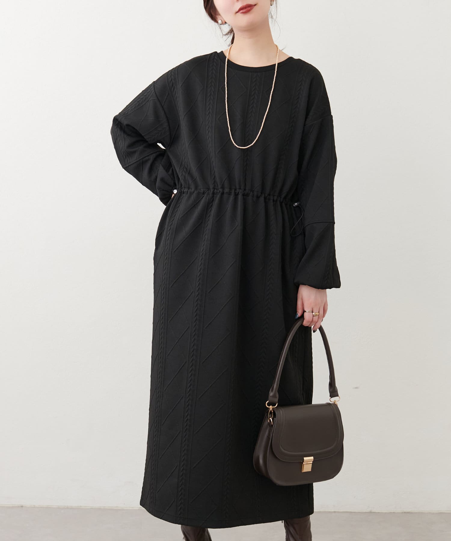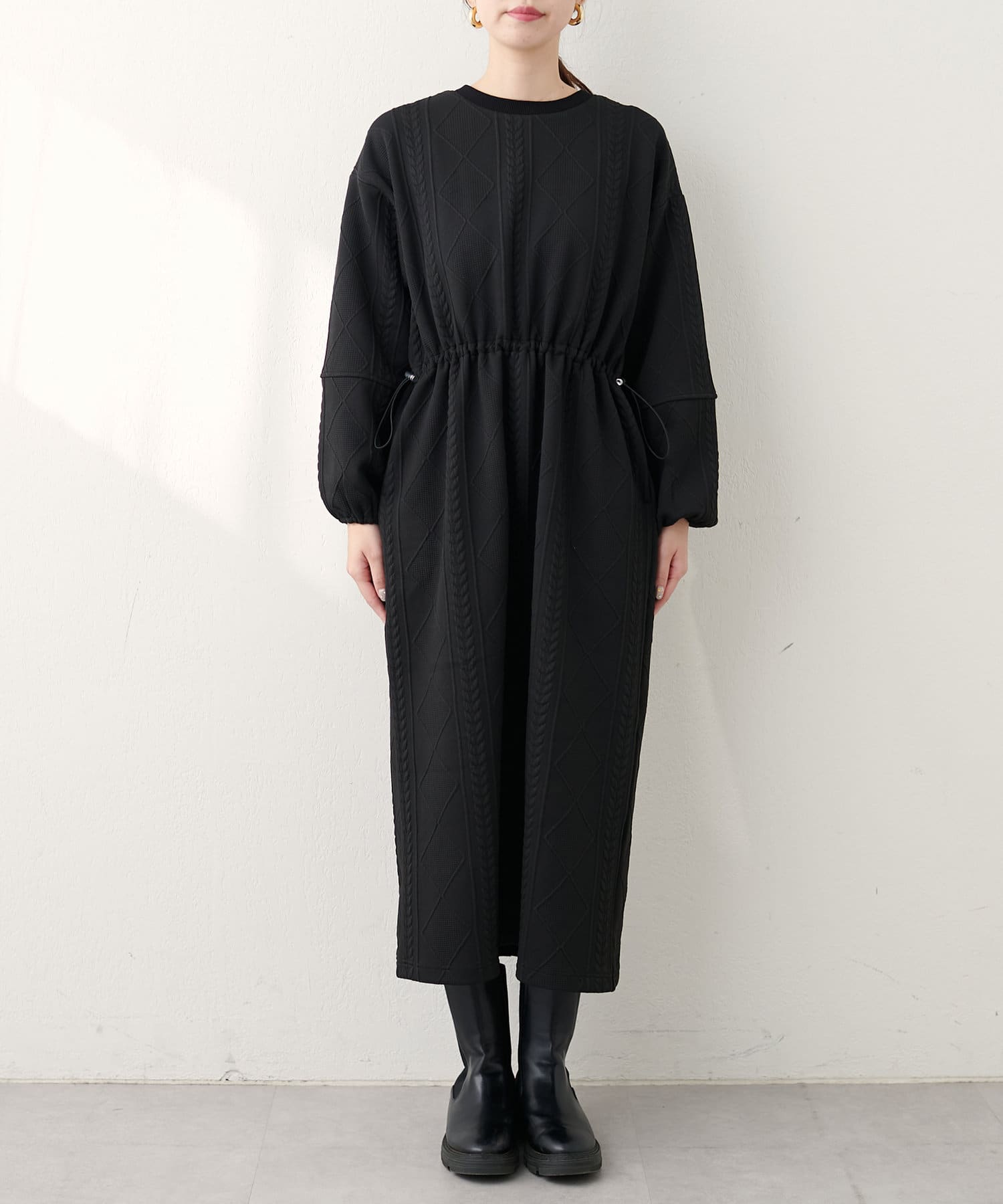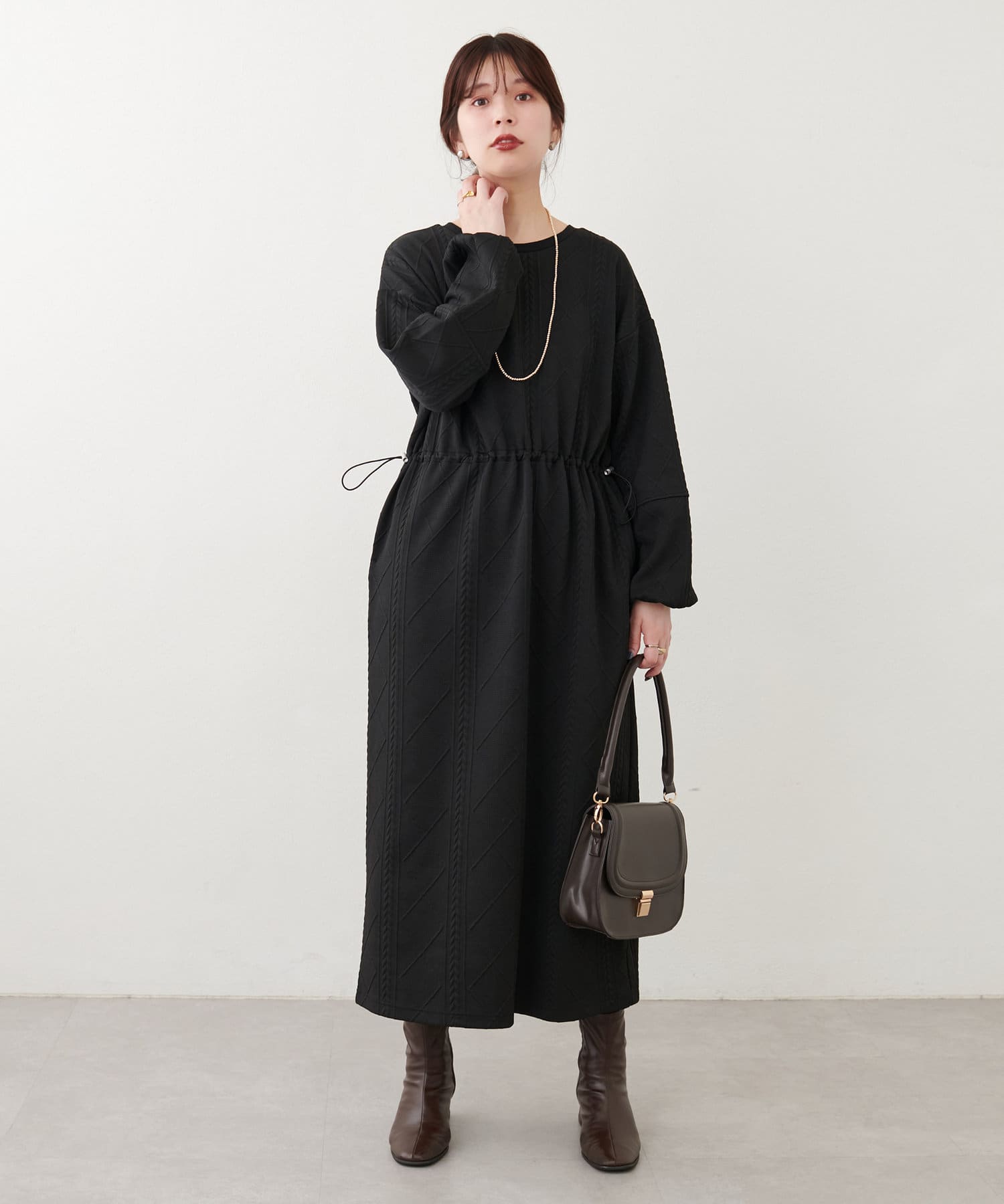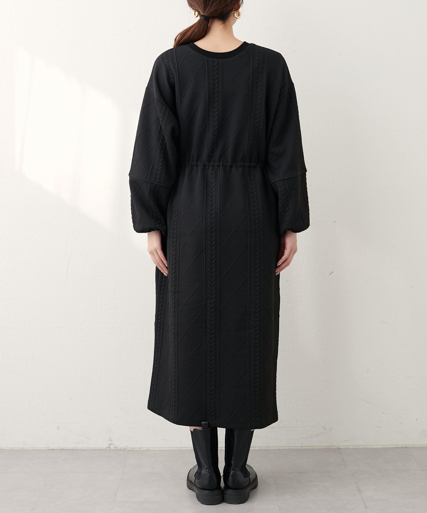 アランニットのような立体感のある柄が特徴的なので、ニットワンピース感覚で着られます。