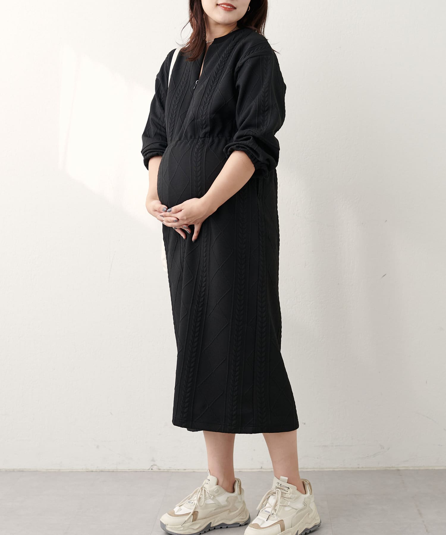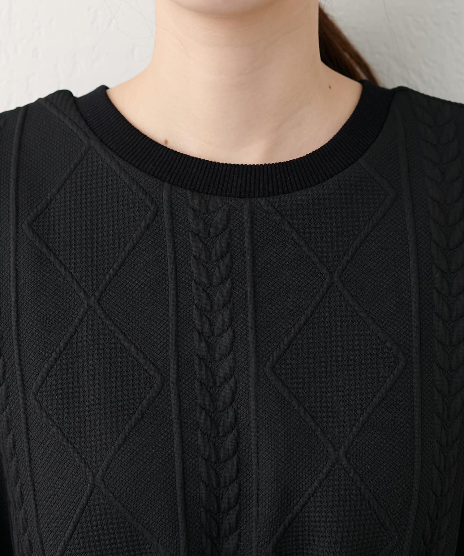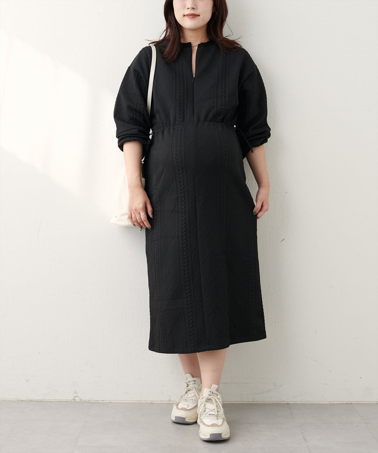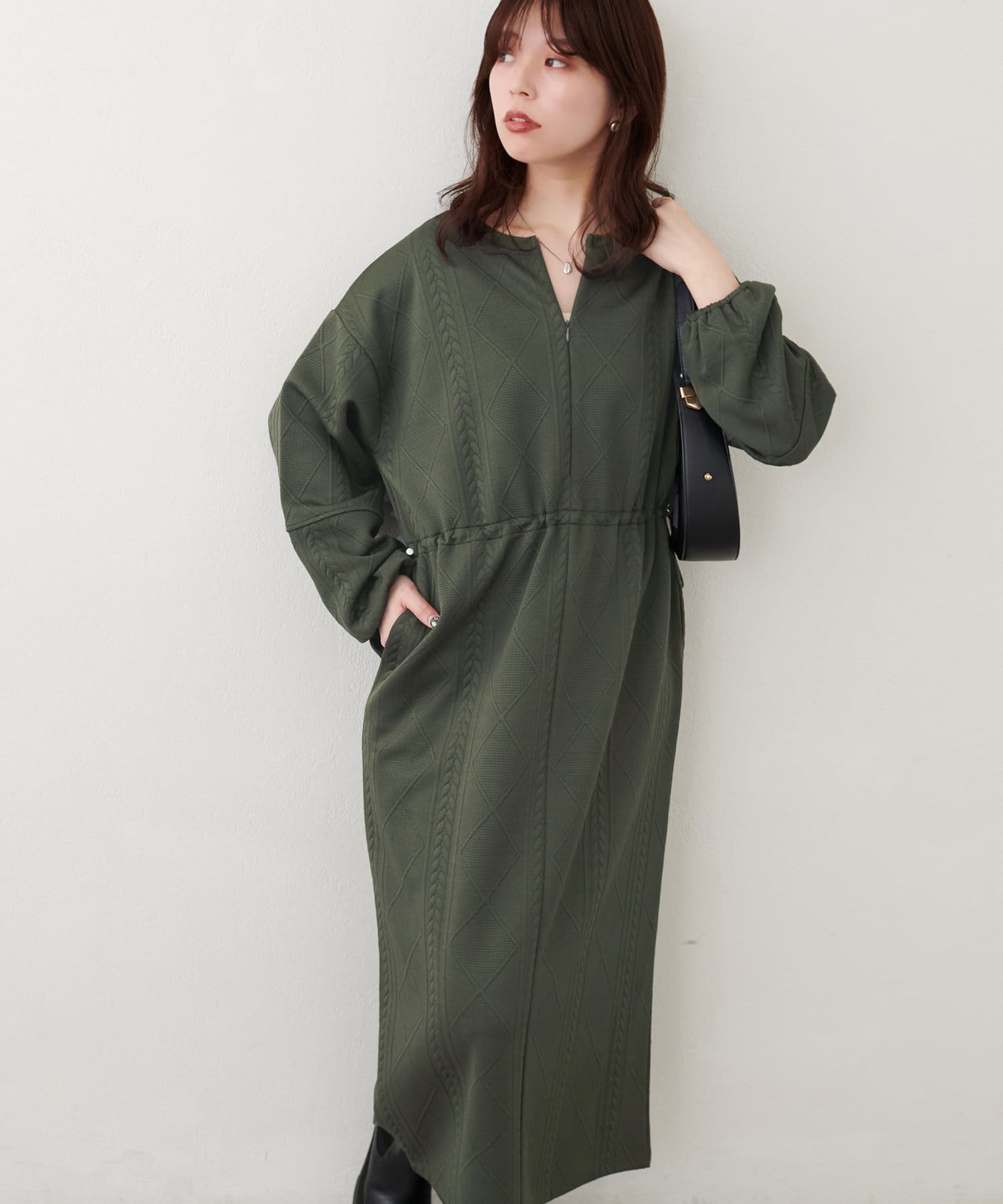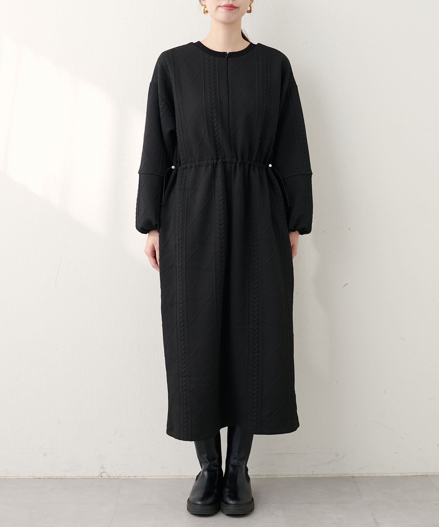 アランニットのような立体感のある柄が特徴的なので、ニットワンピース感覚で着られます。