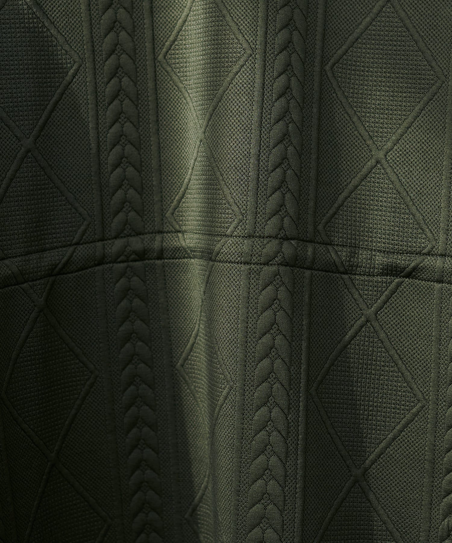 ニットのような見た目で優しい風合いながら、ジャージー素材を使用しているので軽量でストレッチ性があり、着心地が良いのが特徴。
