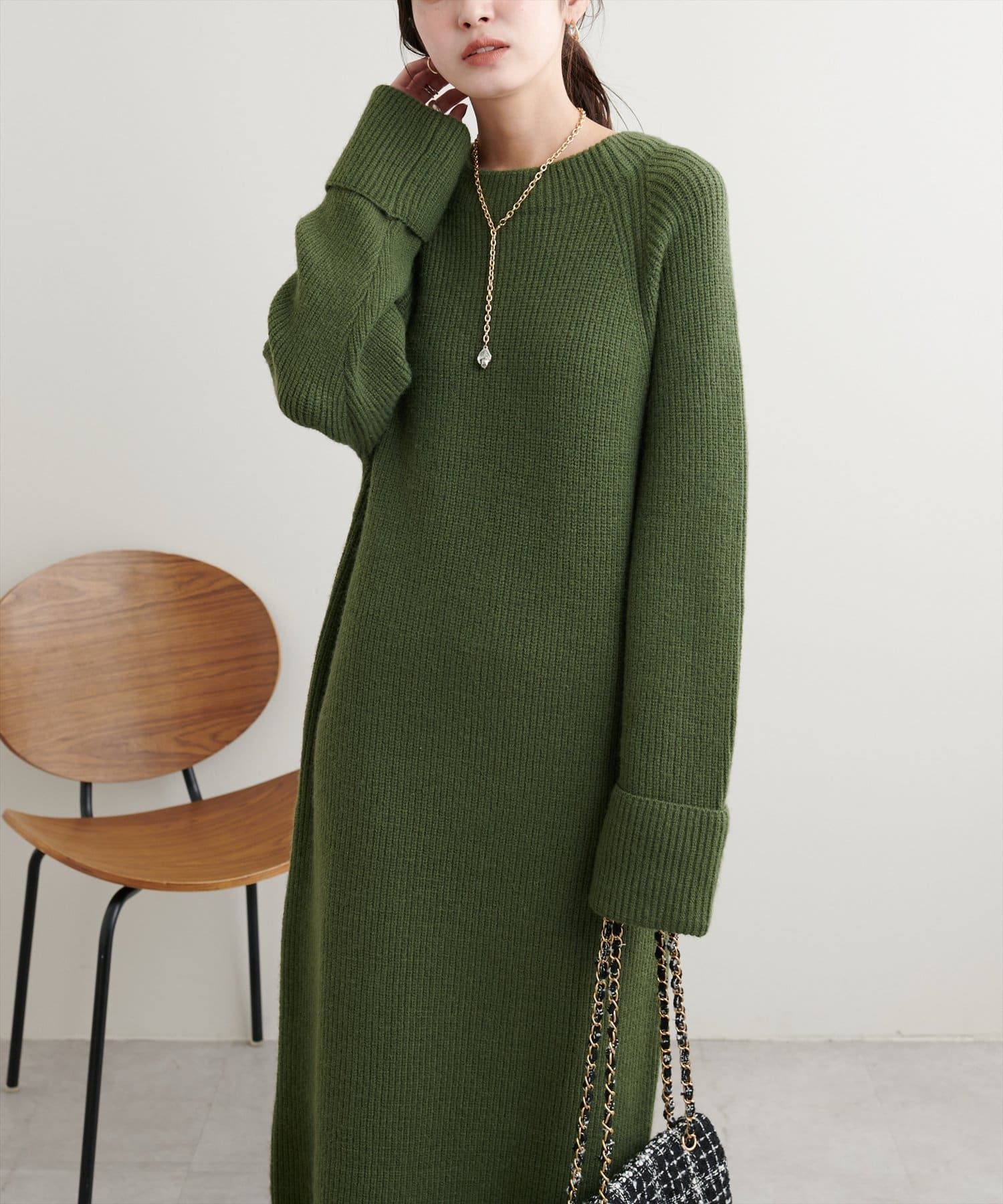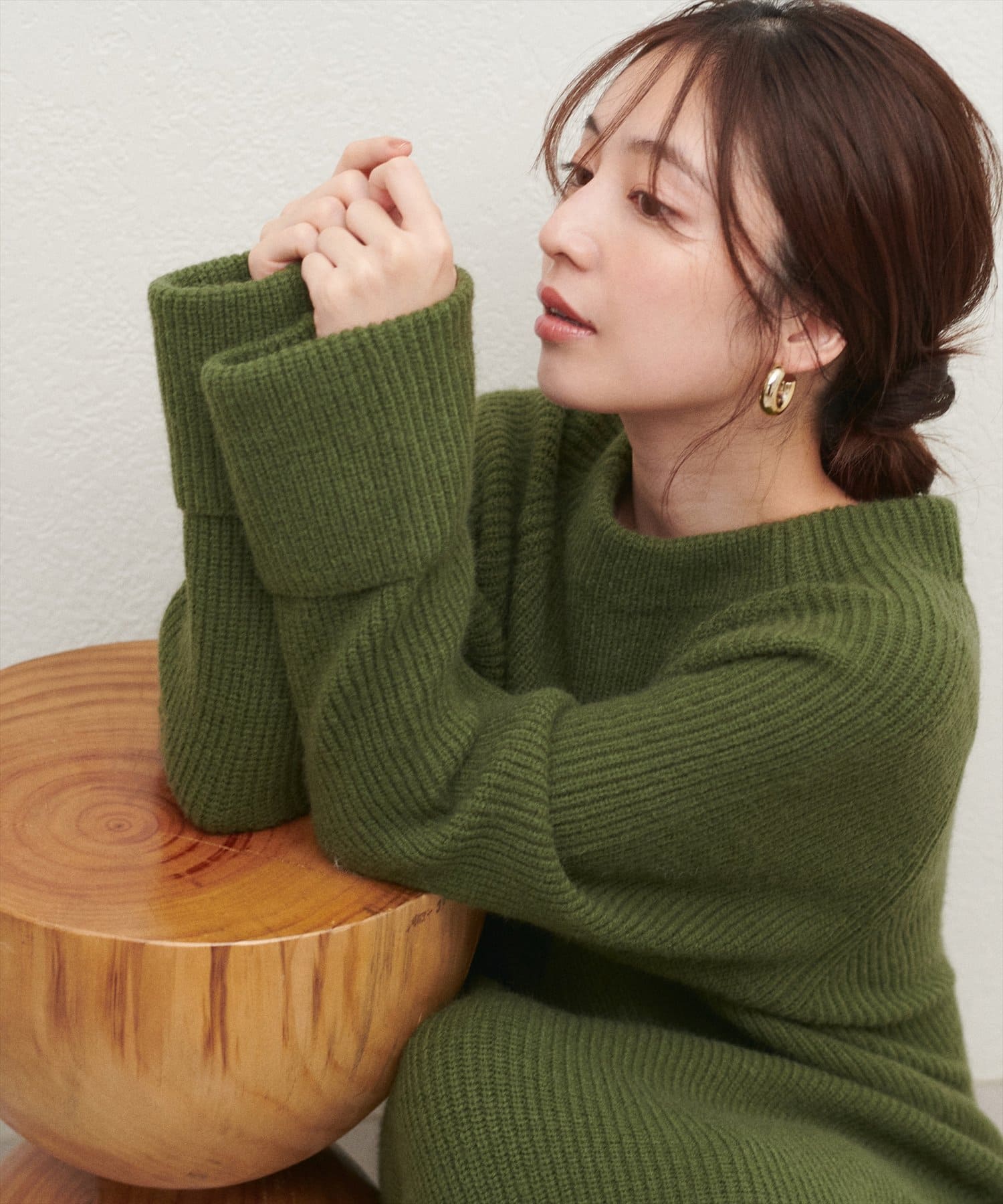 折り返して着る袖口は、オーバーライクな印象を与え包まれているような可愛らしさを醸し出します。