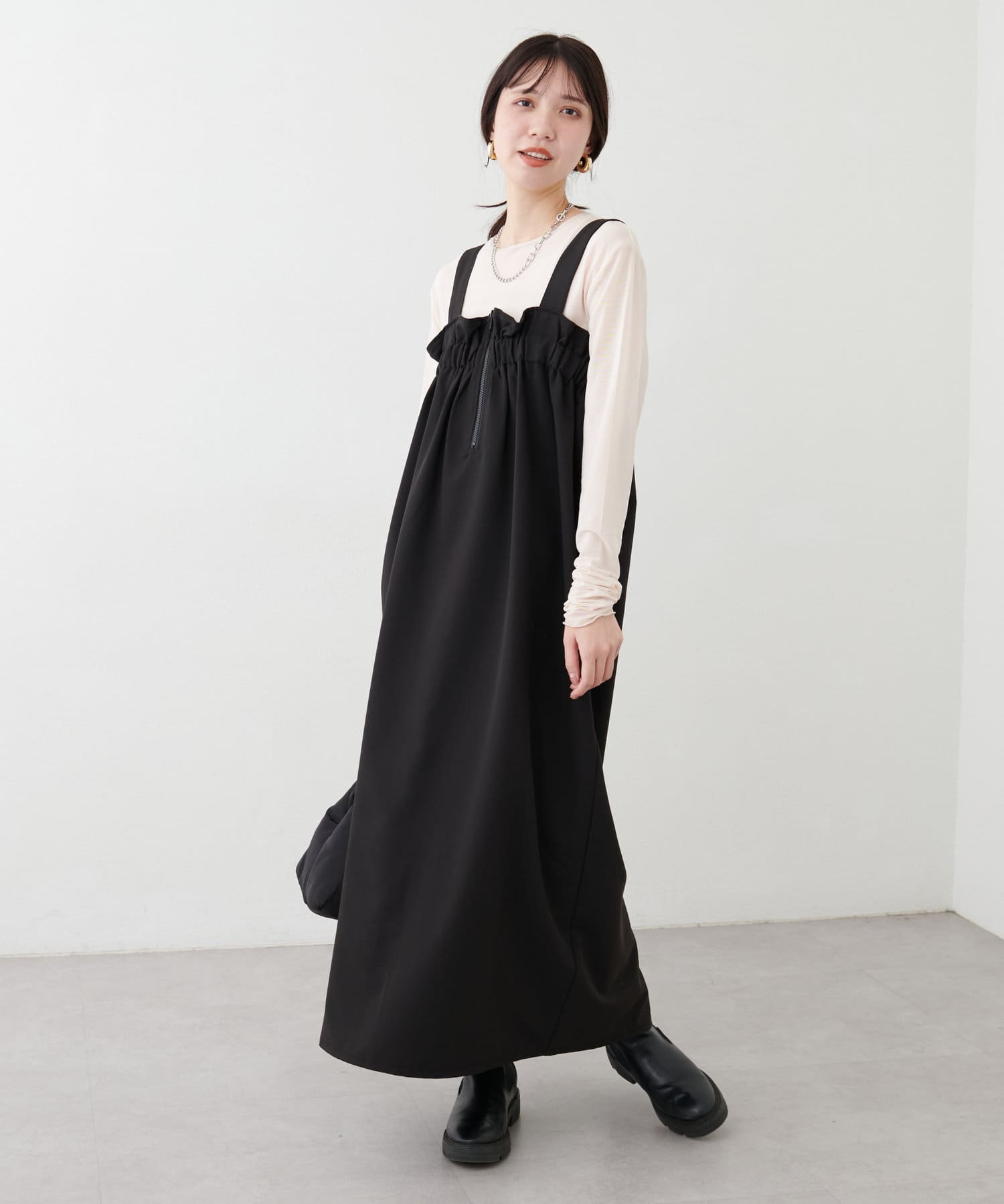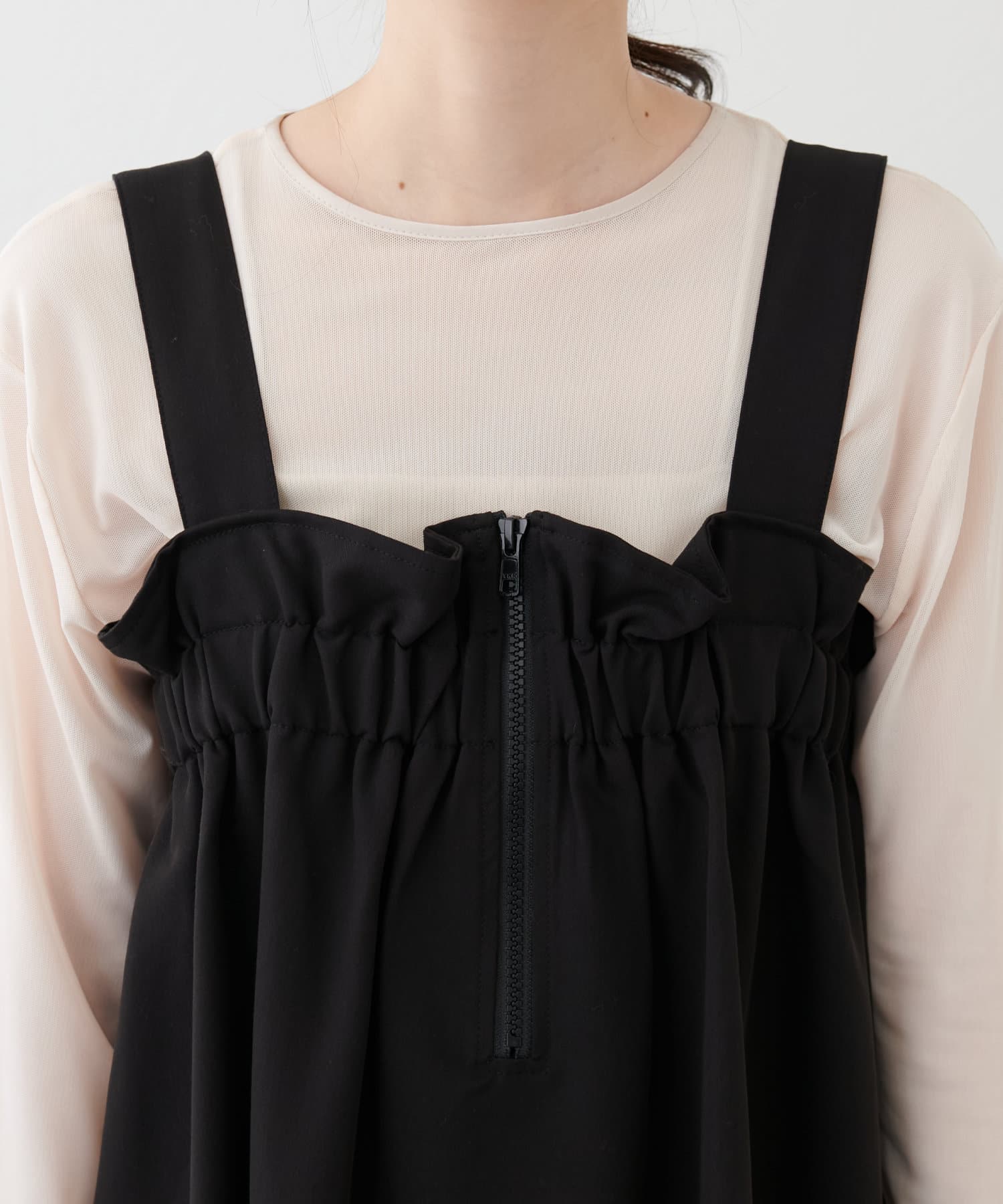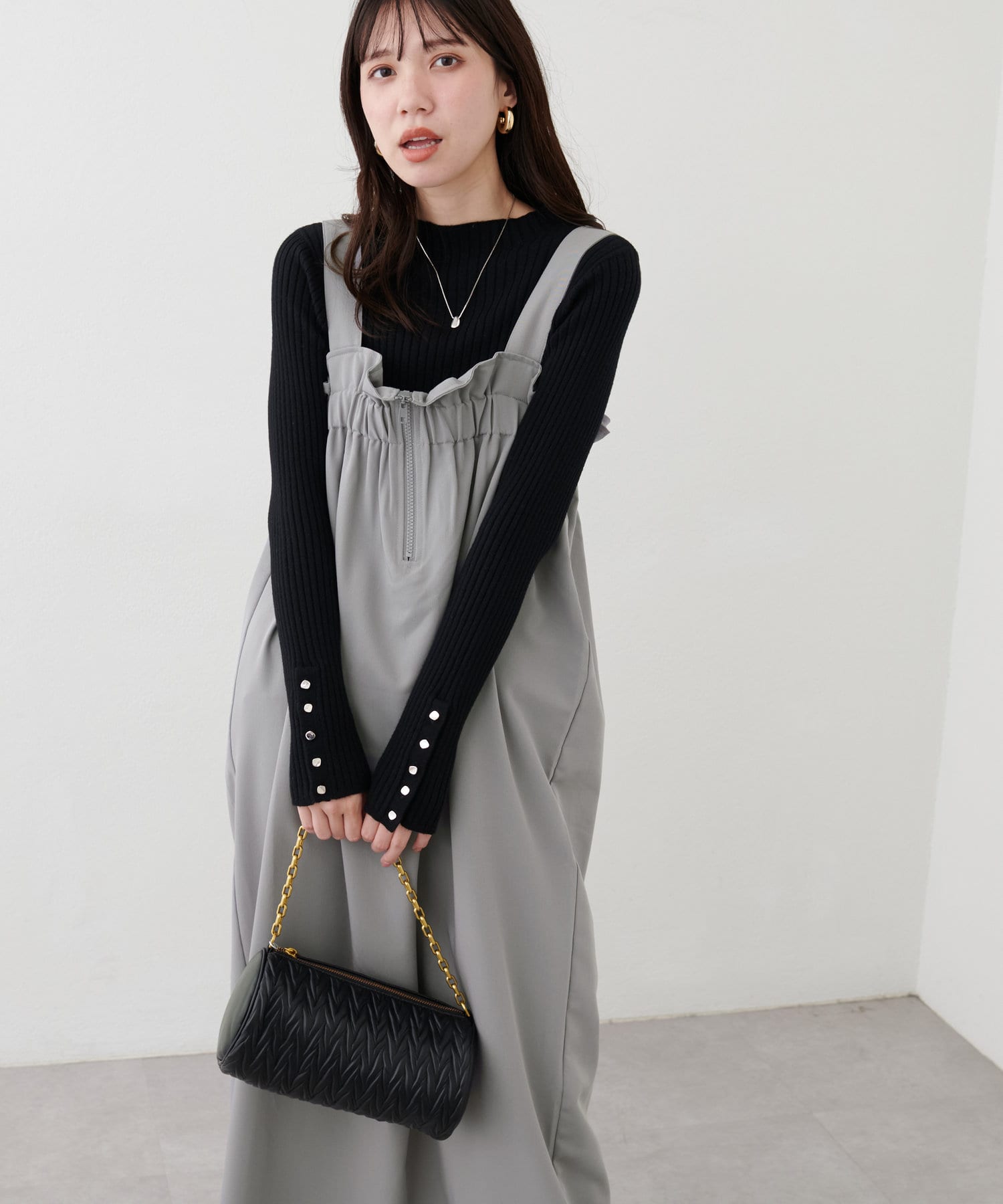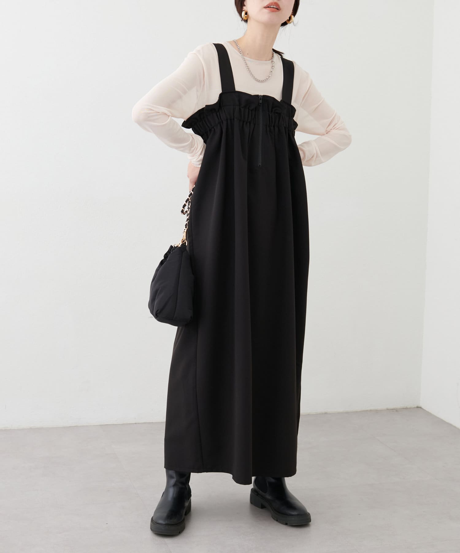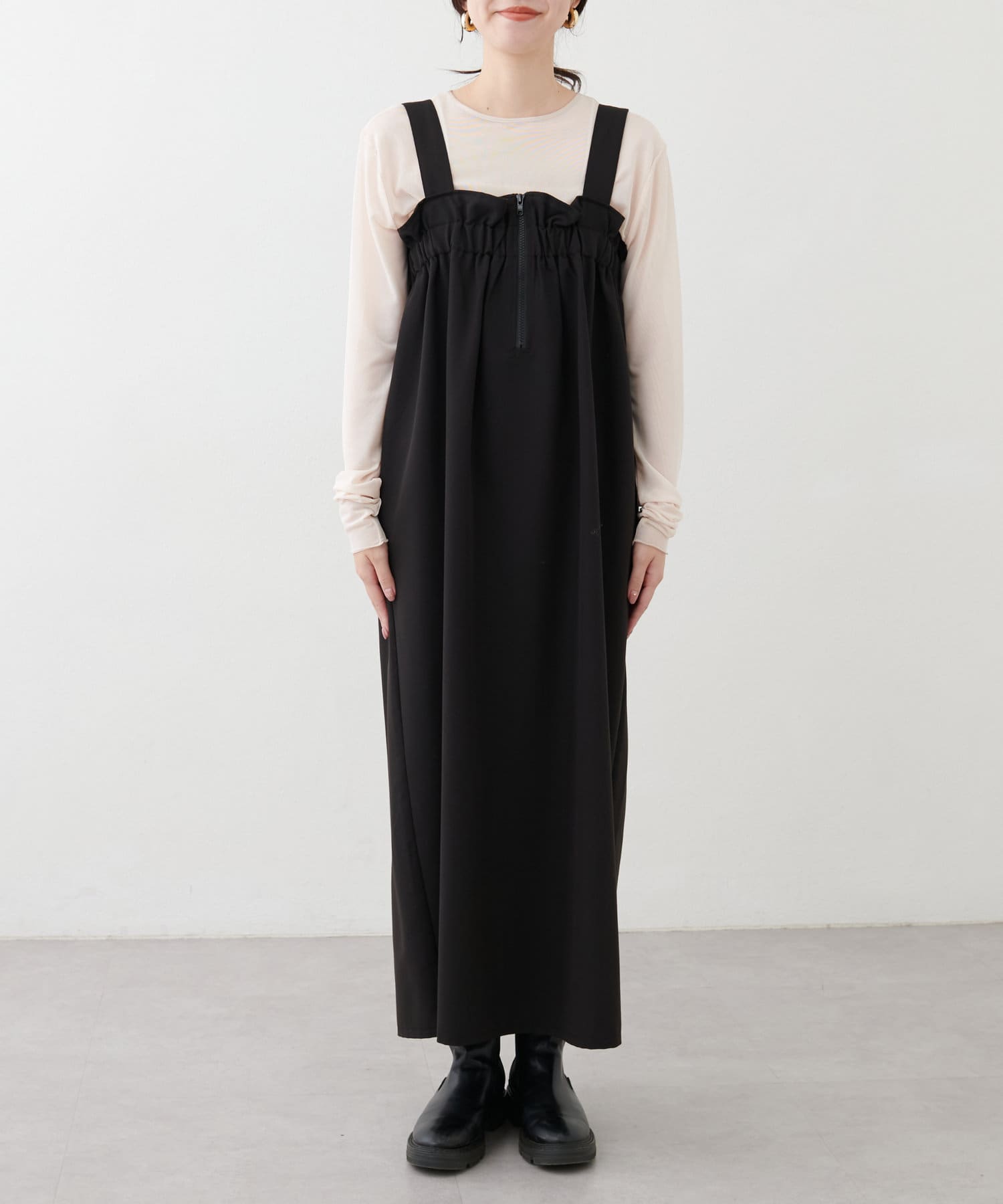 さらっとした軽めの素材とフロントジップでカジュアルみえするジャンスカ。