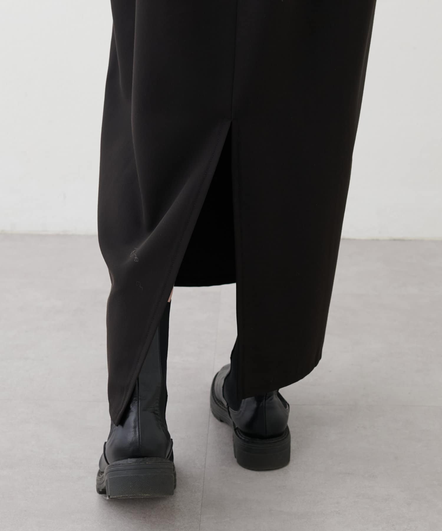 裾に向かってストンと落ちるシルエットで後ろにスリットが入っているので足さばきも◎