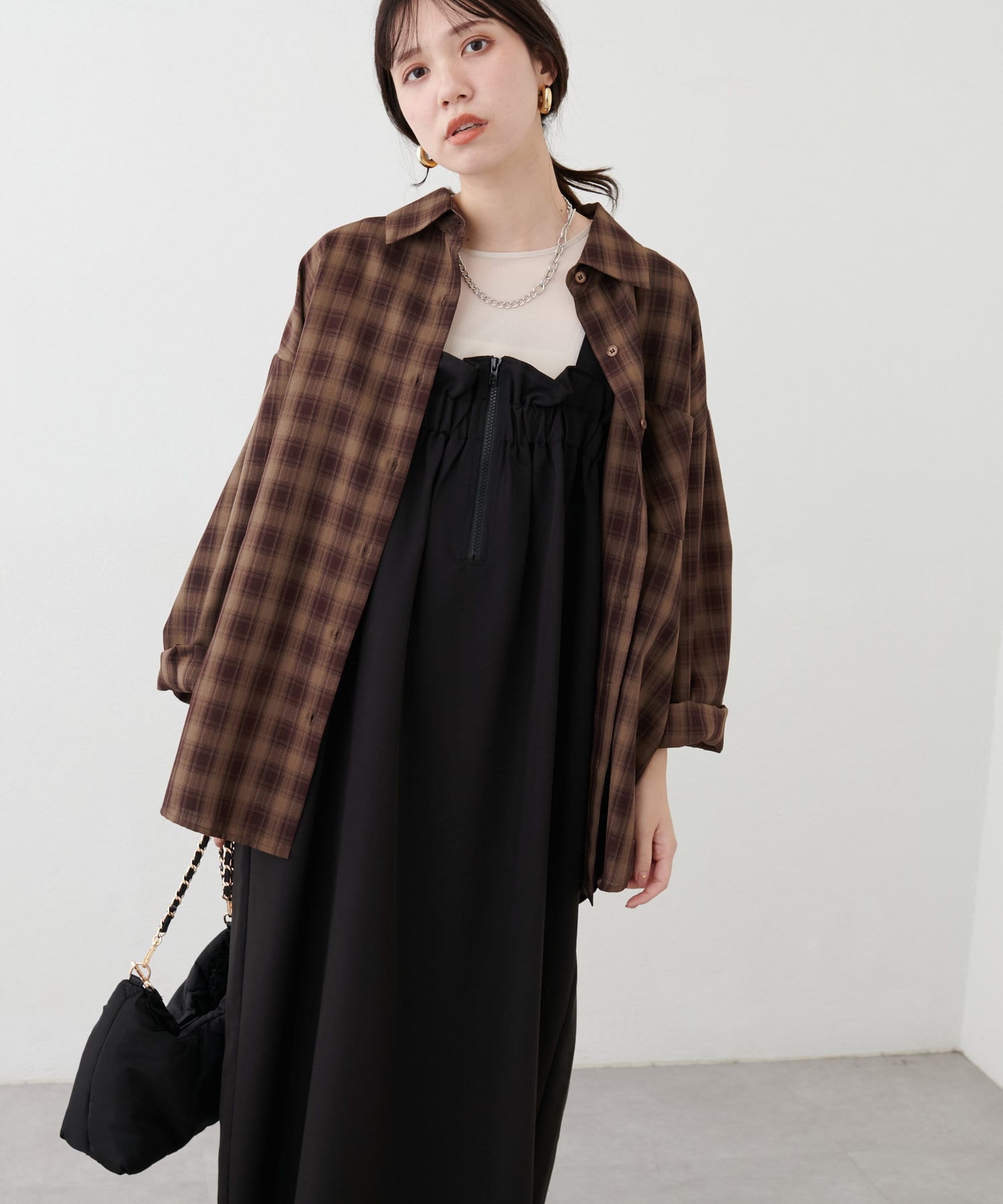 ぴったりしていないサイズ感なので、寒い時期はリブニットなどをインナーにスタイリングしていただき、