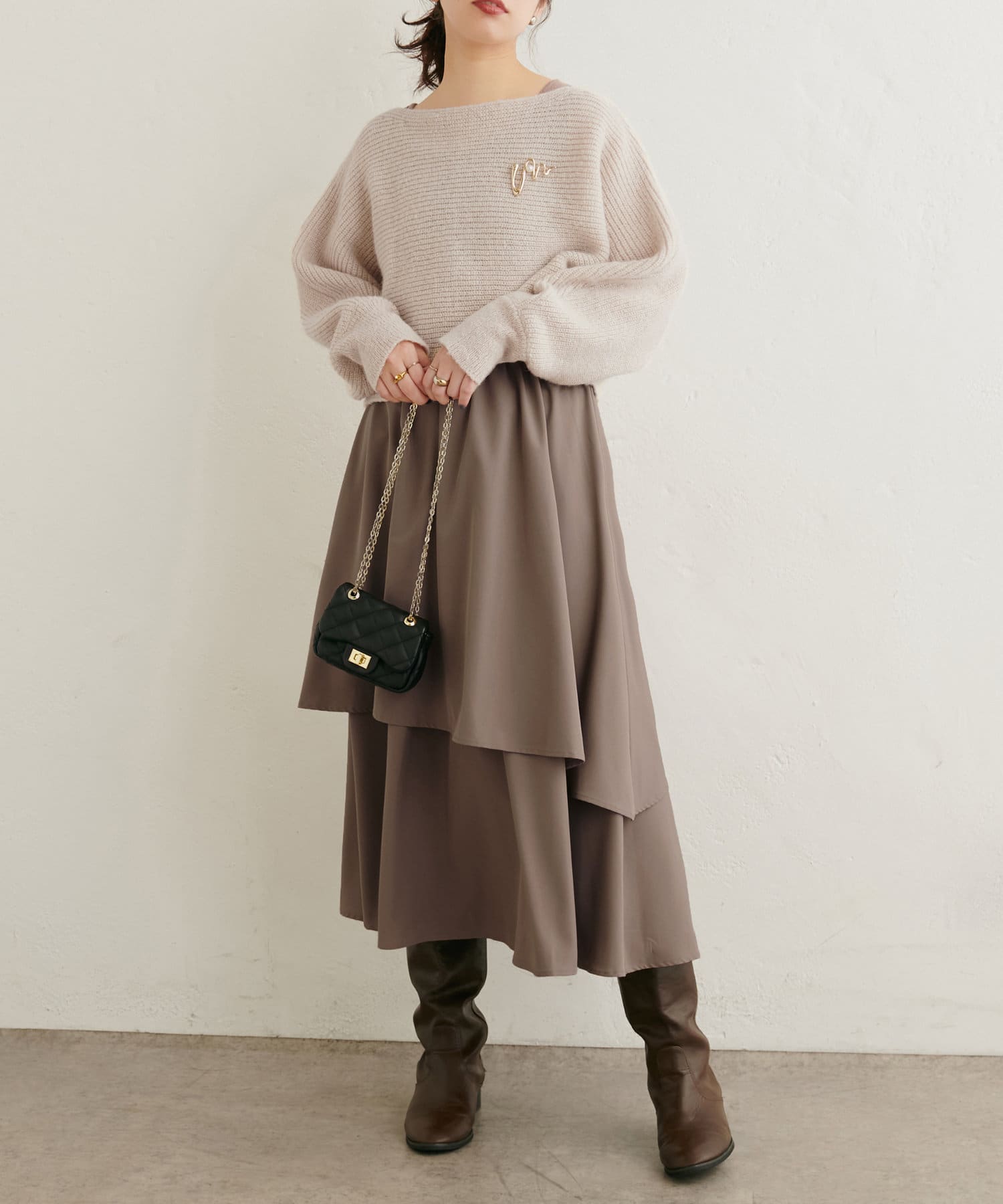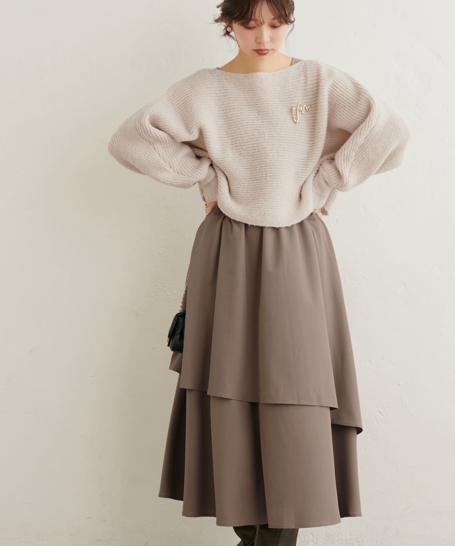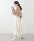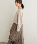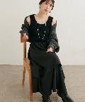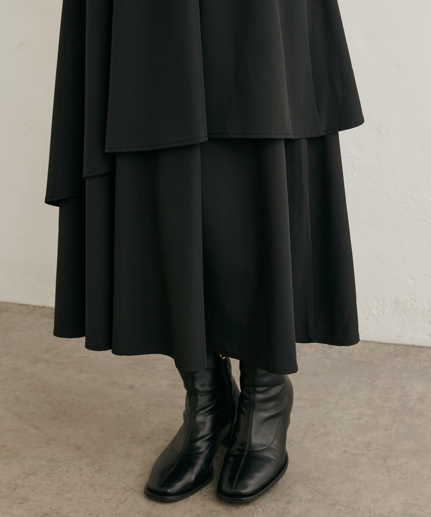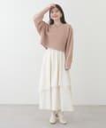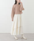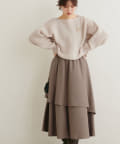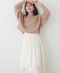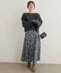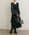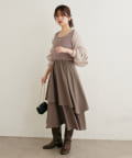 アシメ切り替えの広がる裾のデザインが動く度にひらひらとする揺れ感が大人フェミニンな印象を演出。