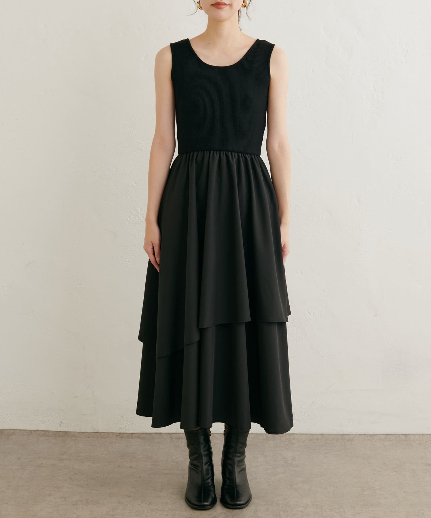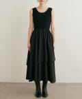 ワンピースはテレコ素材のトップスとさらっとしたスカートのドッキングアイテムです。