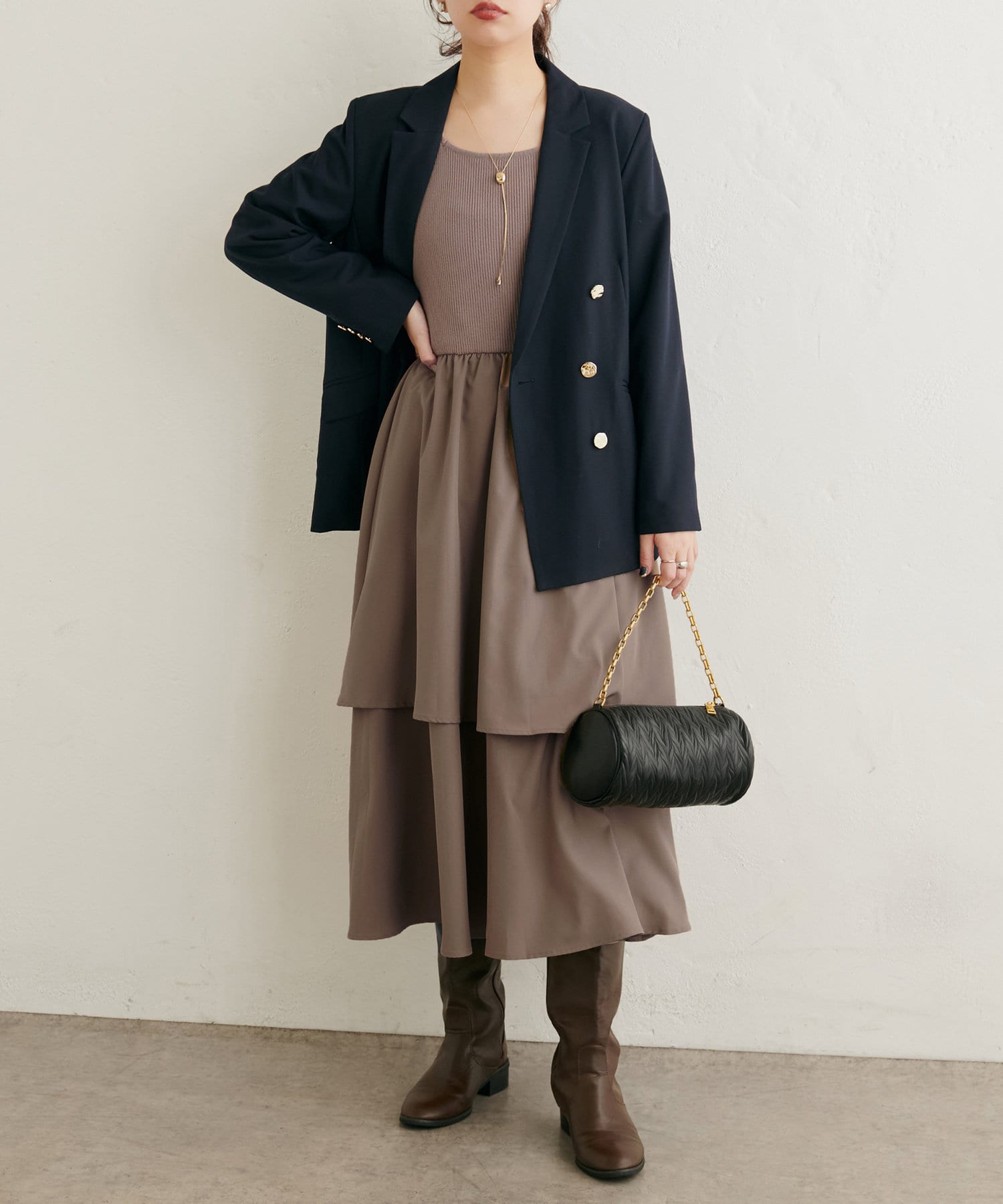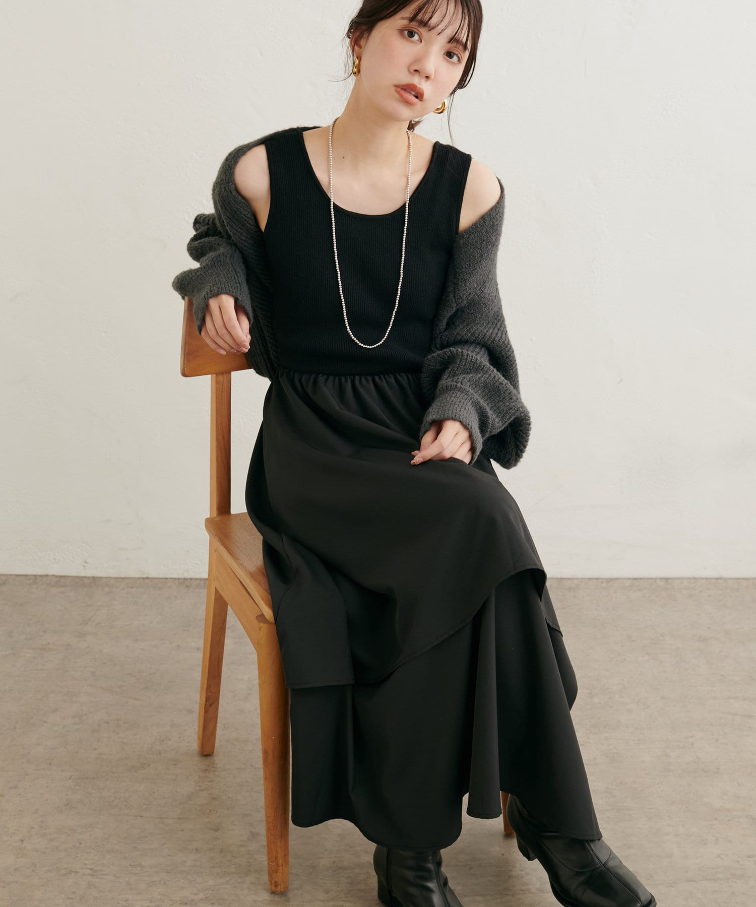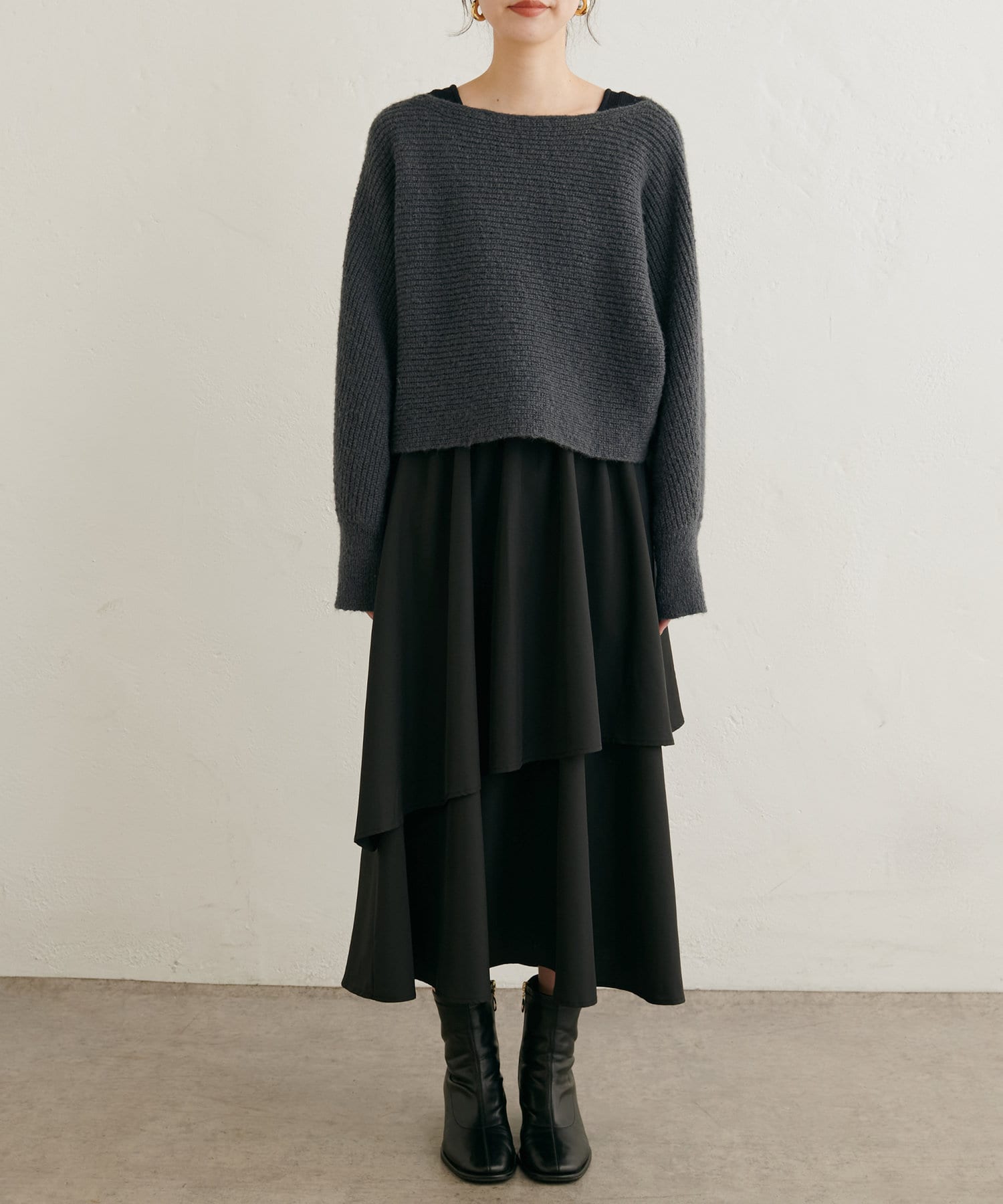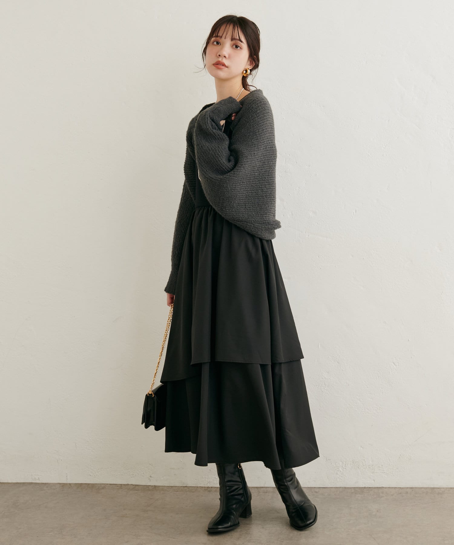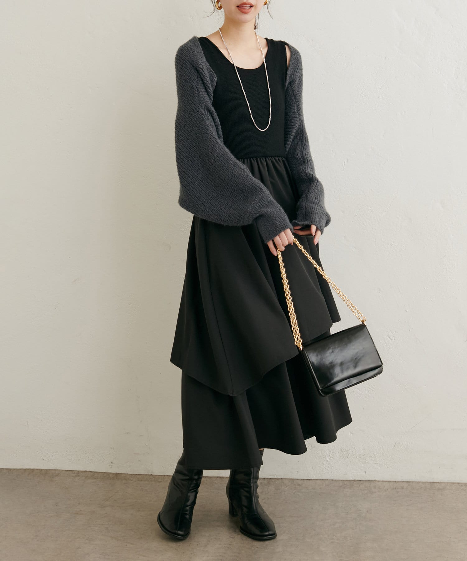 ニットボレロ×アシメドッキングワンピース