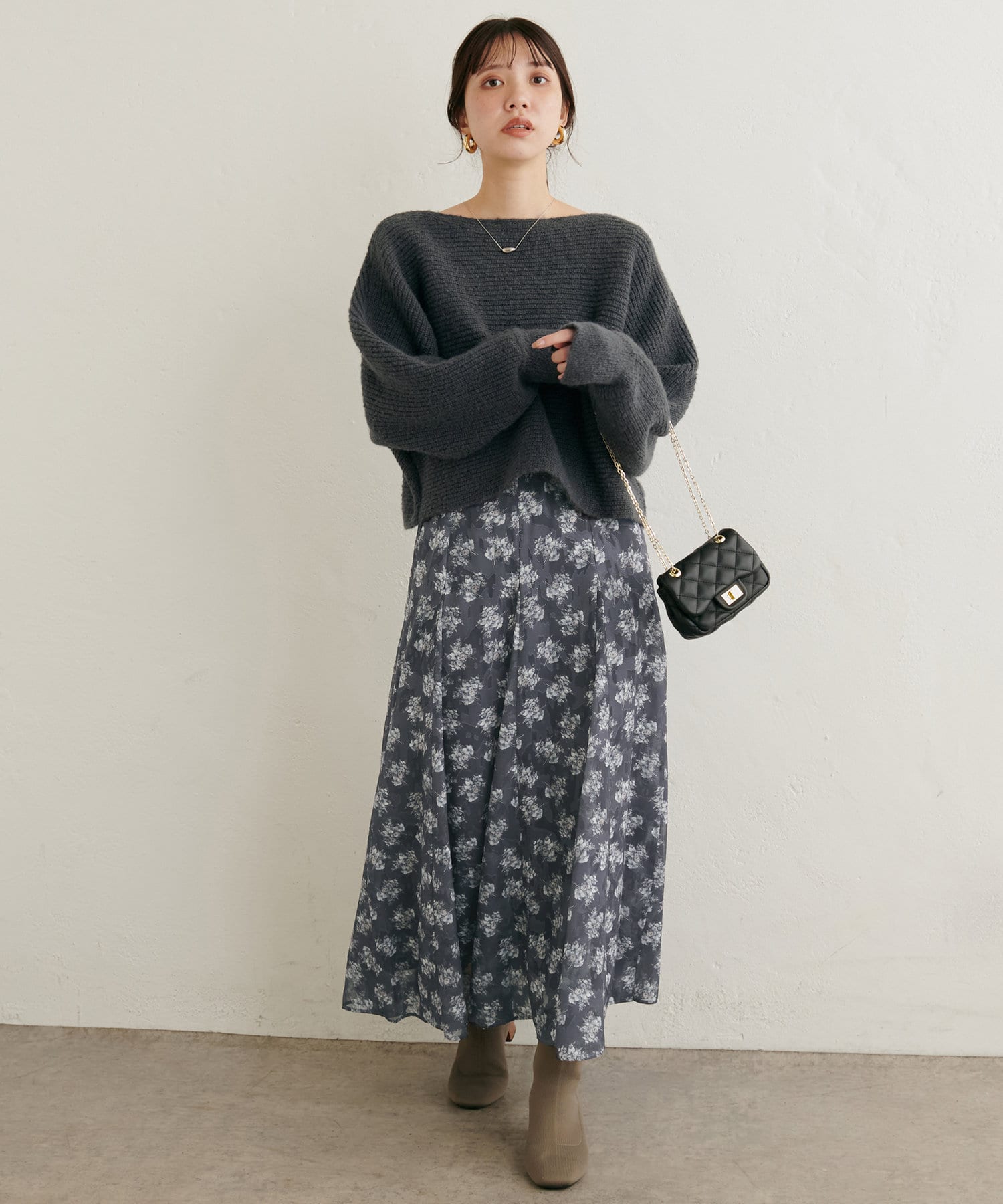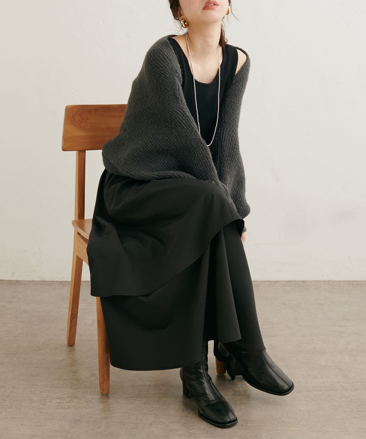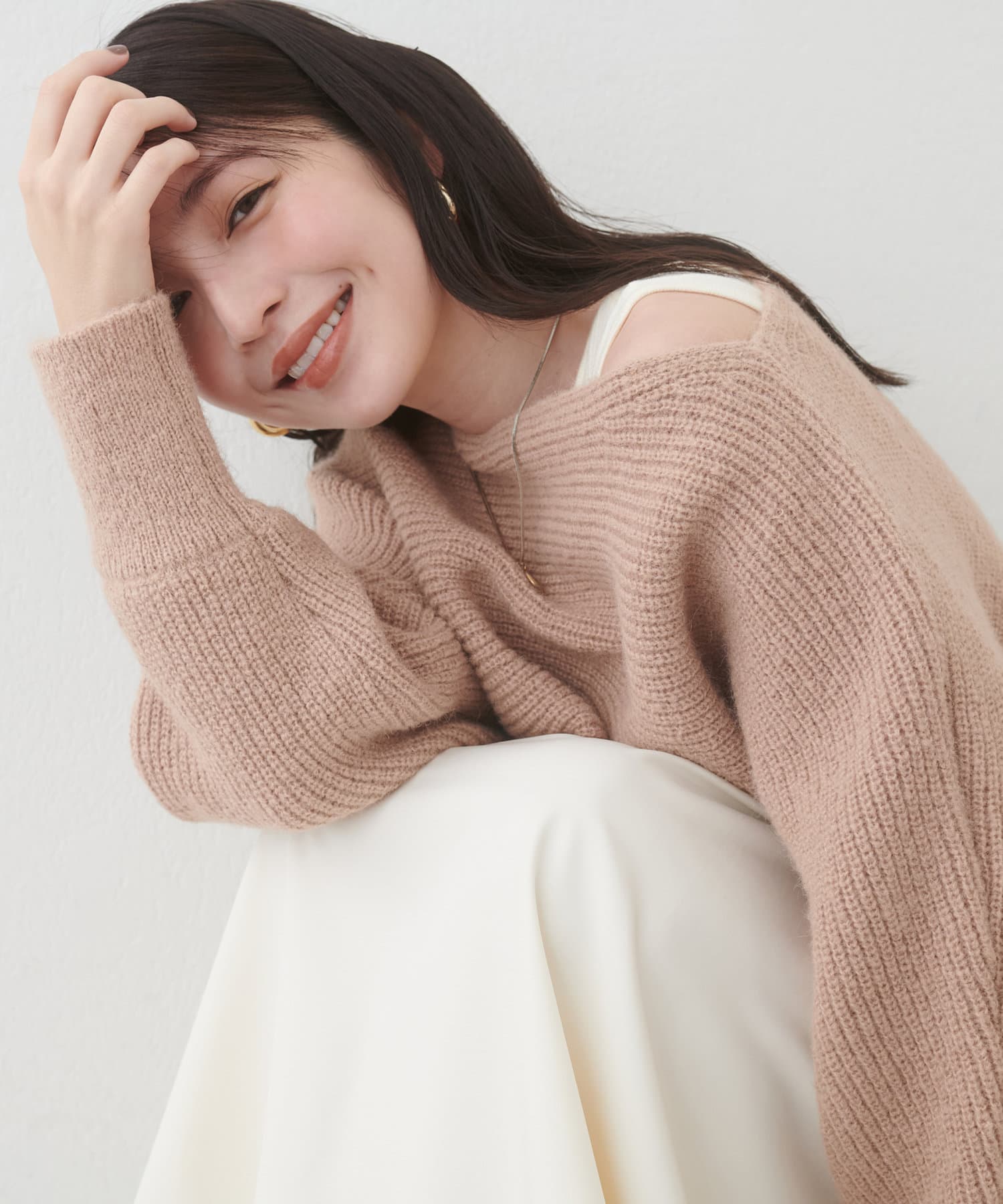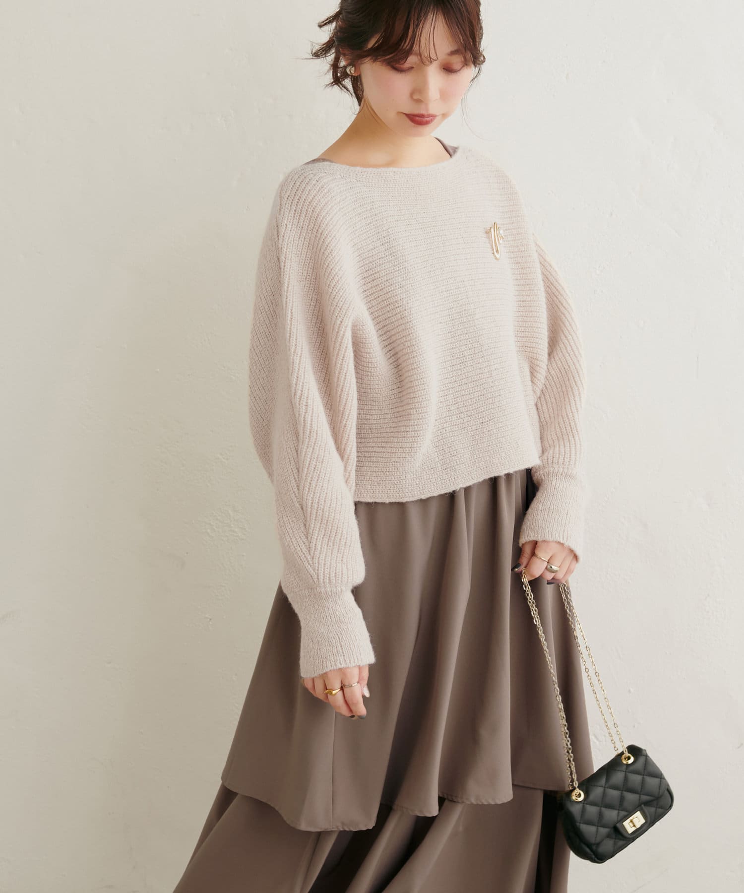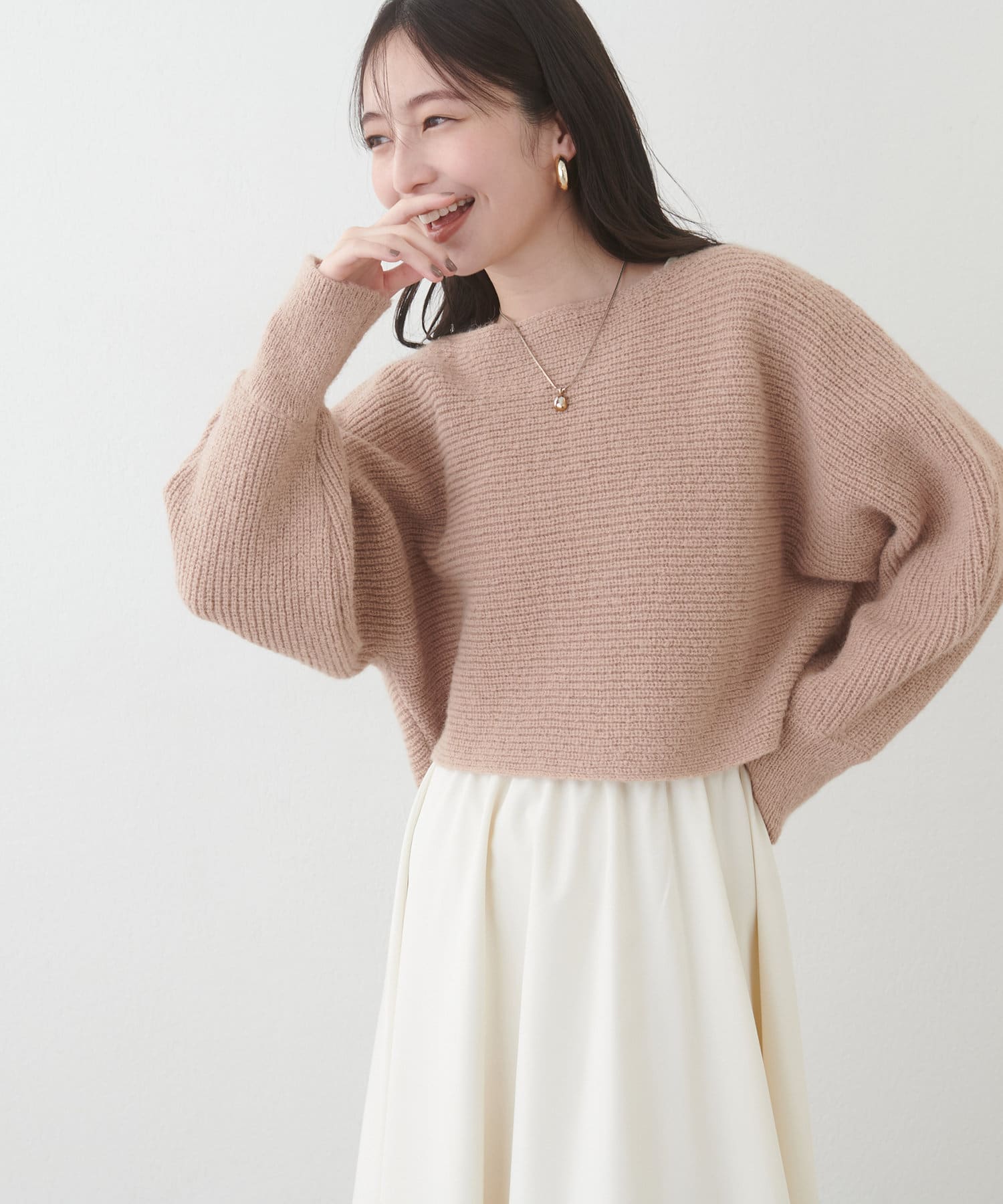 ニットはマーメイドスカートやナロースカートはもちろん、シンプルなデニム合わせも華やかにきまります。