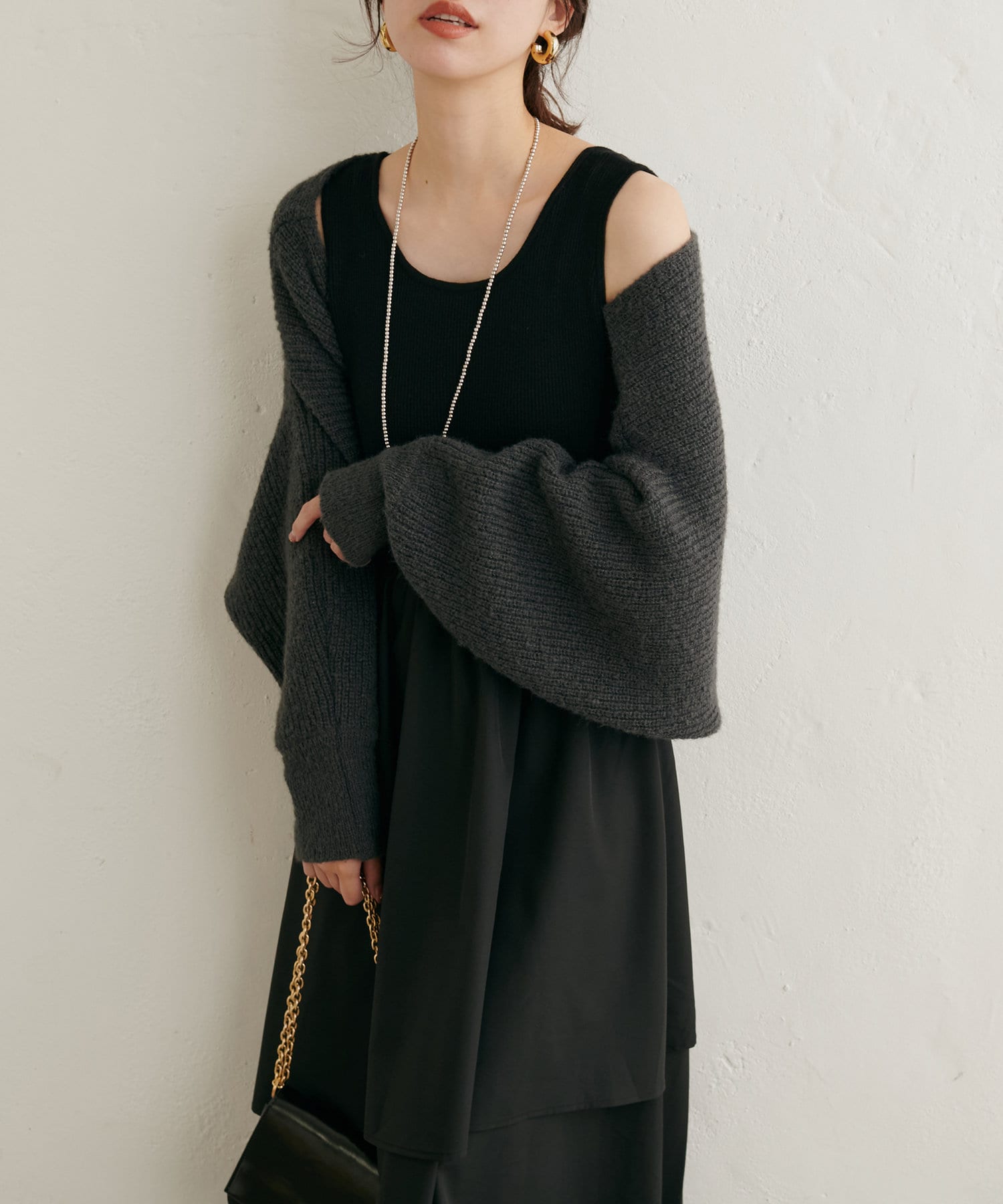 ワンピースはお手持ちのニットやカーディガンを合わせたり、