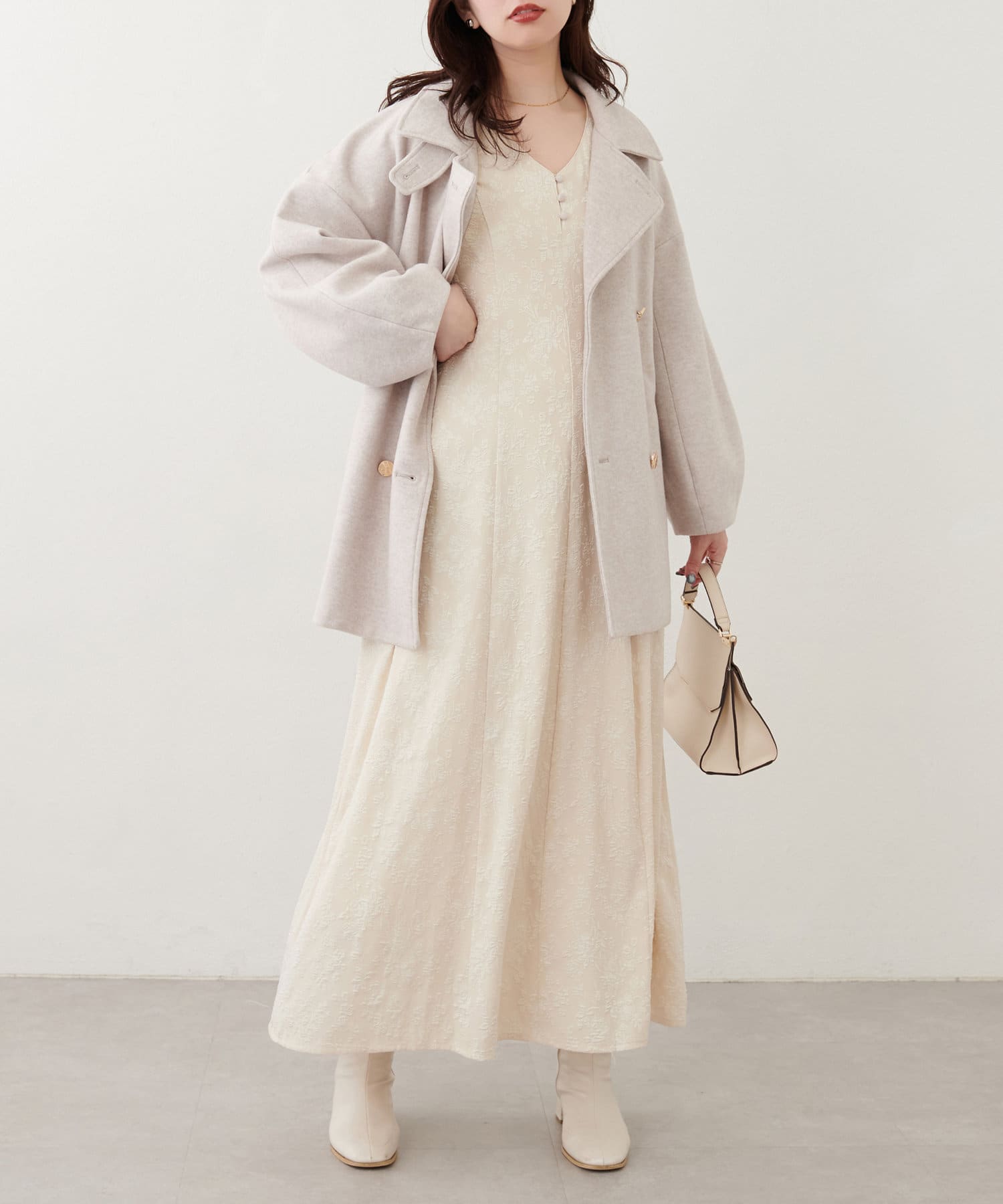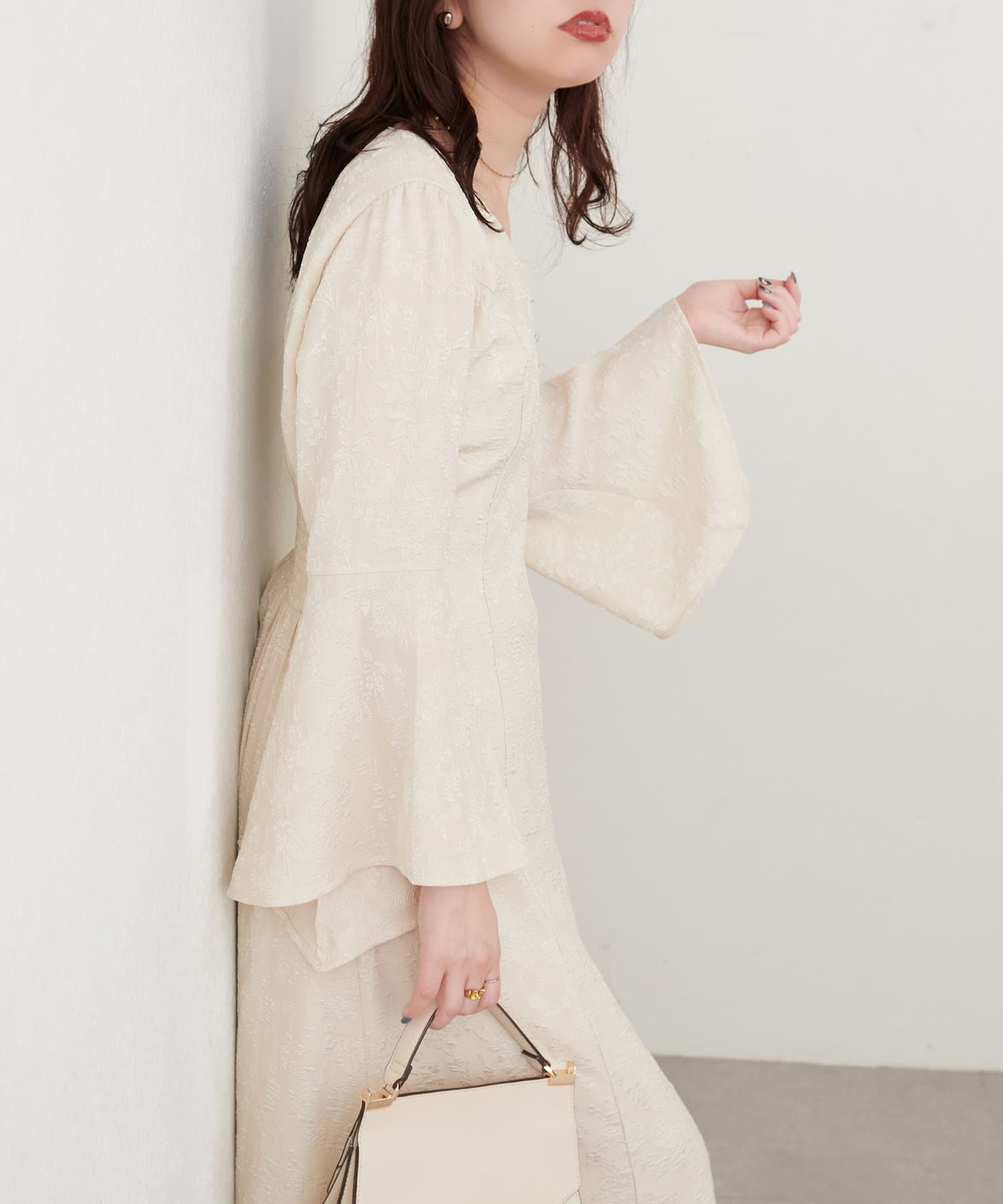 デザインしました。斜めにカットしたフレア袖は甘さより大人っぽさを出していただけます。