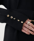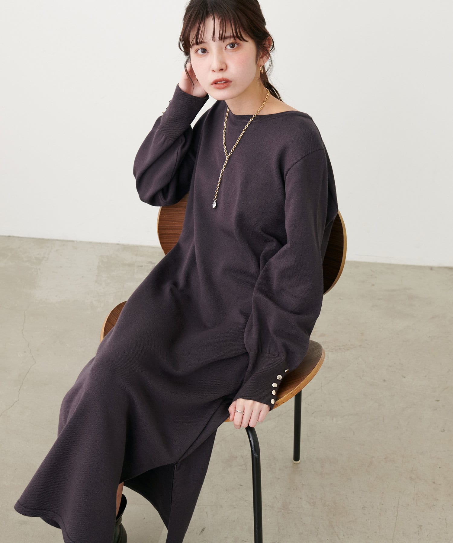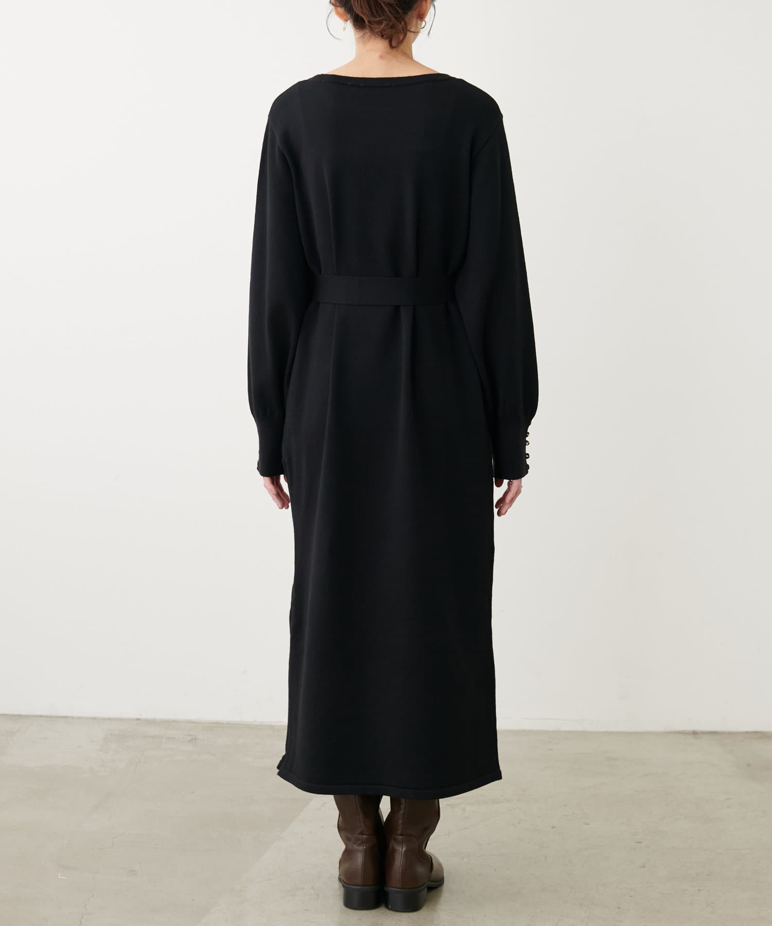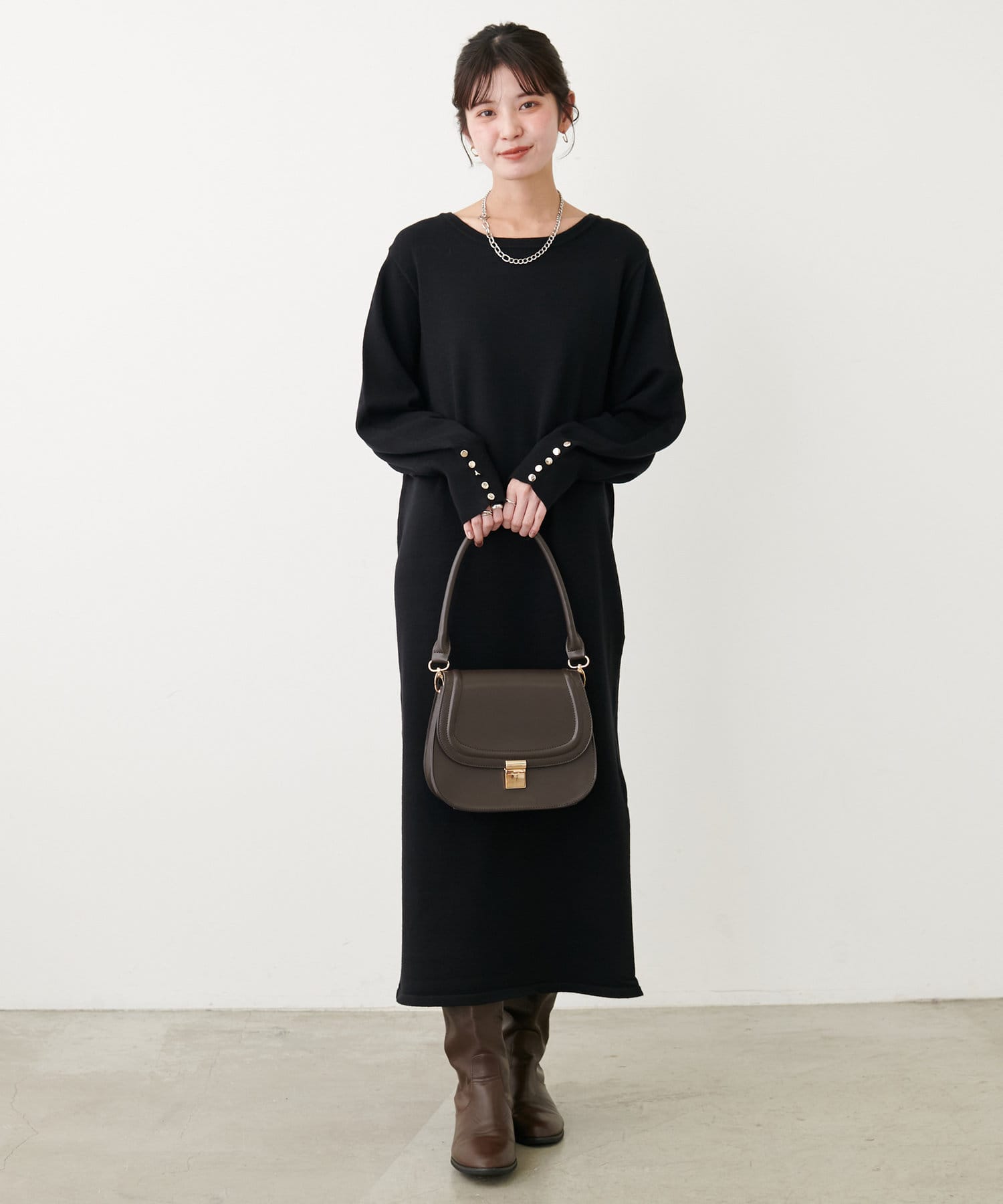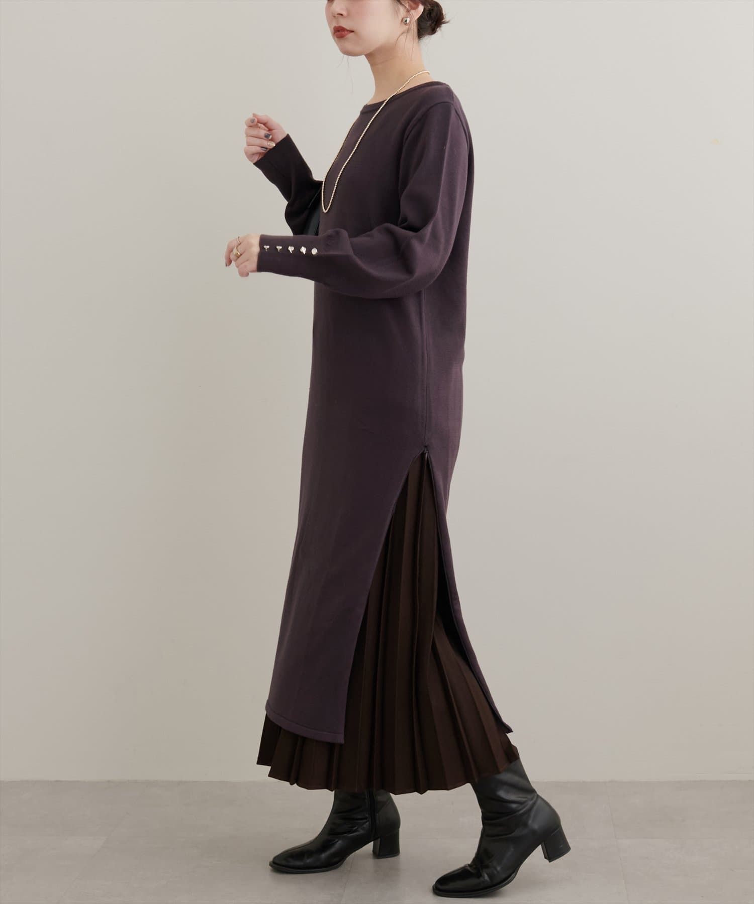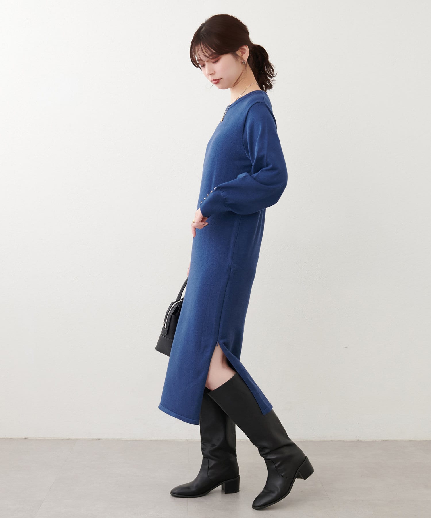 袖のボタンで上品さをプラスし、首元は詰まりすぎないスッキリとしたデザインです。