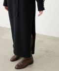 裾にジップがついており、脚さばきも良く、抜け感を演出できます。