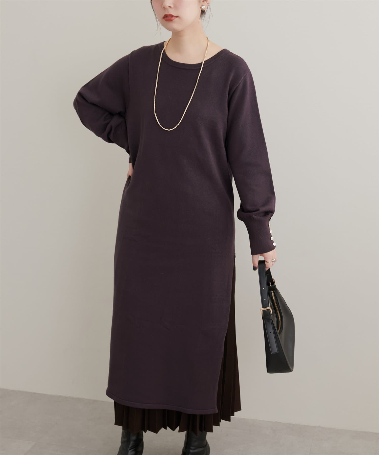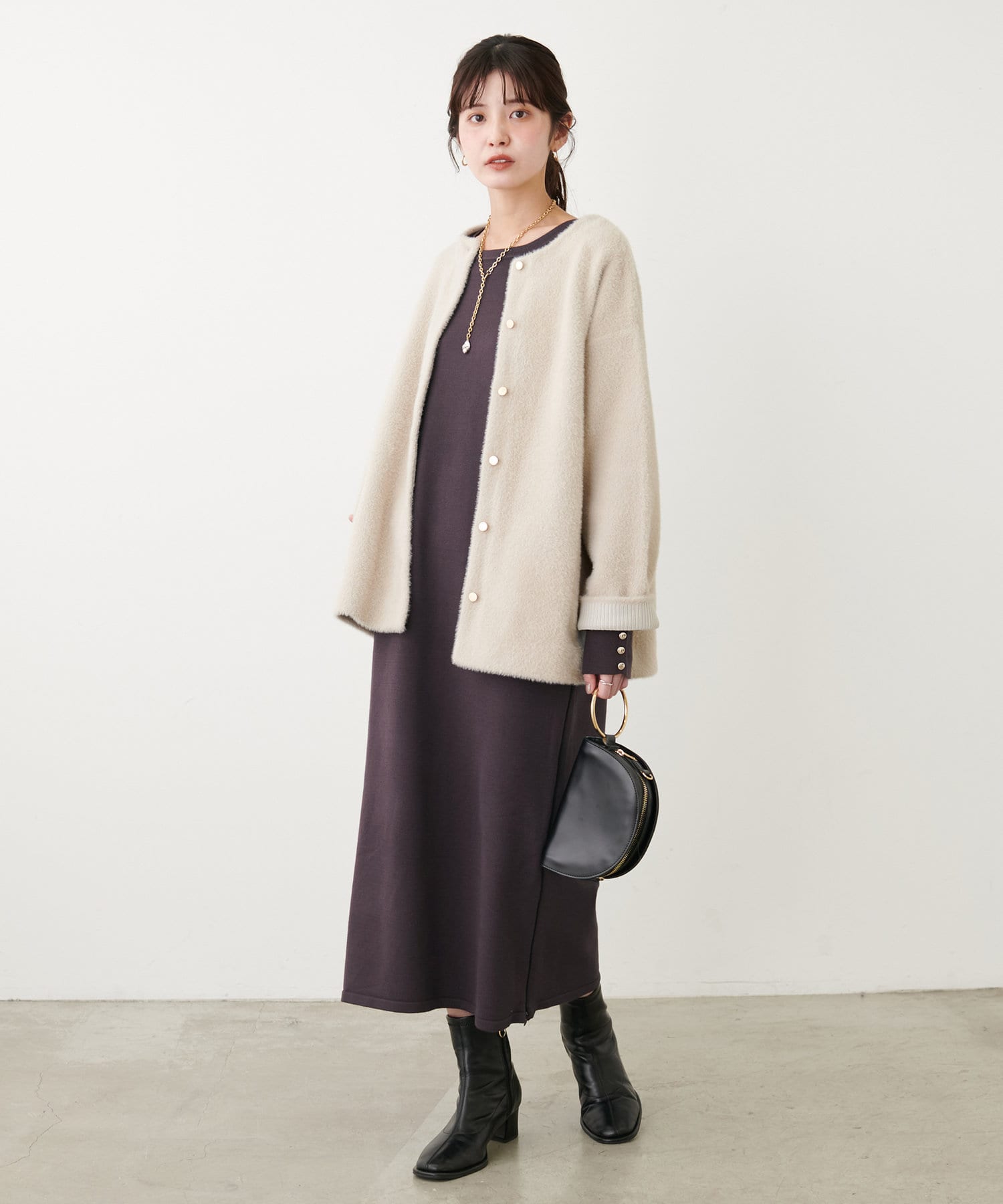 シンプルなデザインなのでどんなアウターにも合わせやすい1枚。