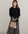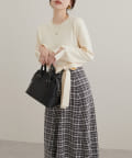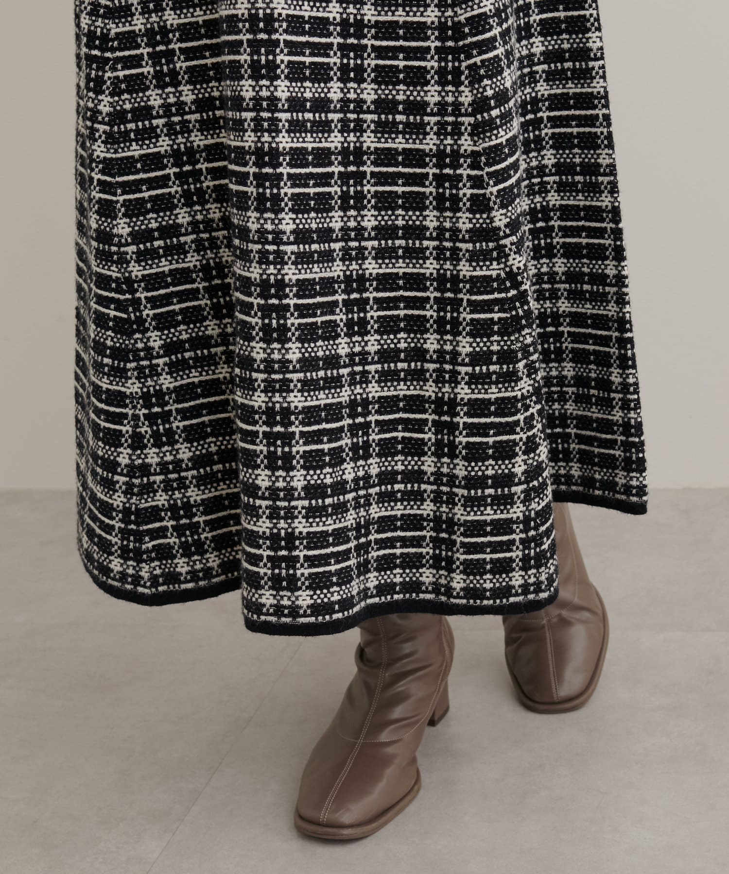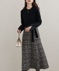 柔らかなニット地とゆったりと広がるフレアスカートで