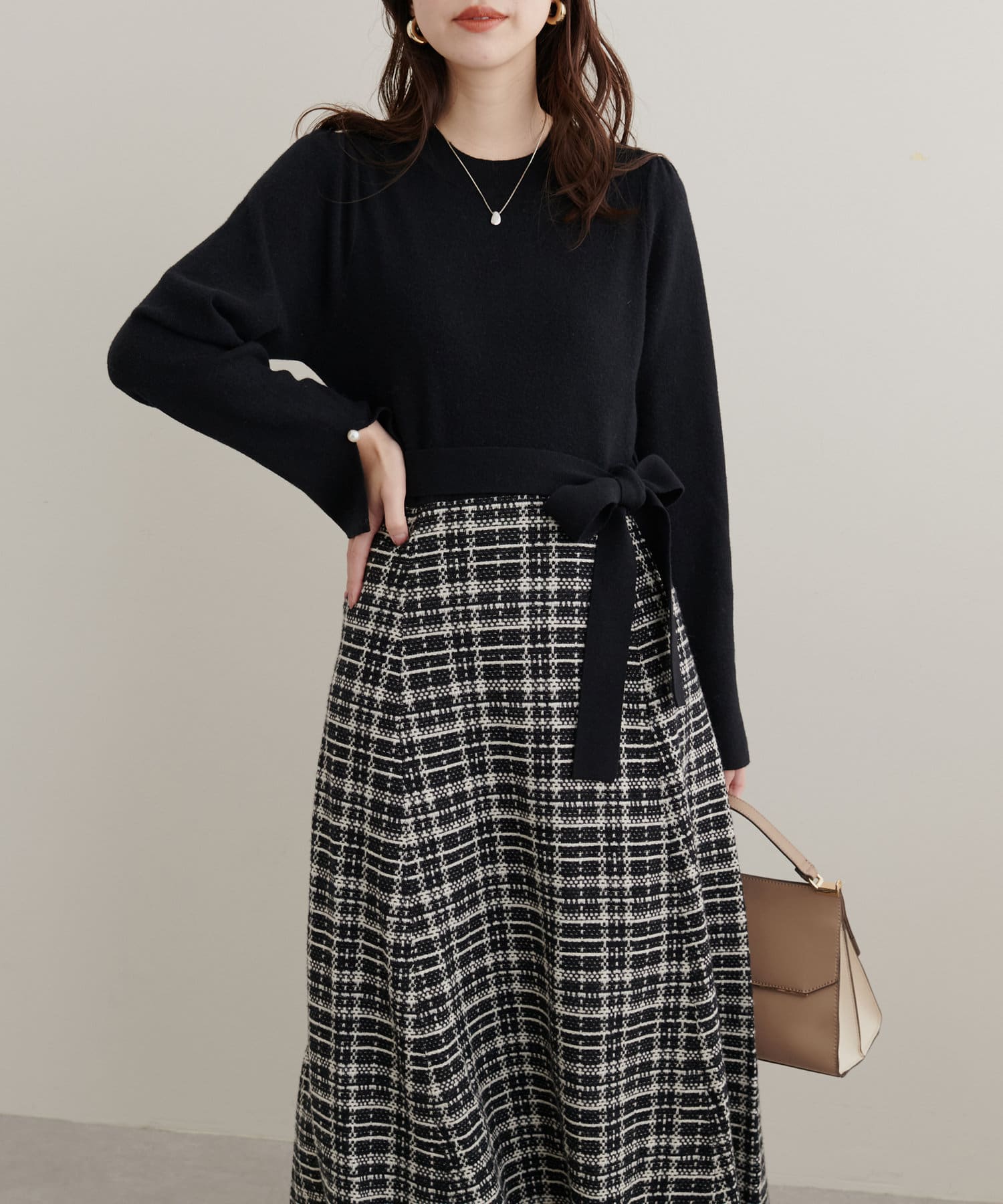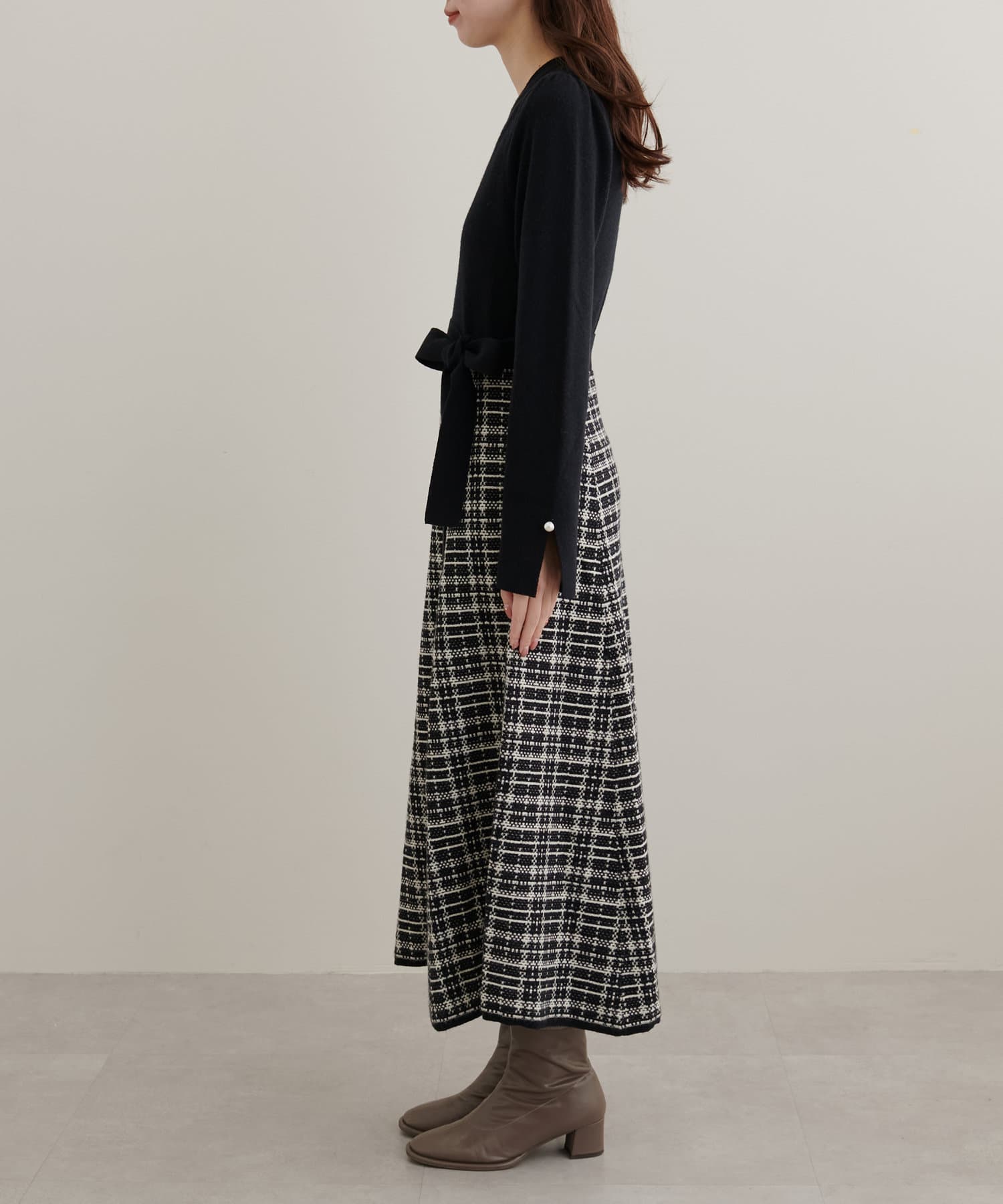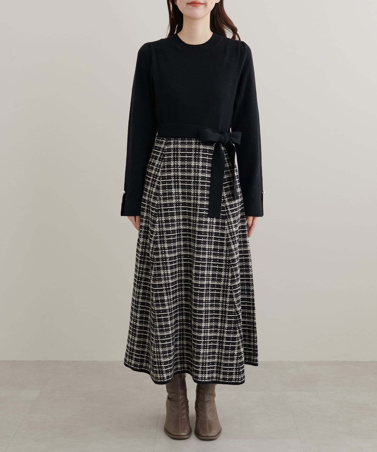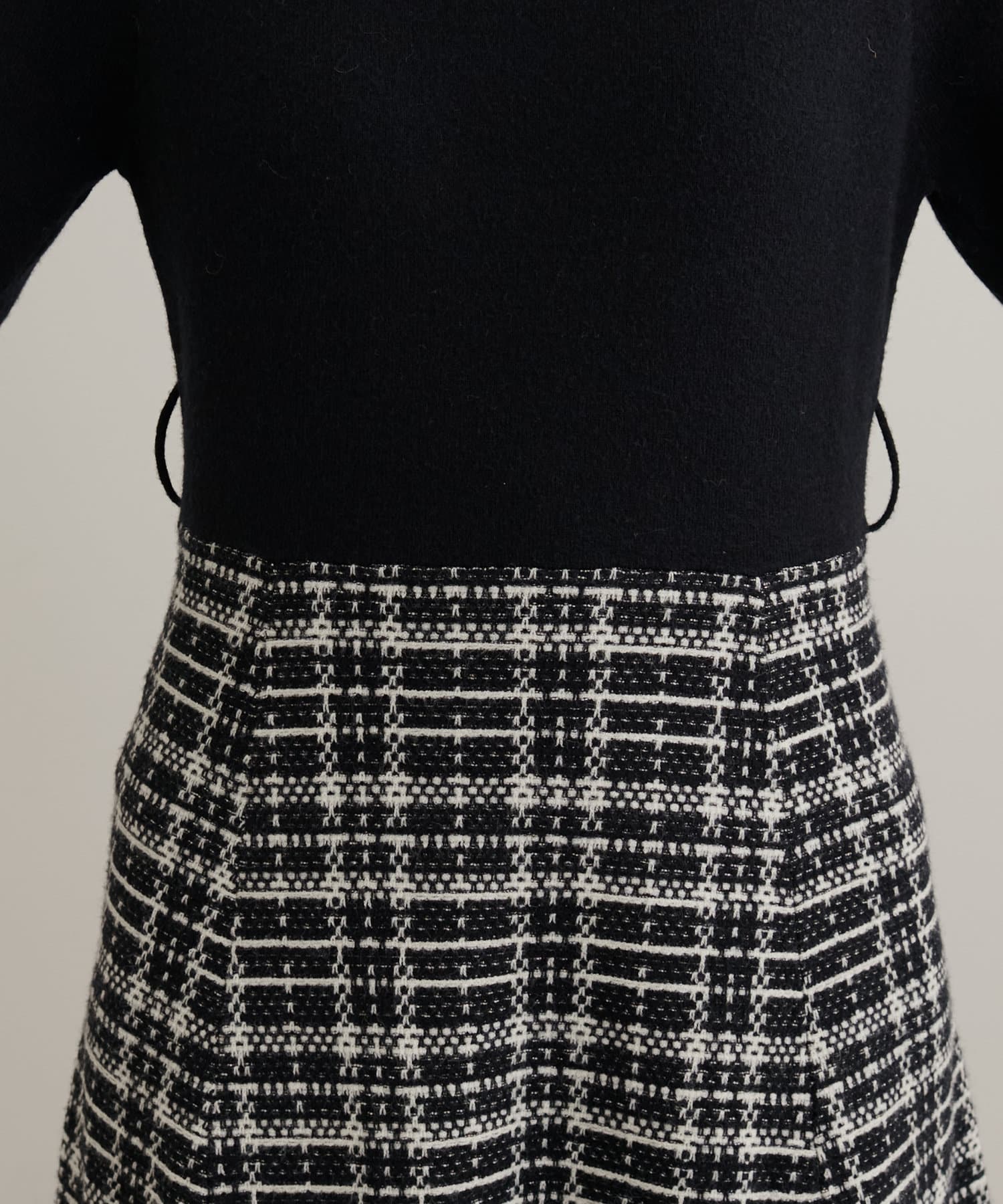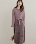 チェック柄ドッキングニットワンピース