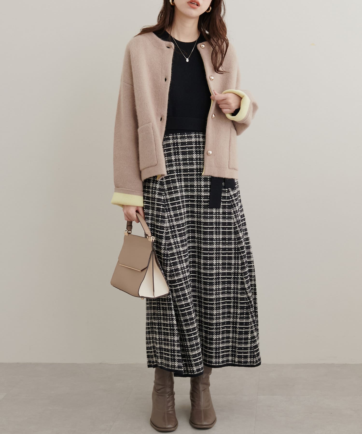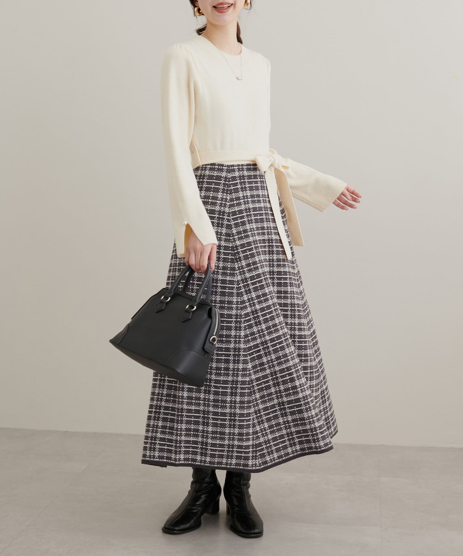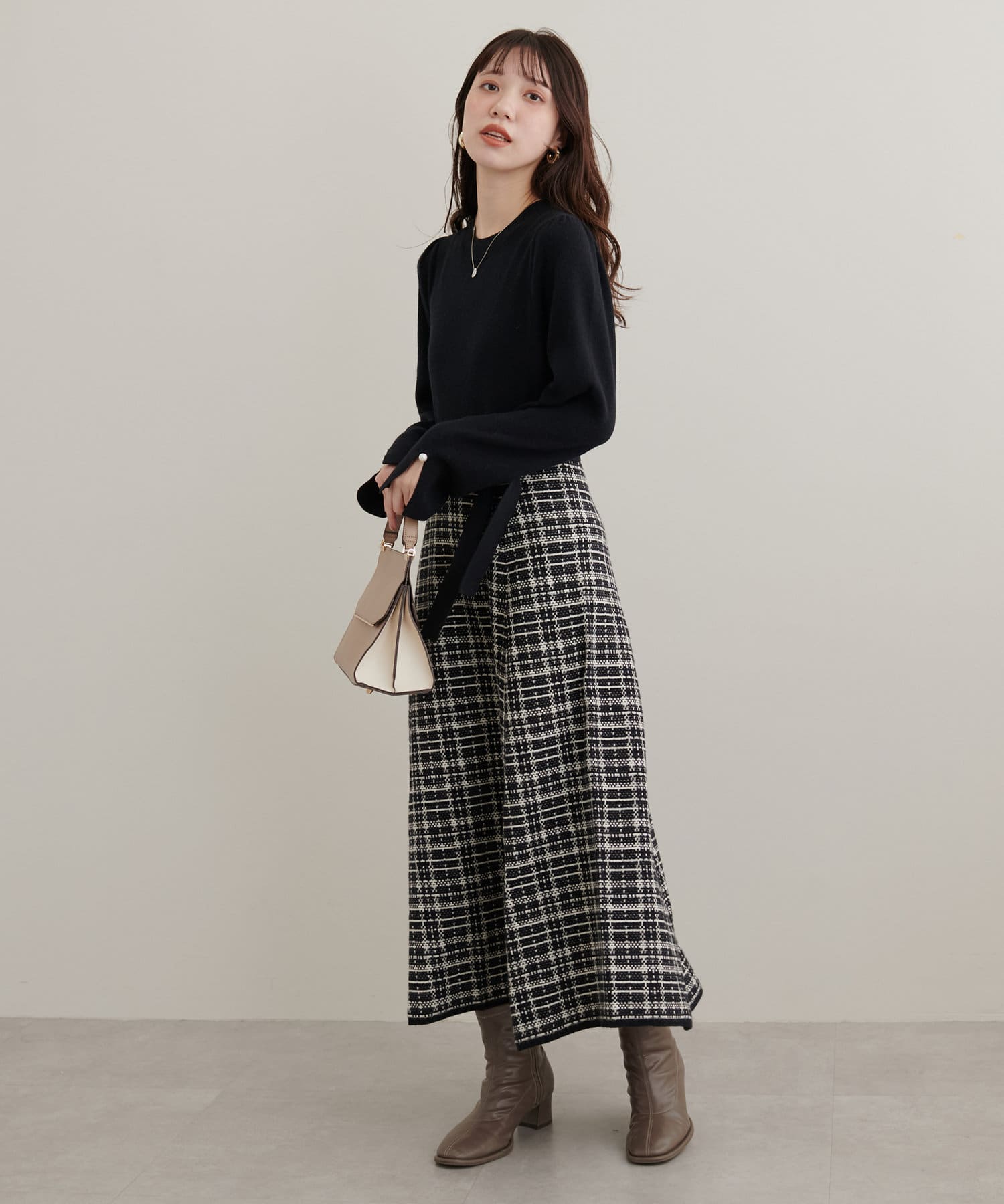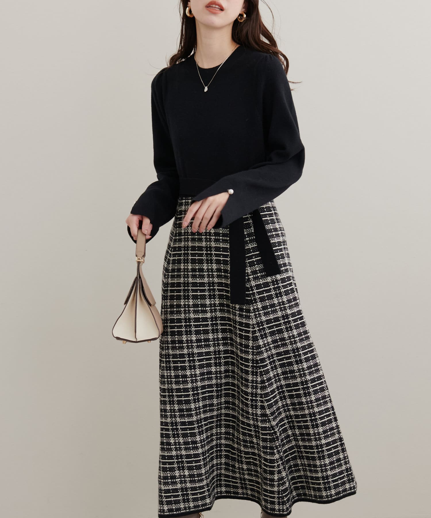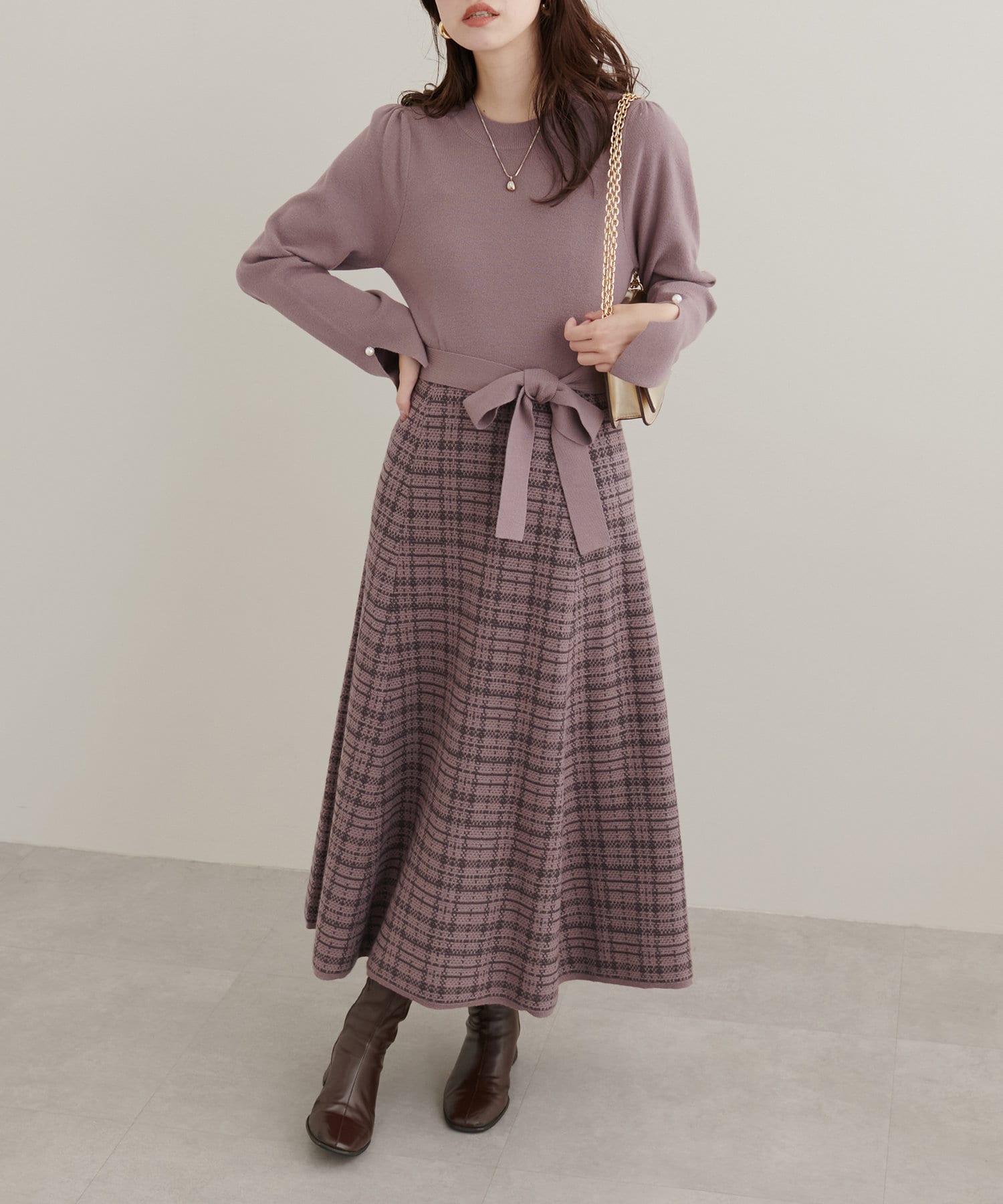 チェック柄ドッキングニットワンピース