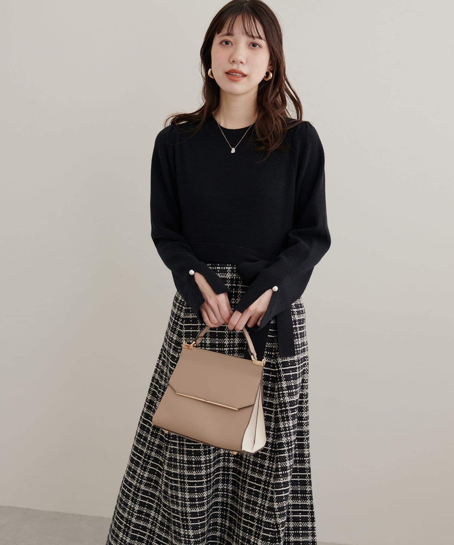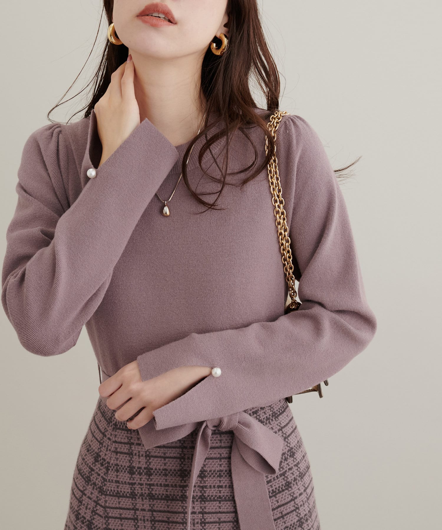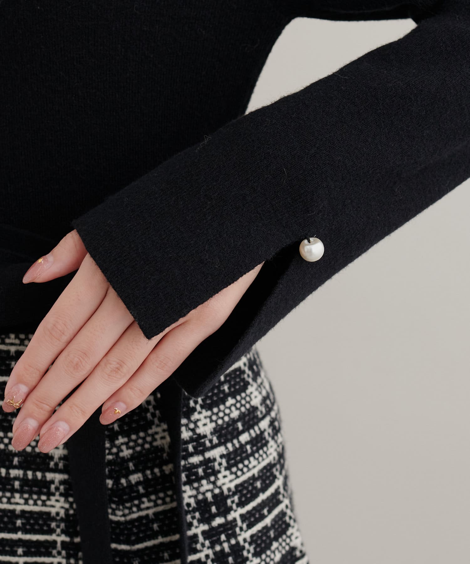 袖口のパールもさりげなく可愛らしさをプラス。