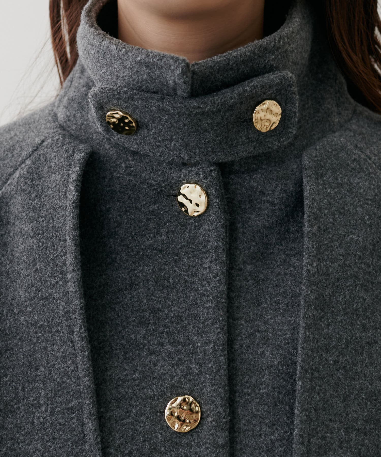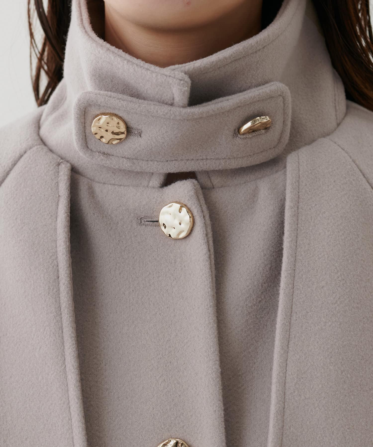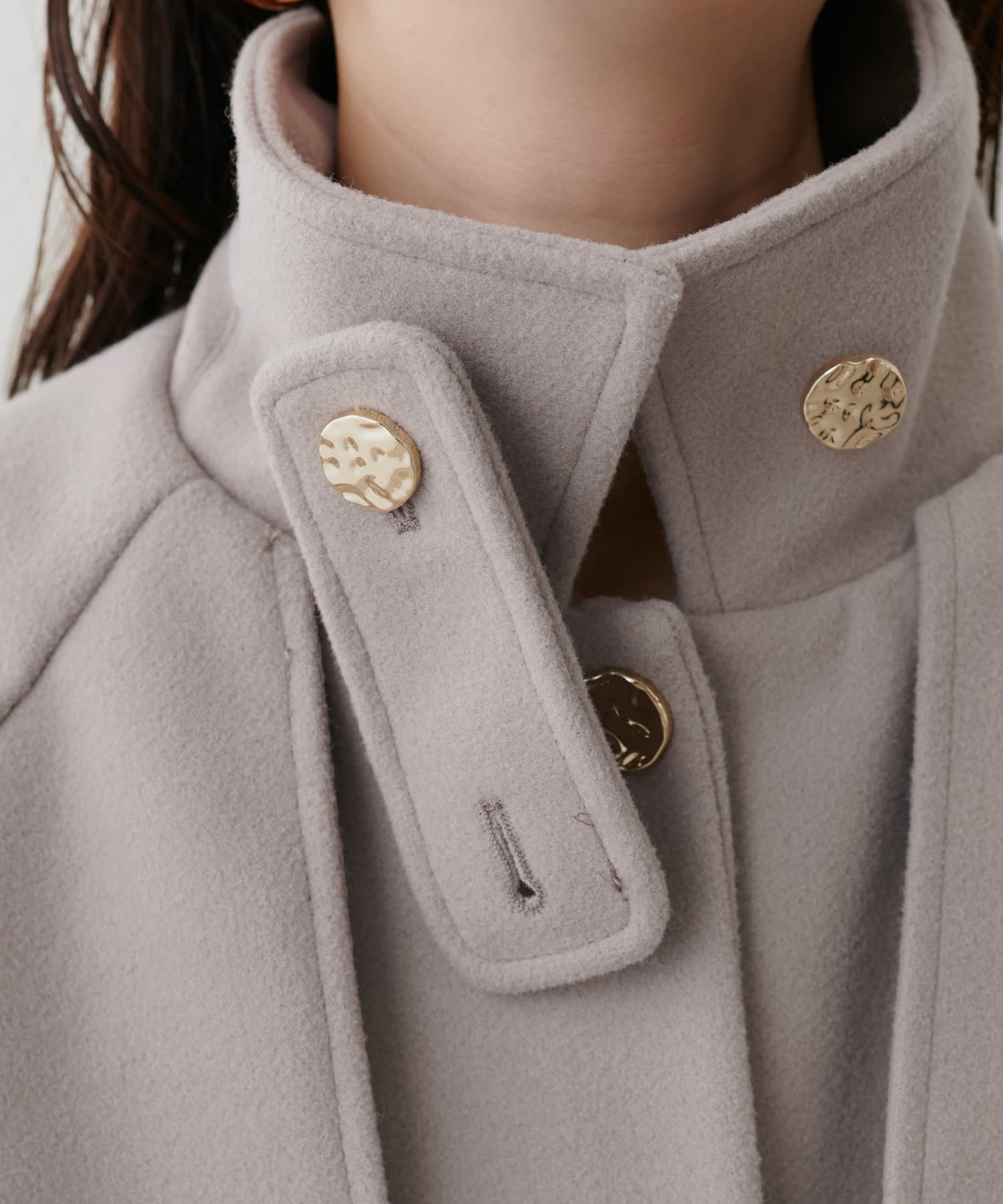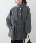 首元はスタンドカラーにも出来、今年らしい着こなしに◎