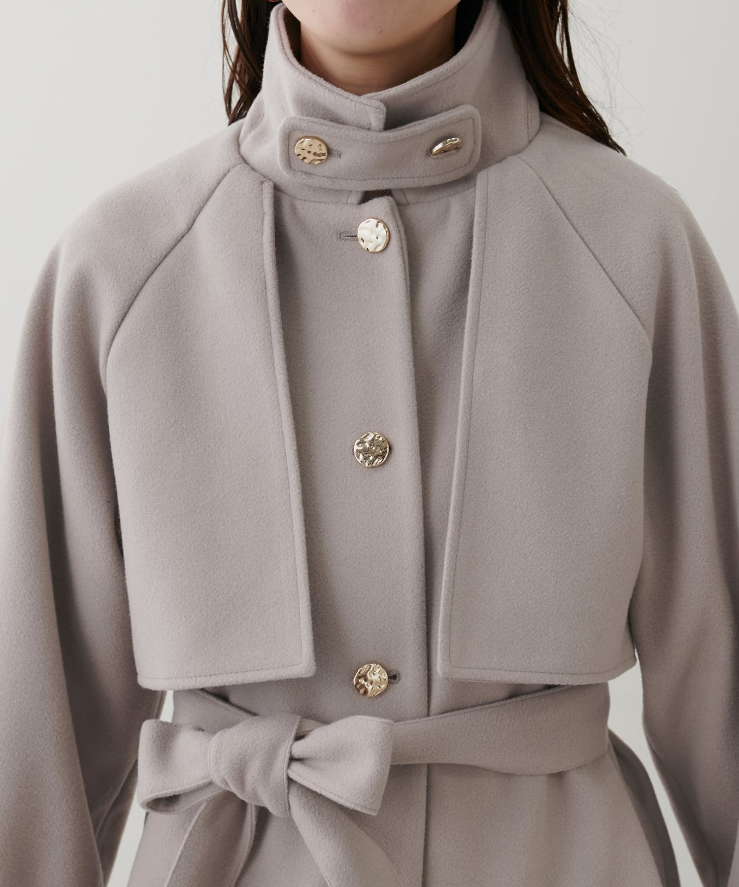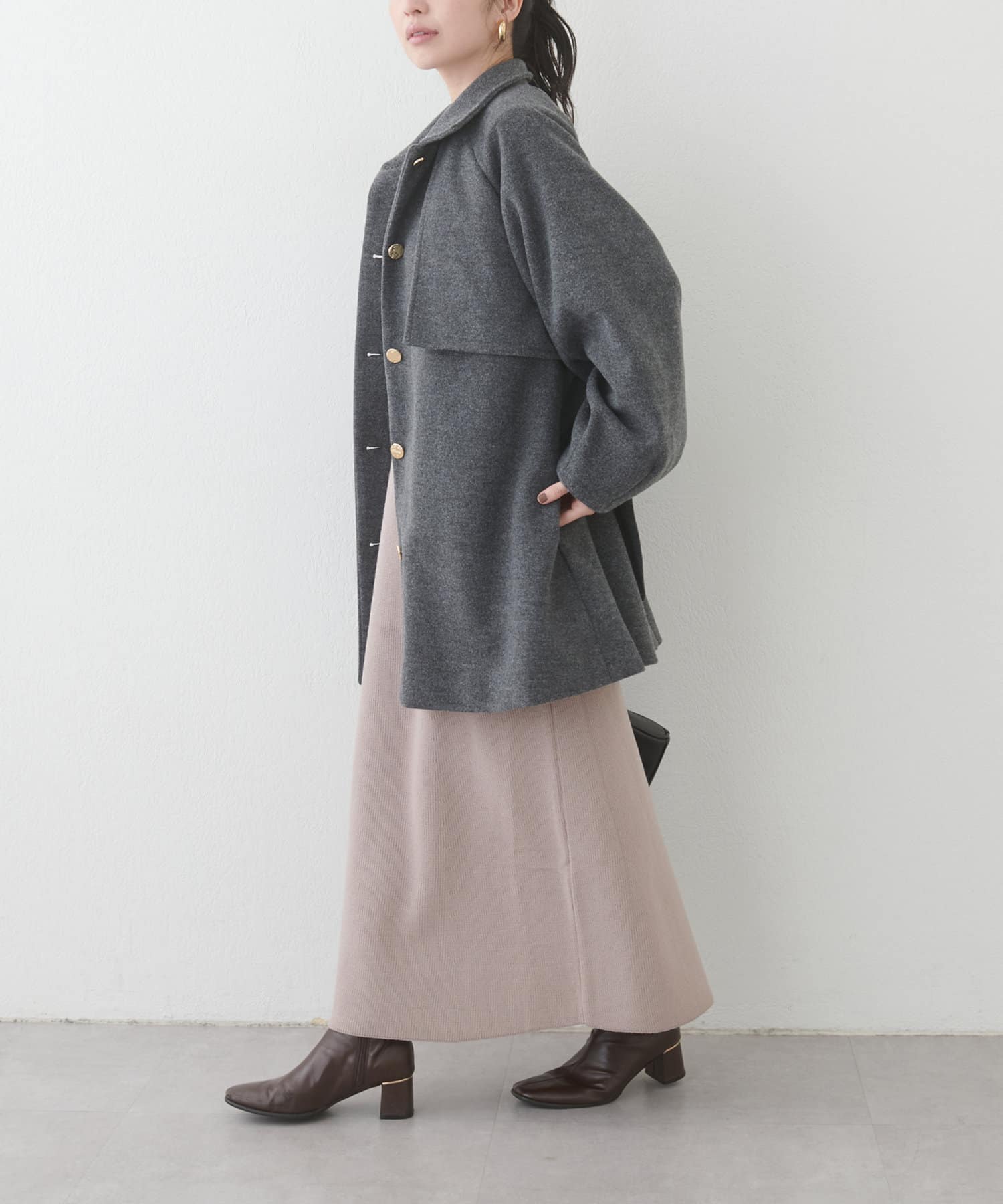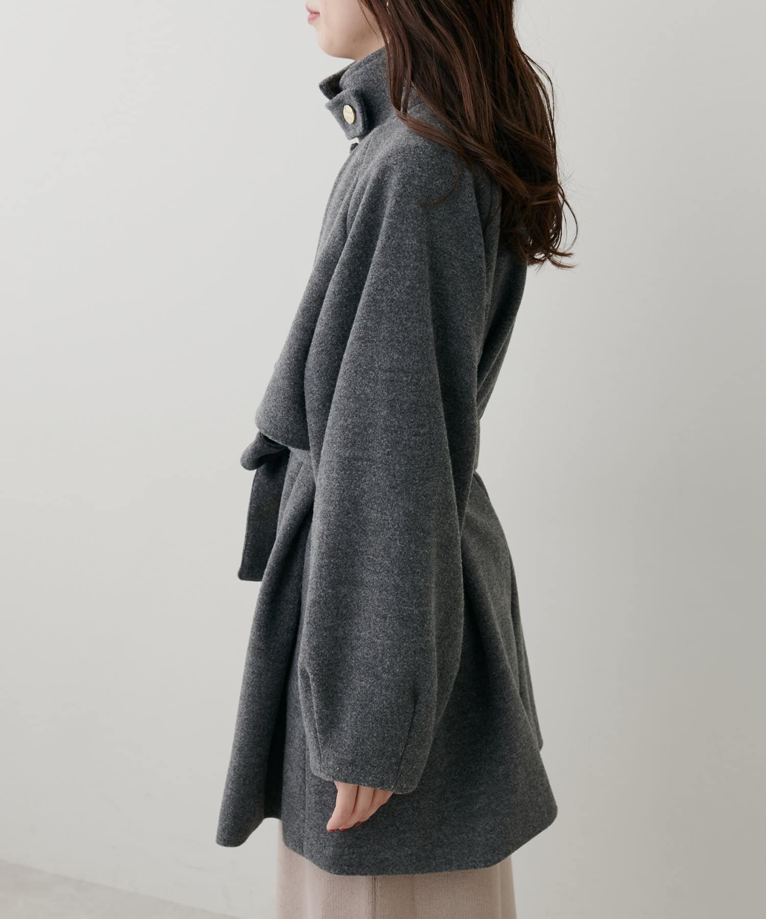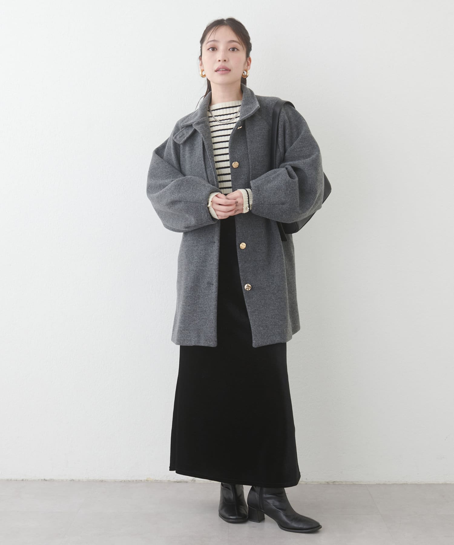 フェミニンバッグはカラーが選べるヨーク付きのスタンドカラーコートに加えて