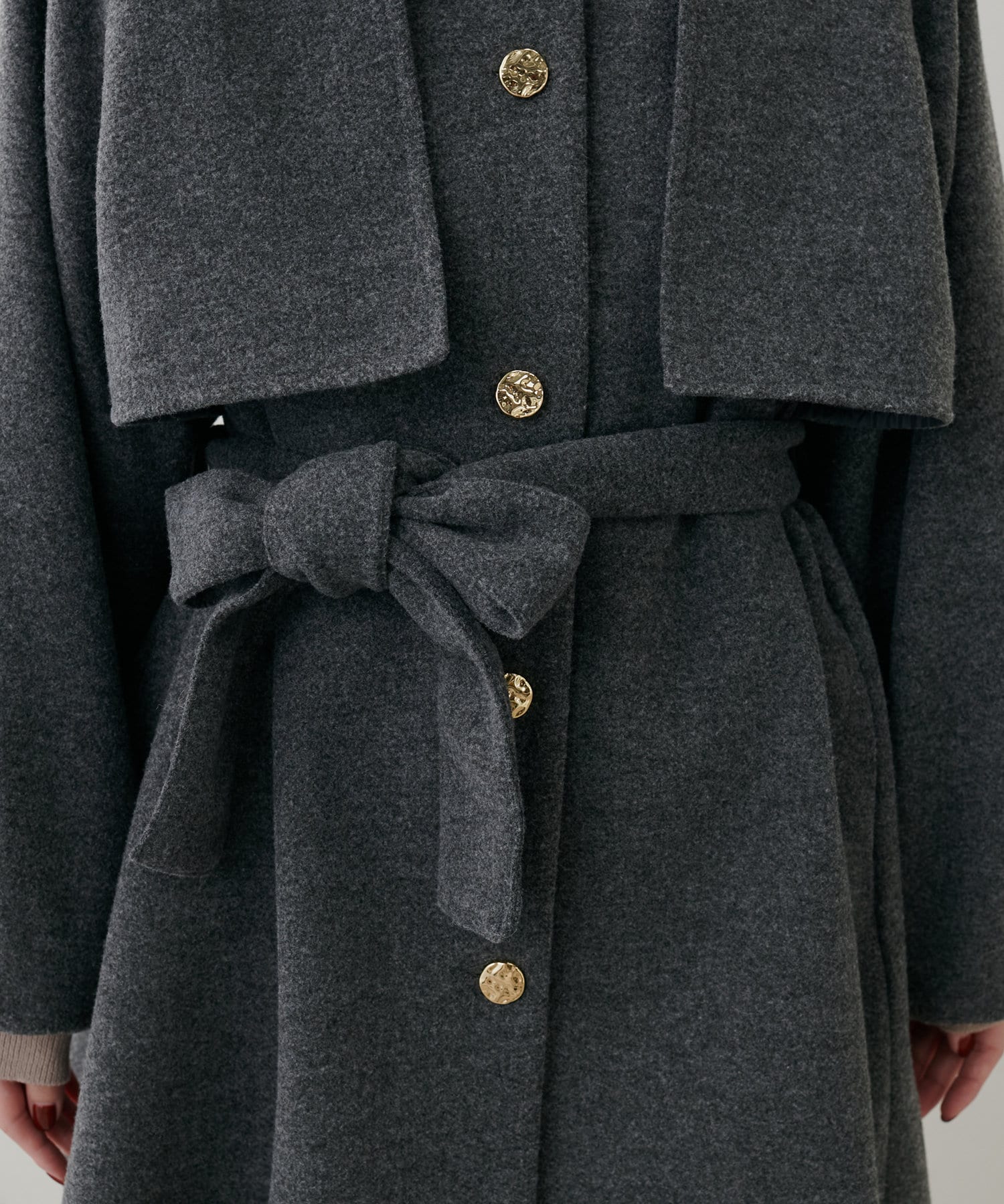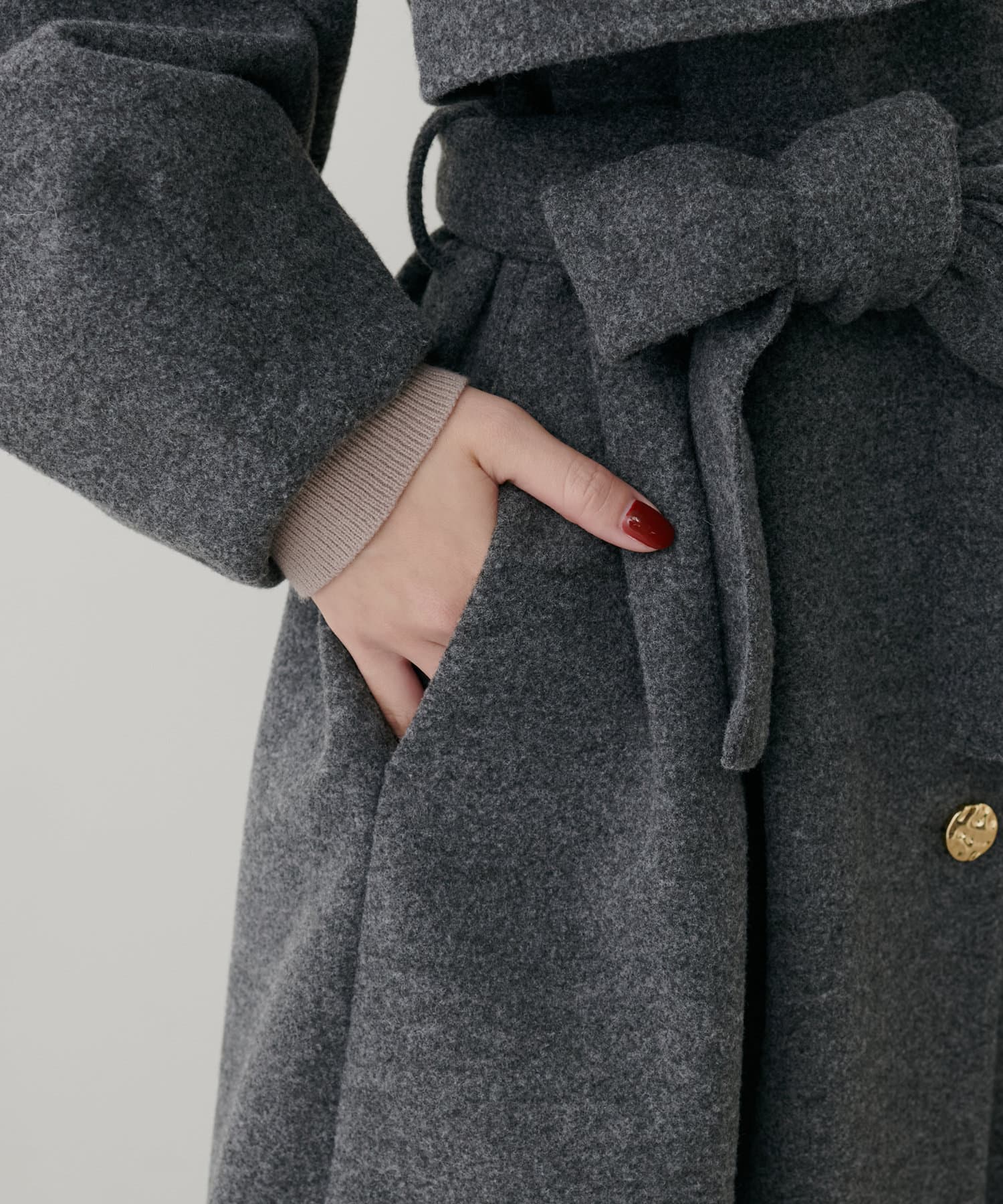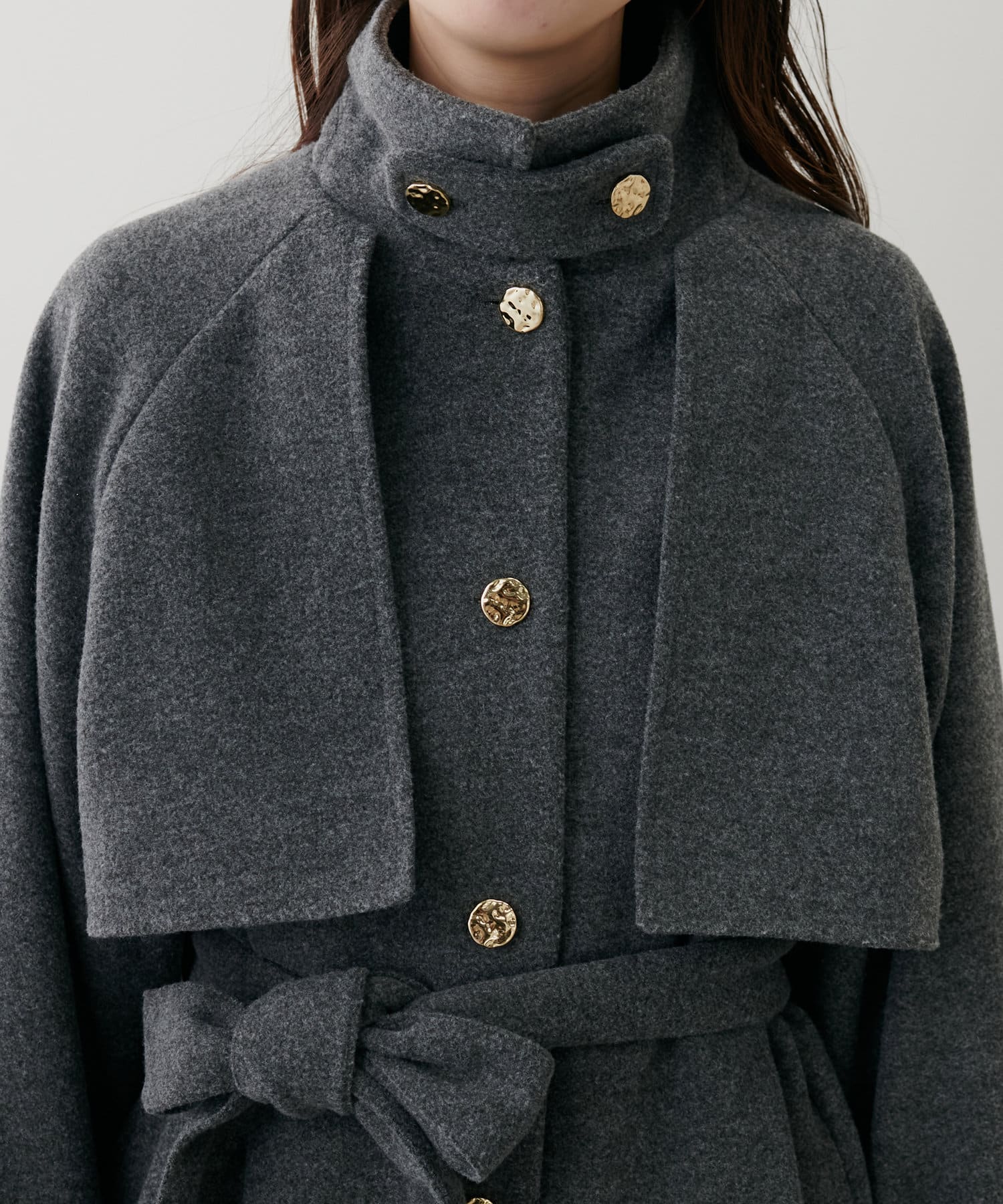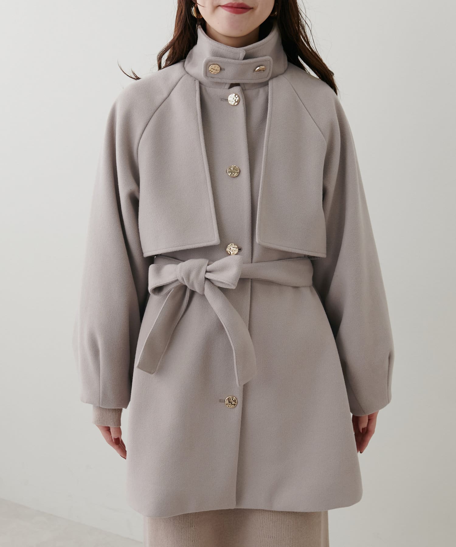 フェミニンバッグはカラーが選べるヨーク付きのスタンドカラーコートに加えて
