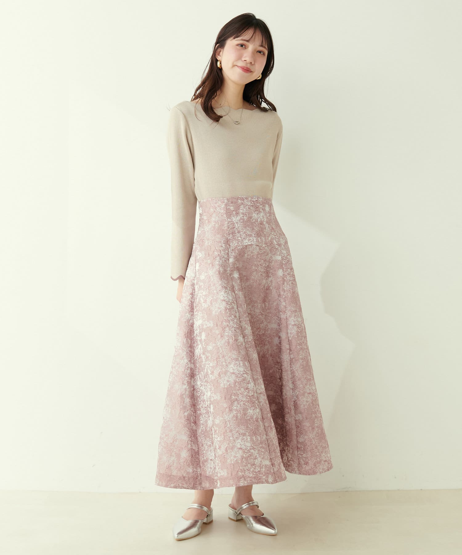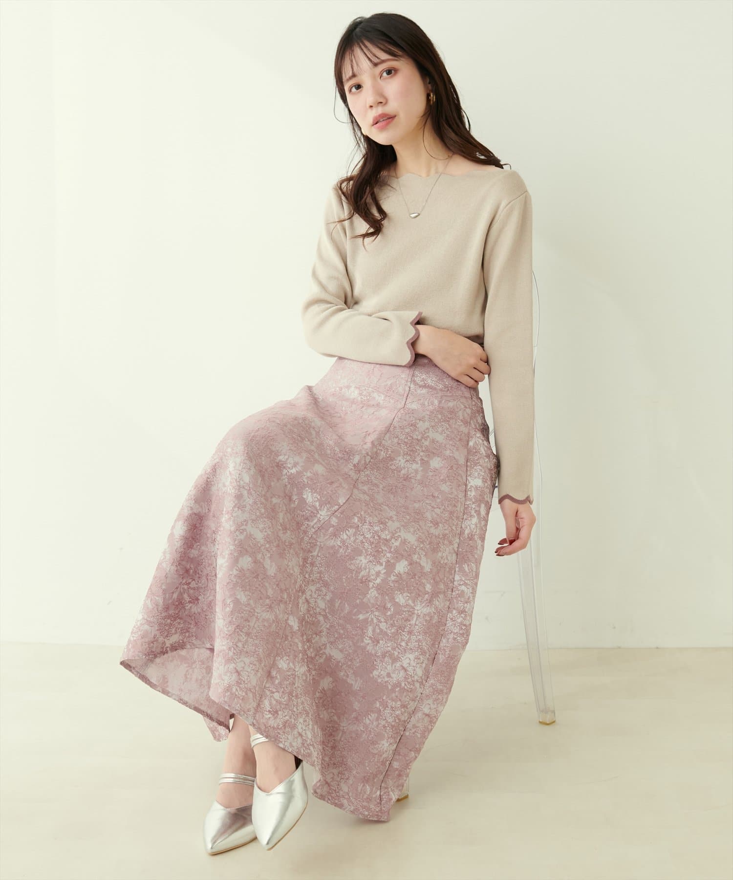 綺麗な揺れ感とフラワージャガードの大人上品なスカート。