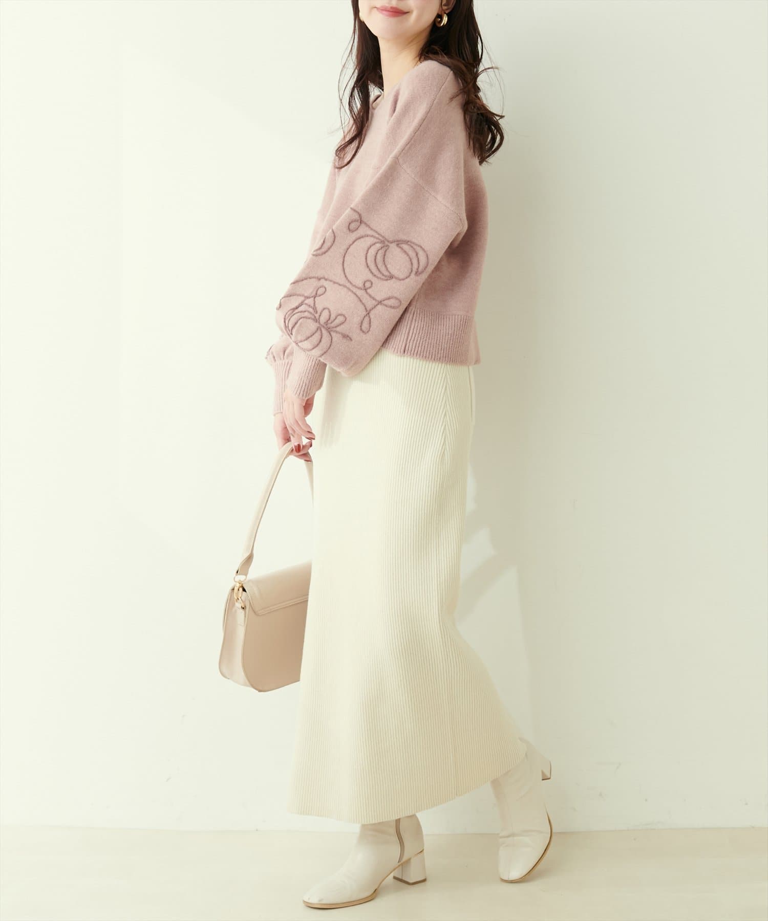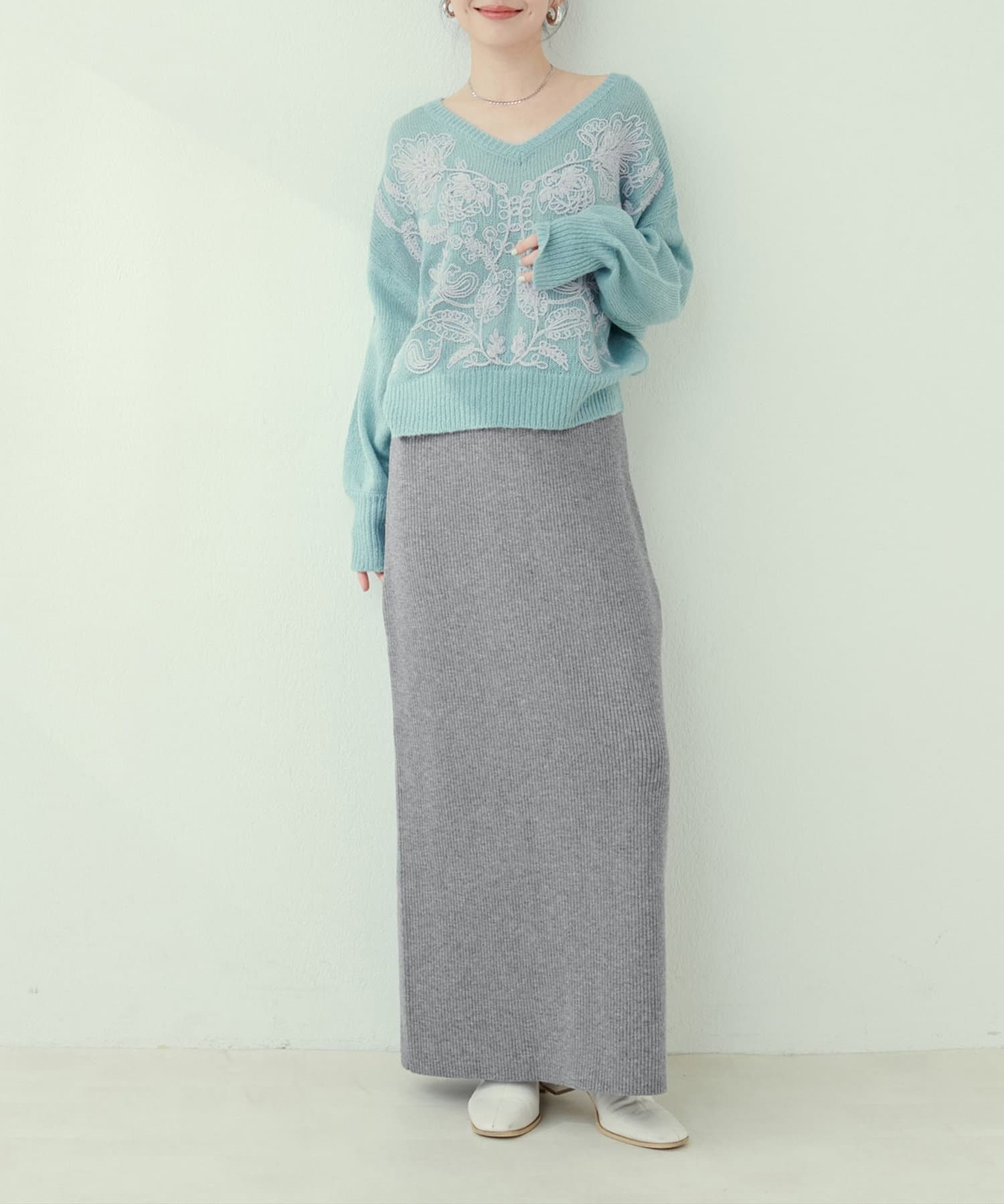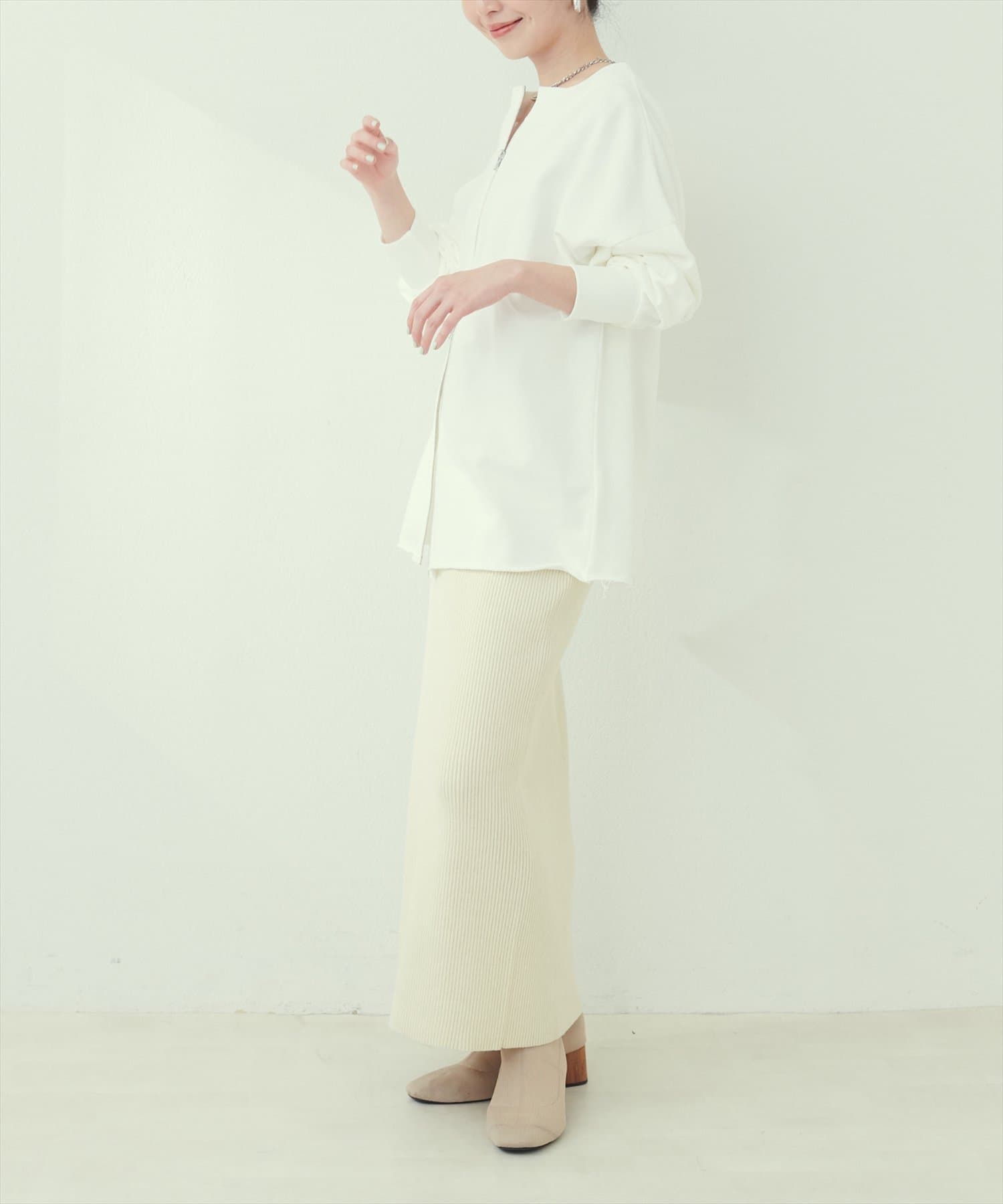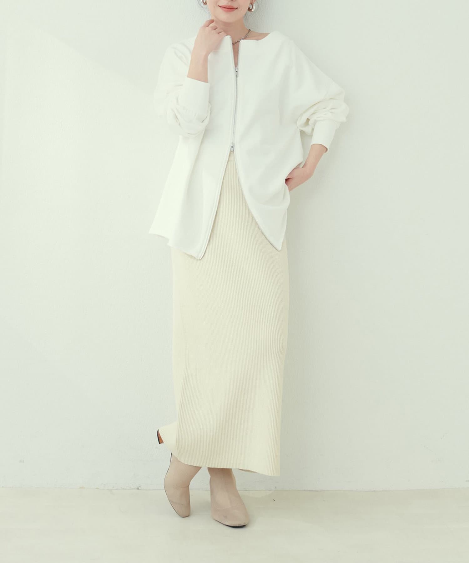 Iラインシルエットが華奢見えを叶えるリブニットスカート。
