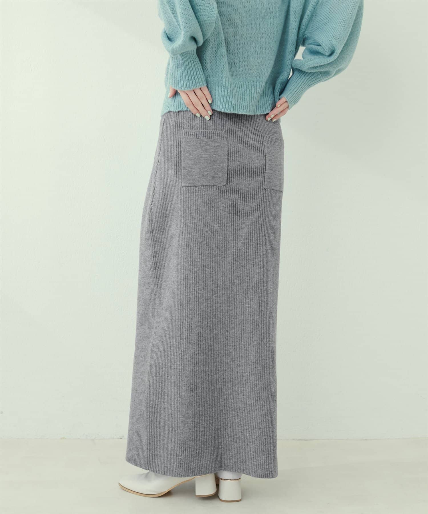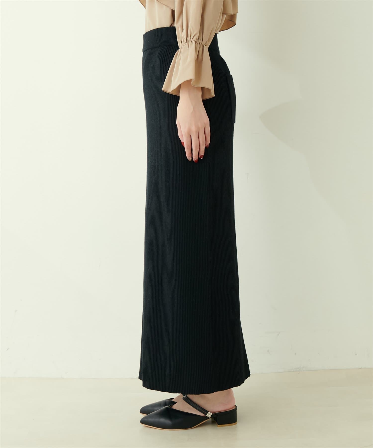すっきりとしたラインでトップスを選ばないリブニットスカート