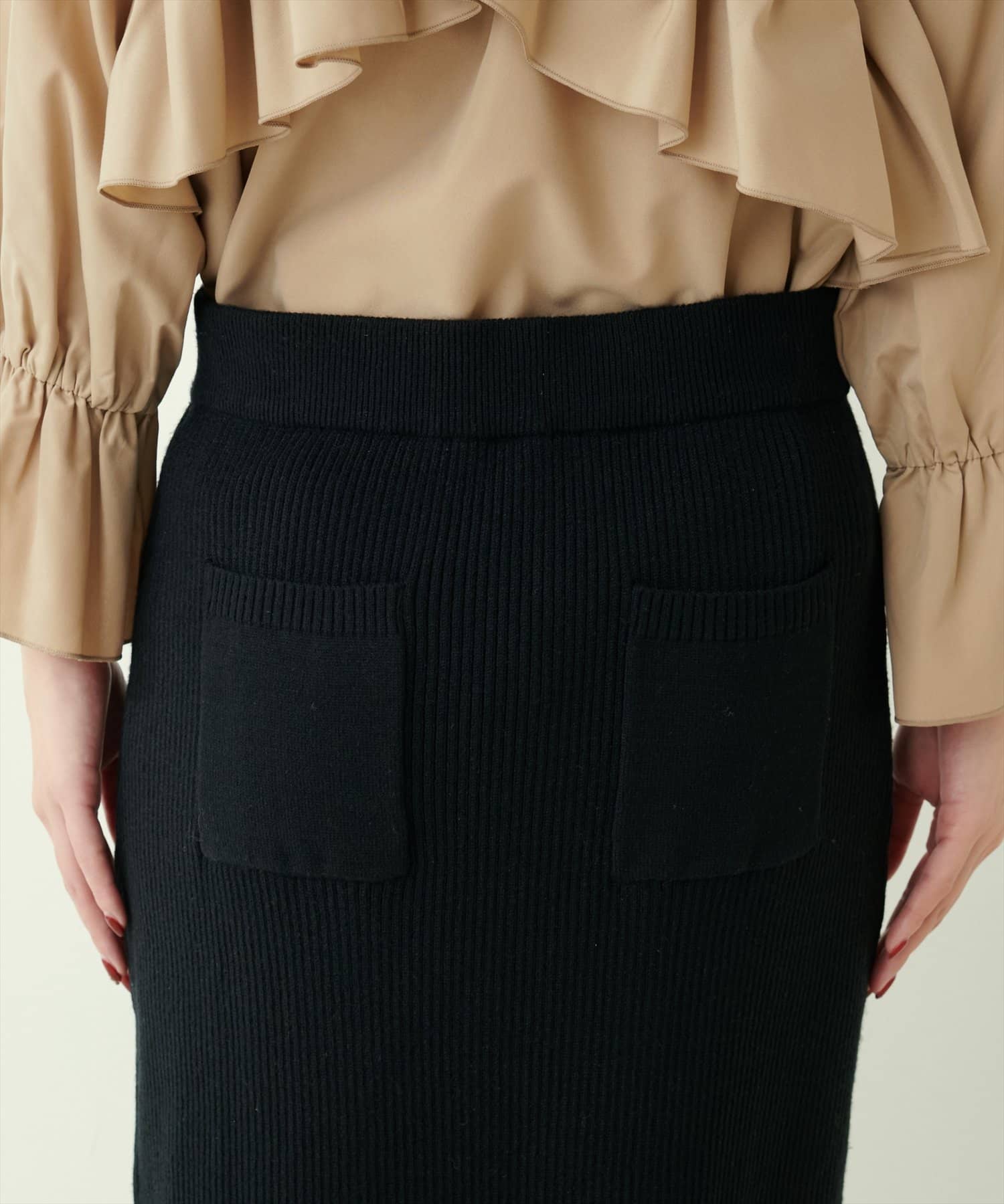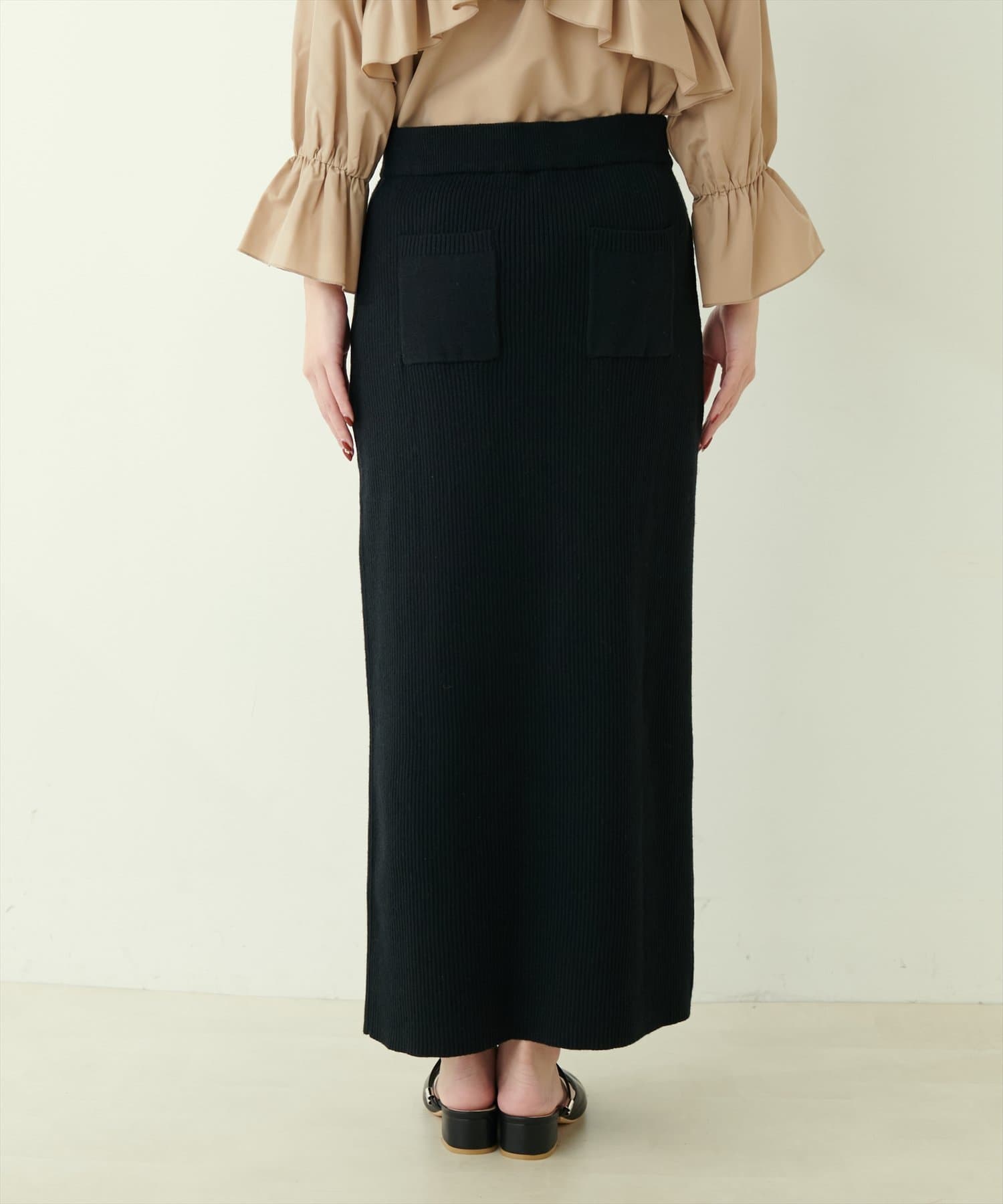 【natural couture】バックポケットリブタイトスカート