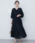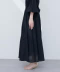 たっぷり施されたギャザーと裾のふんわりとした切り替えがフェミニンな印象で、ウエストは総ゴム仕様なのでリラクシーな着心地です。